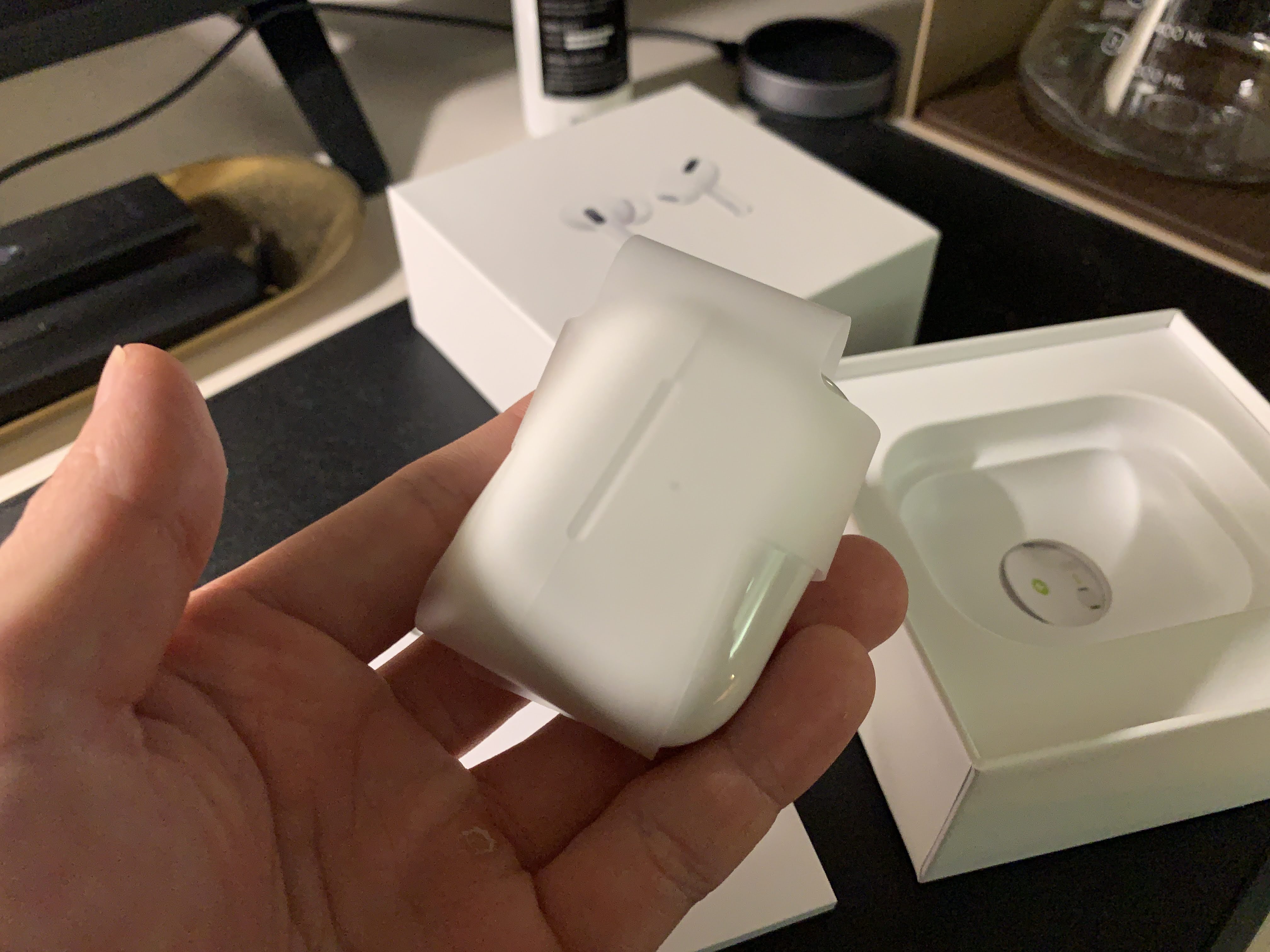 정품 에어팟 프로를 정확히 똑같이 베꼈습니다. 원래 지금까지는 짝퉁 에어팟은 뭔가 크기가 정품 에어팟보다 크다거나 모양이 비슷하지만 조금 다르다거나 해서 짝퉁 티가 확 났죠. 그런데 이 제품은 ... 그냥 겉으로는 정품이랑 똑같이 생겼습니다.