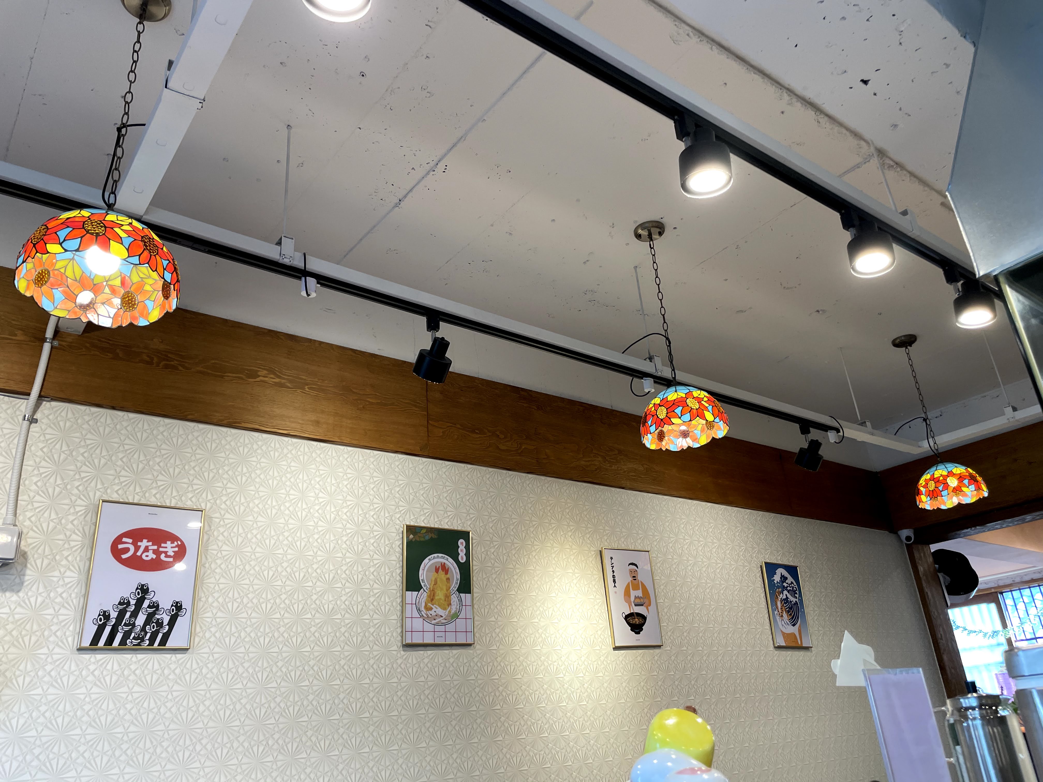 천장에는 좀 특이하게 알록달록한 전등이 달려있네요.
