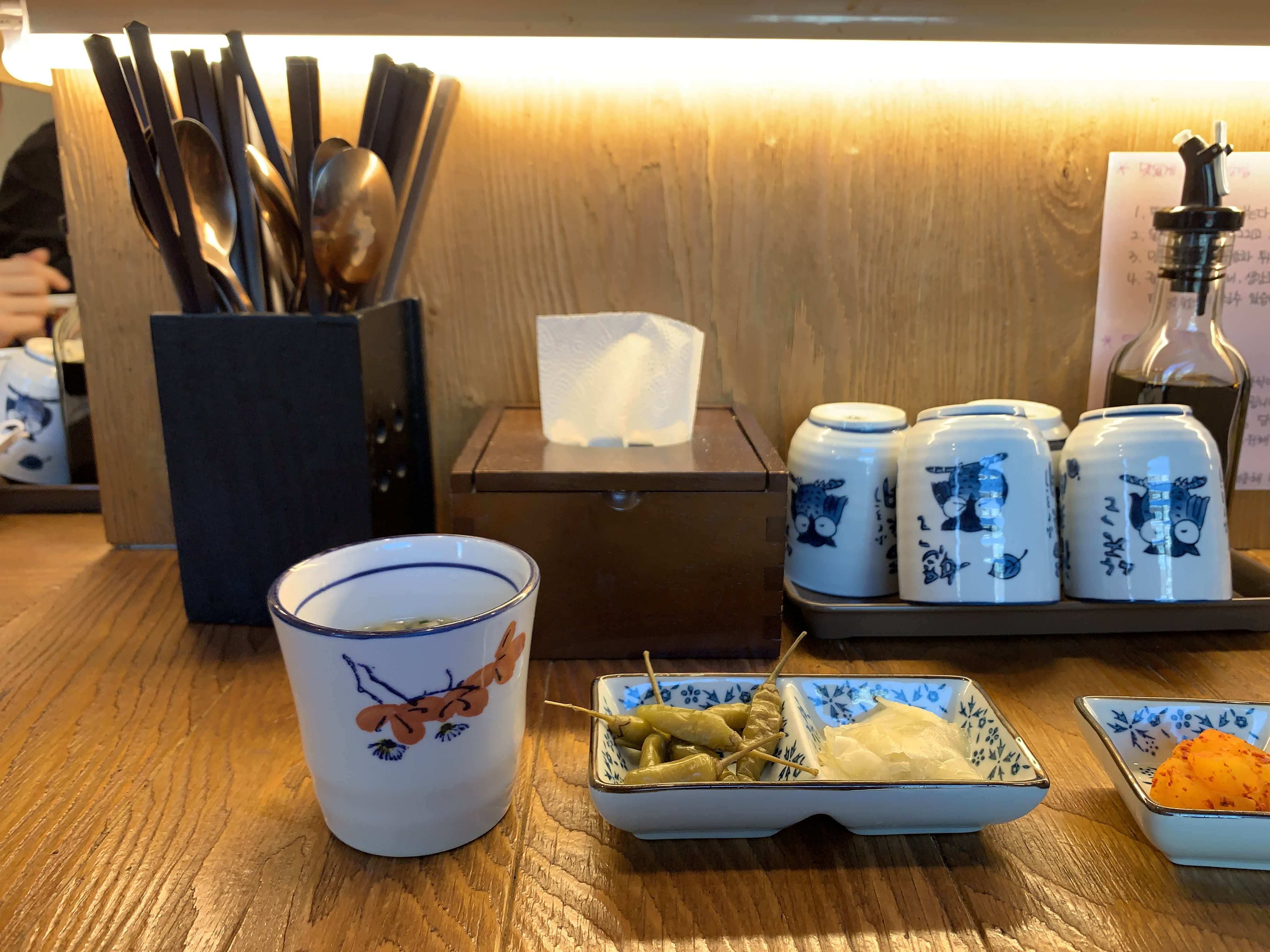 가게는 그렇게 큰 편이 아니엇 일단 이렇게 홀테이블에 앉을 수 있는 자리가 있고, 안쪽에는 자그마한 방이 하나 있습니다.