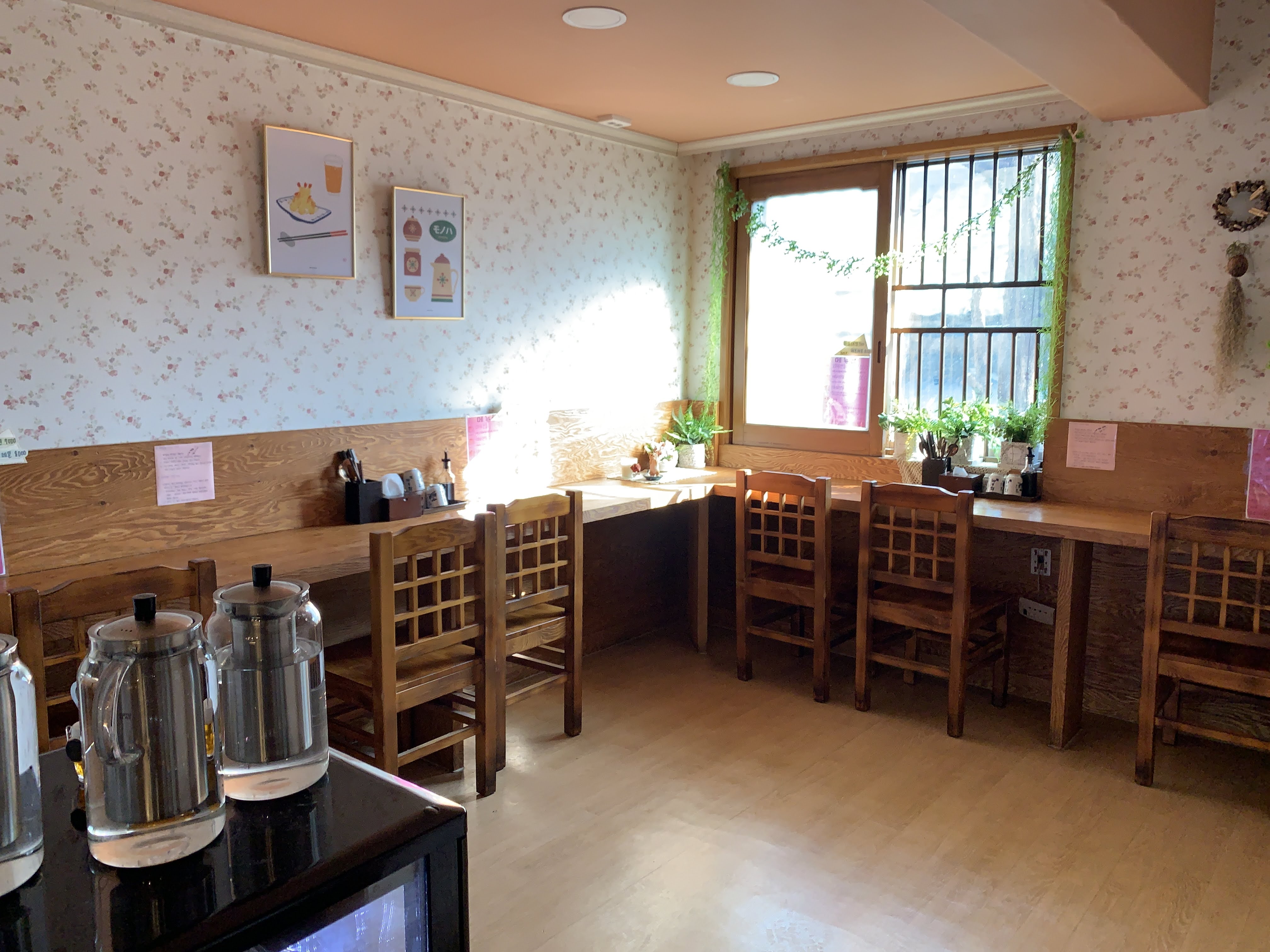 가게는 그렇게 큰 편이 아니엇 일단 이렇게 홀테이블에 앉을 수 있는 자리가 있고, 안쪽에는 자그마한 방이 하나 있습니다.