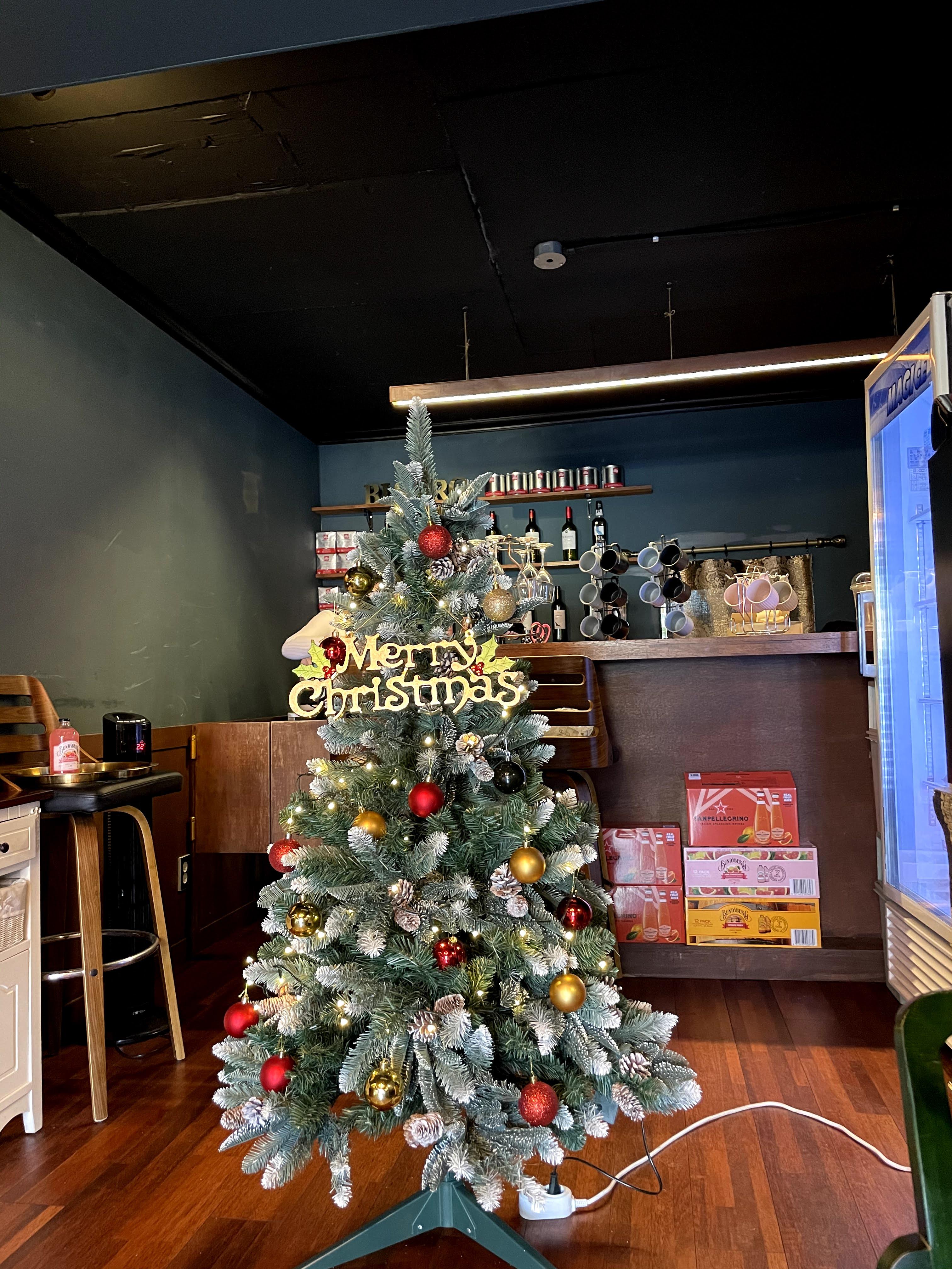 크리스마스 느낌을 내기 위해 트리가 장식되어 있습니다.