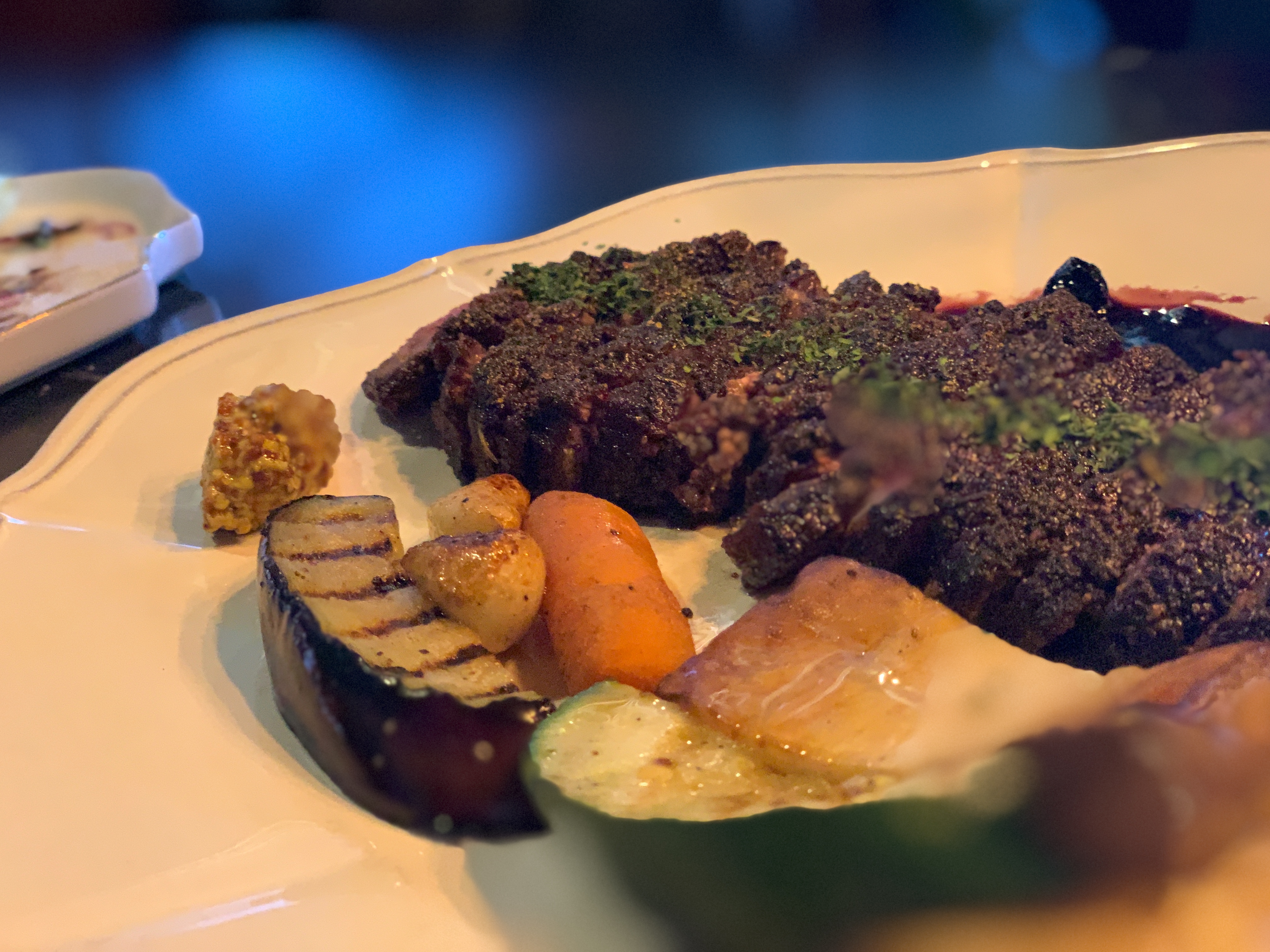 한우 암소 채끝 스테이크 맛이 조금 독특한데, 겉을 바삭하게 구워내고 위에 무슨 가루 같은 걸 뿌려서 약간 향신료 향이 강하게 납니다. 향신료 향을 싫어하시는 분들한테는 조금 안 맞을 수도 있습니다.