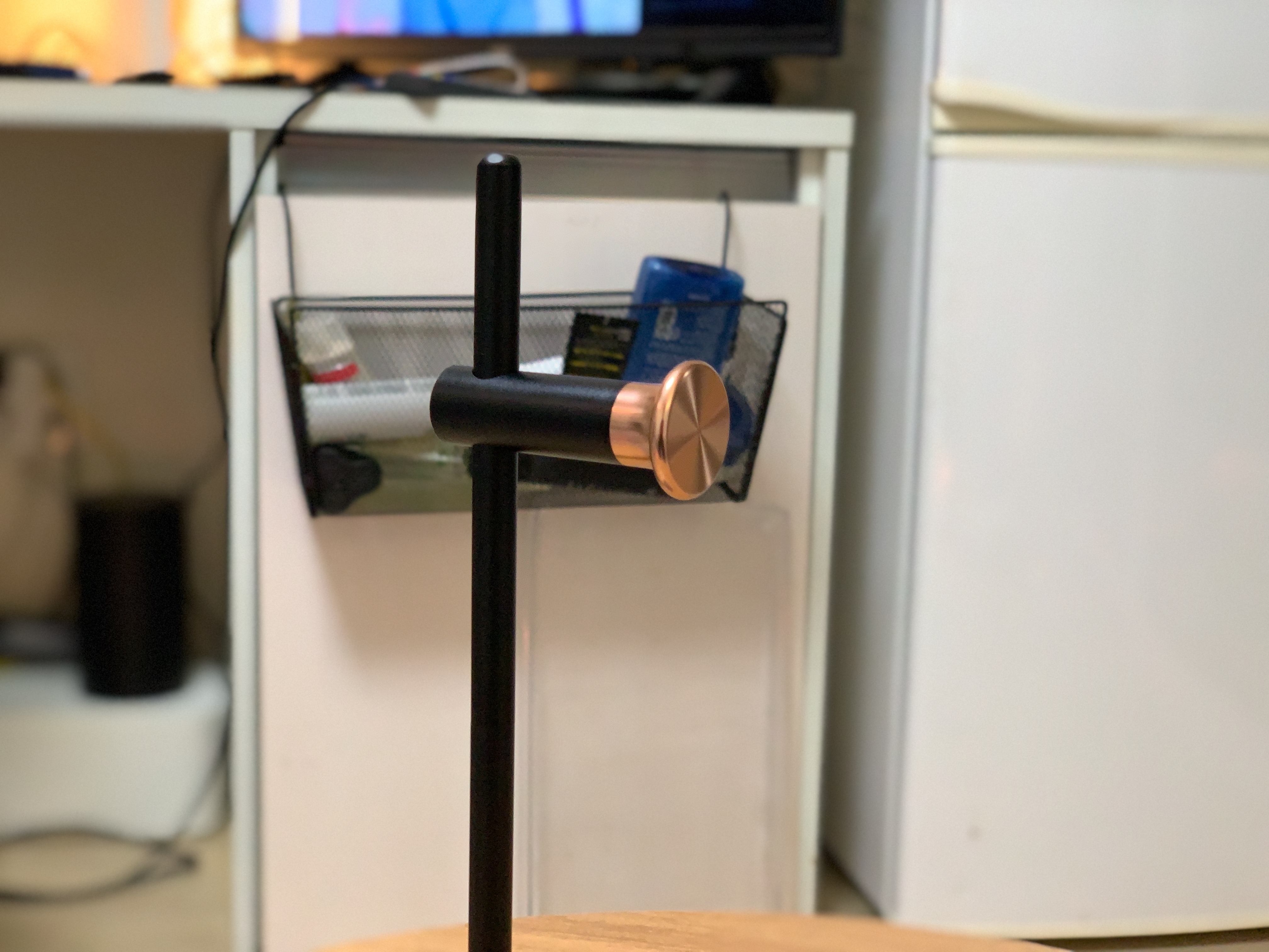 저 골드색이 있는 헤드폰을 거는 부분은 돌려서 높낮이를 조절할 수 있습니다. 헤드폰 크기에 따라서 적당히 올려서 사용하시면 됩니다.