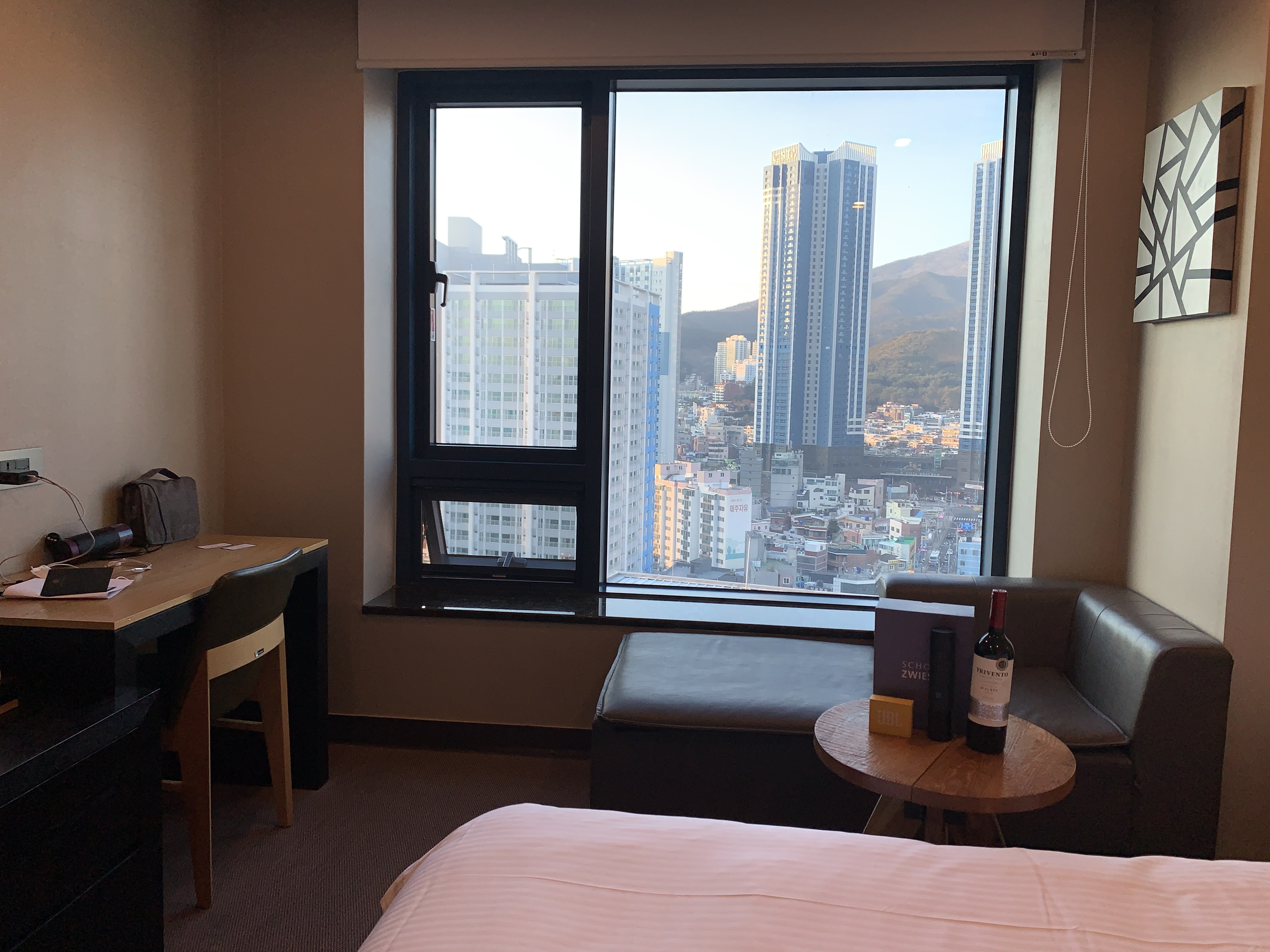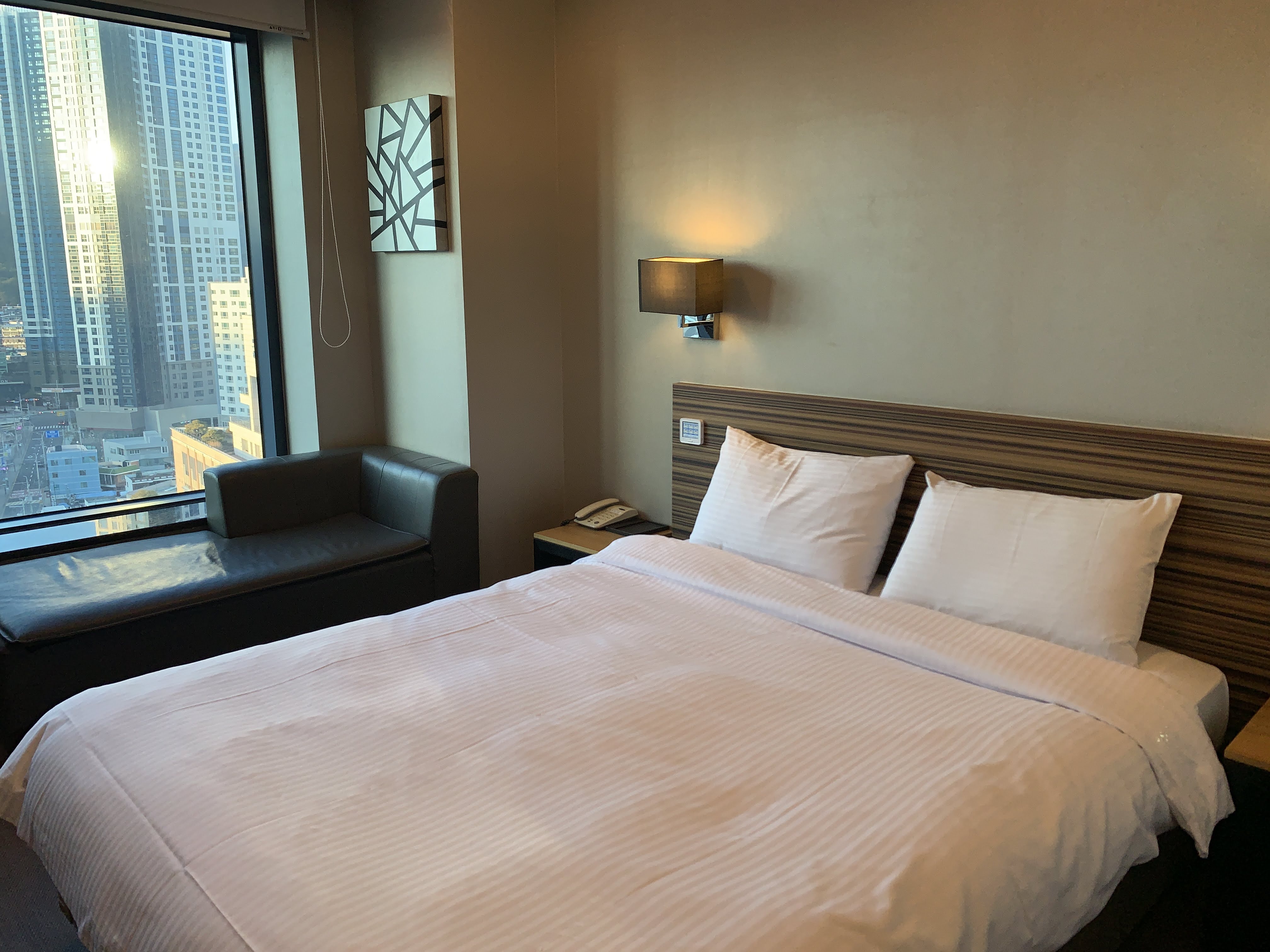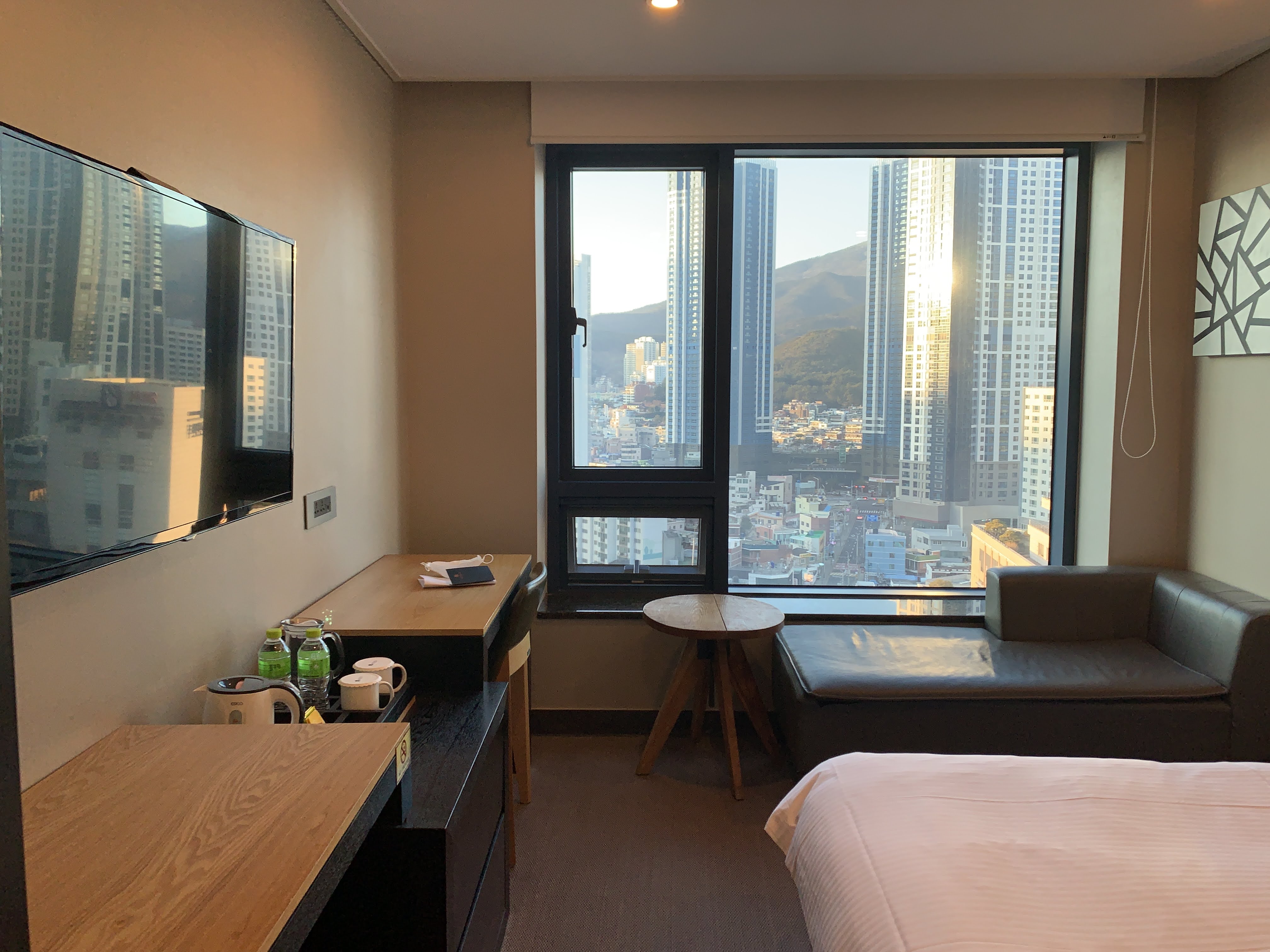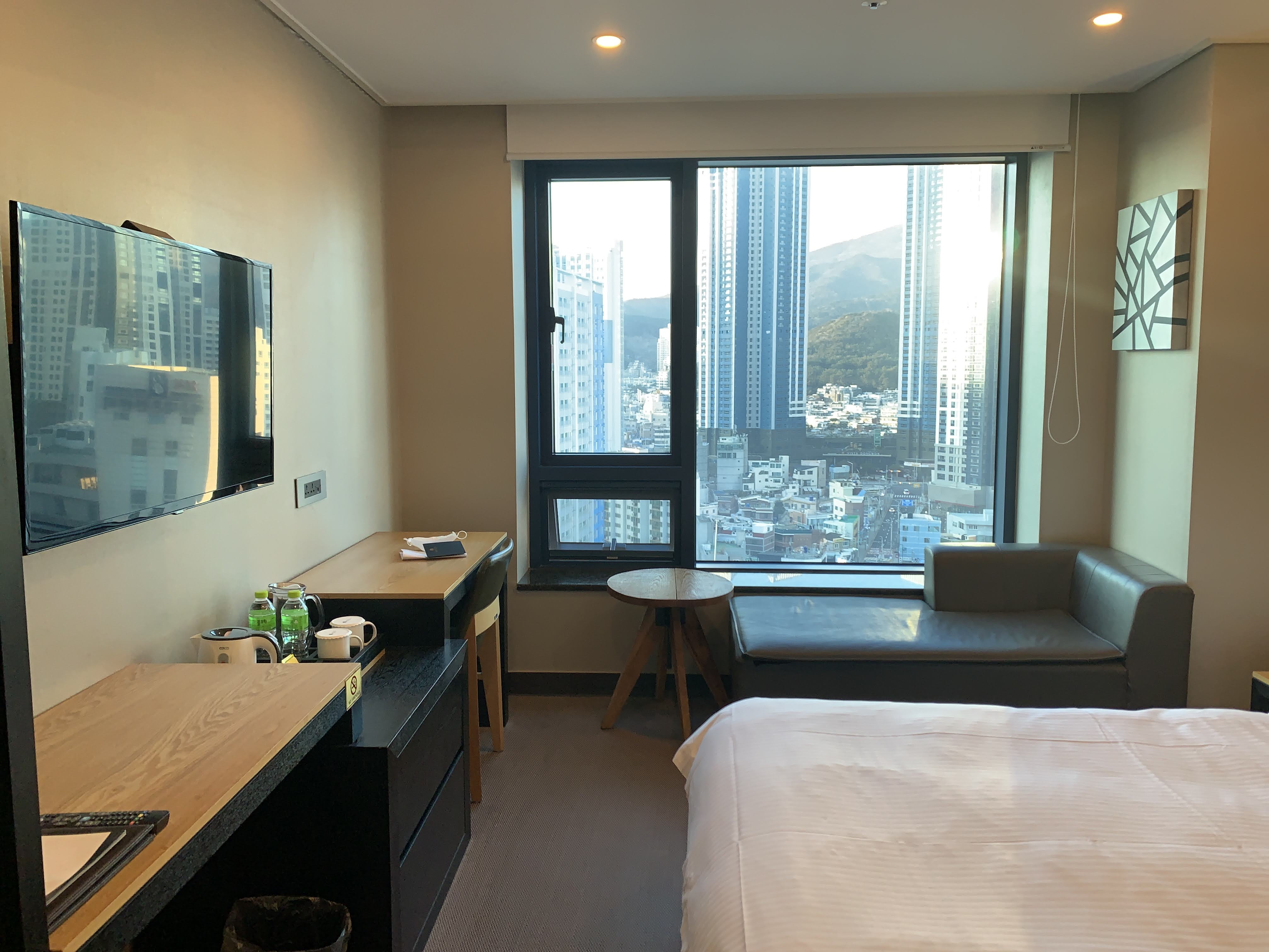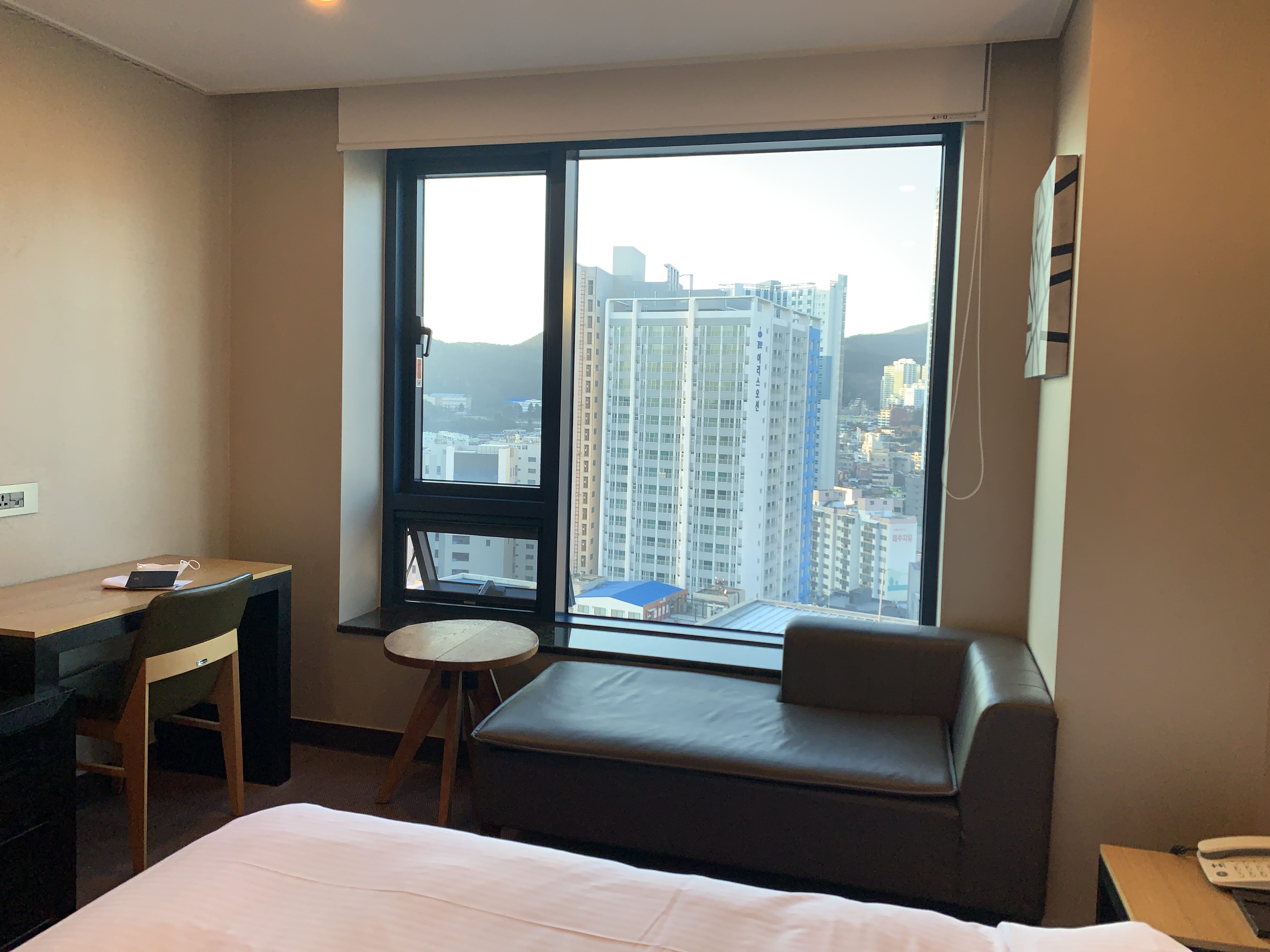 방 자체가 그렇게 크지는 않지만 일단 시티뷰가 정말 괜찮고, 무엇보다도 창가쪽에 있는 소파가 정말 마음에 듭니다.