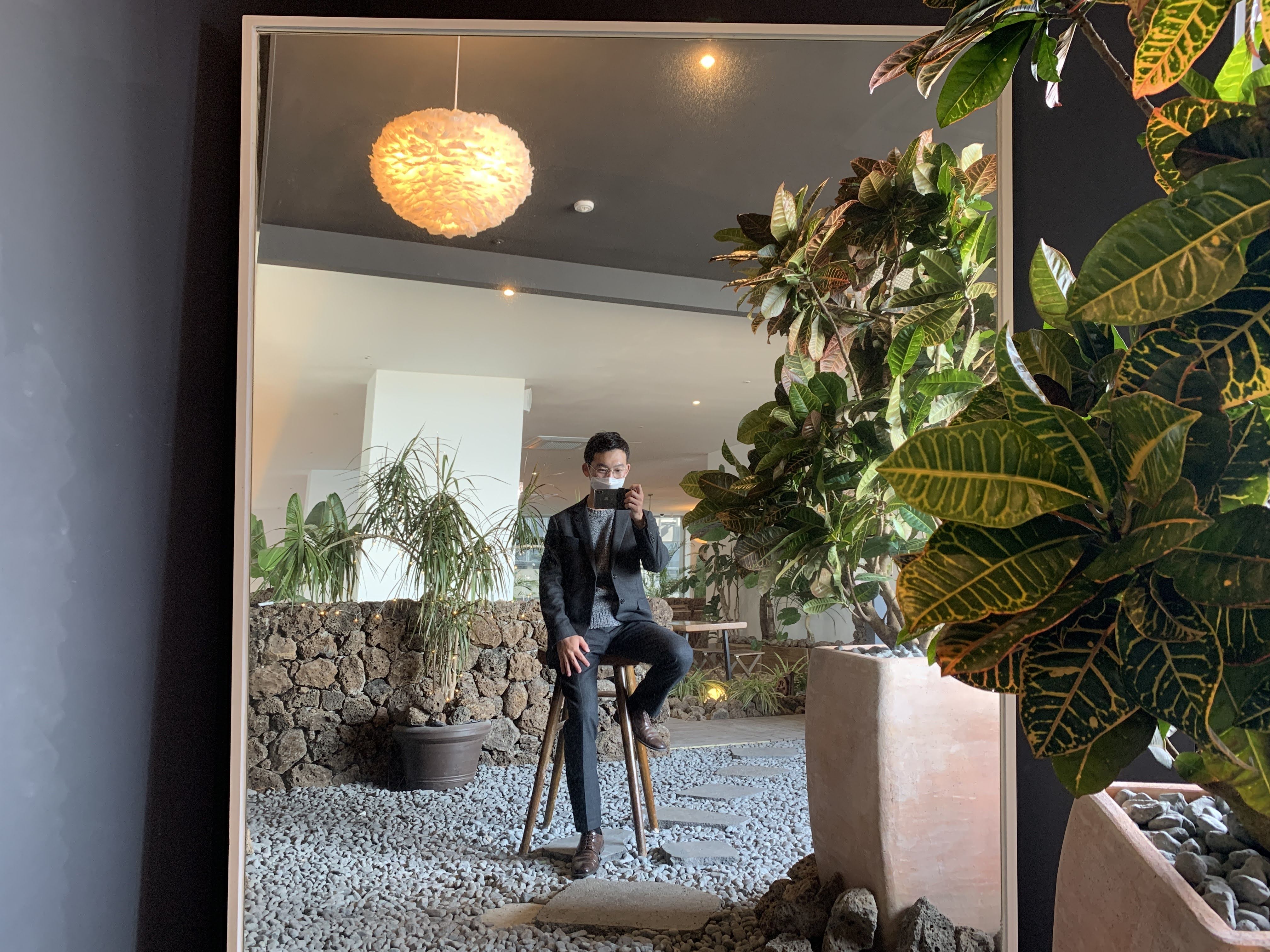 그리고 거울이 살짝 볼록거울이어서 그런지 날씬하면서 키가 커보이게 나옵니다. 저도 한컷.