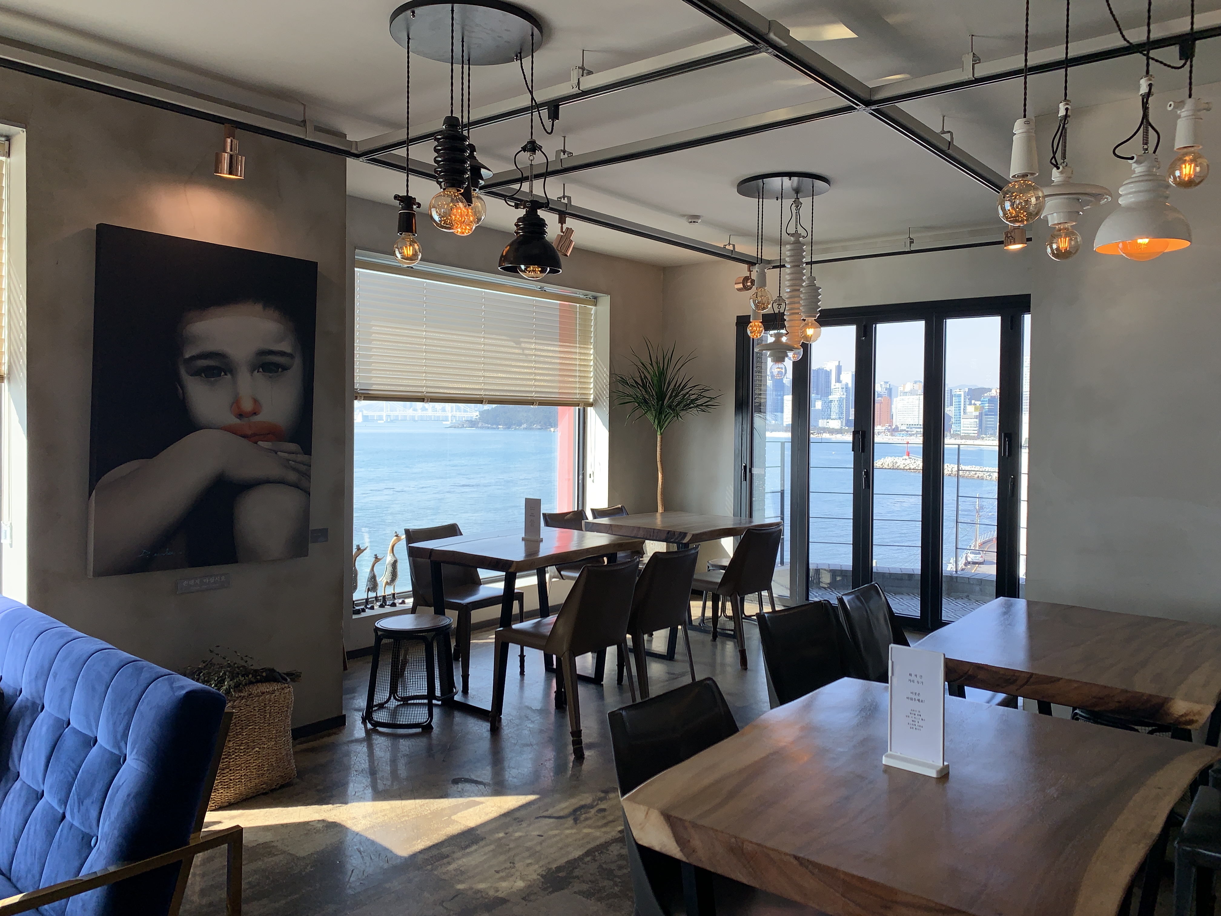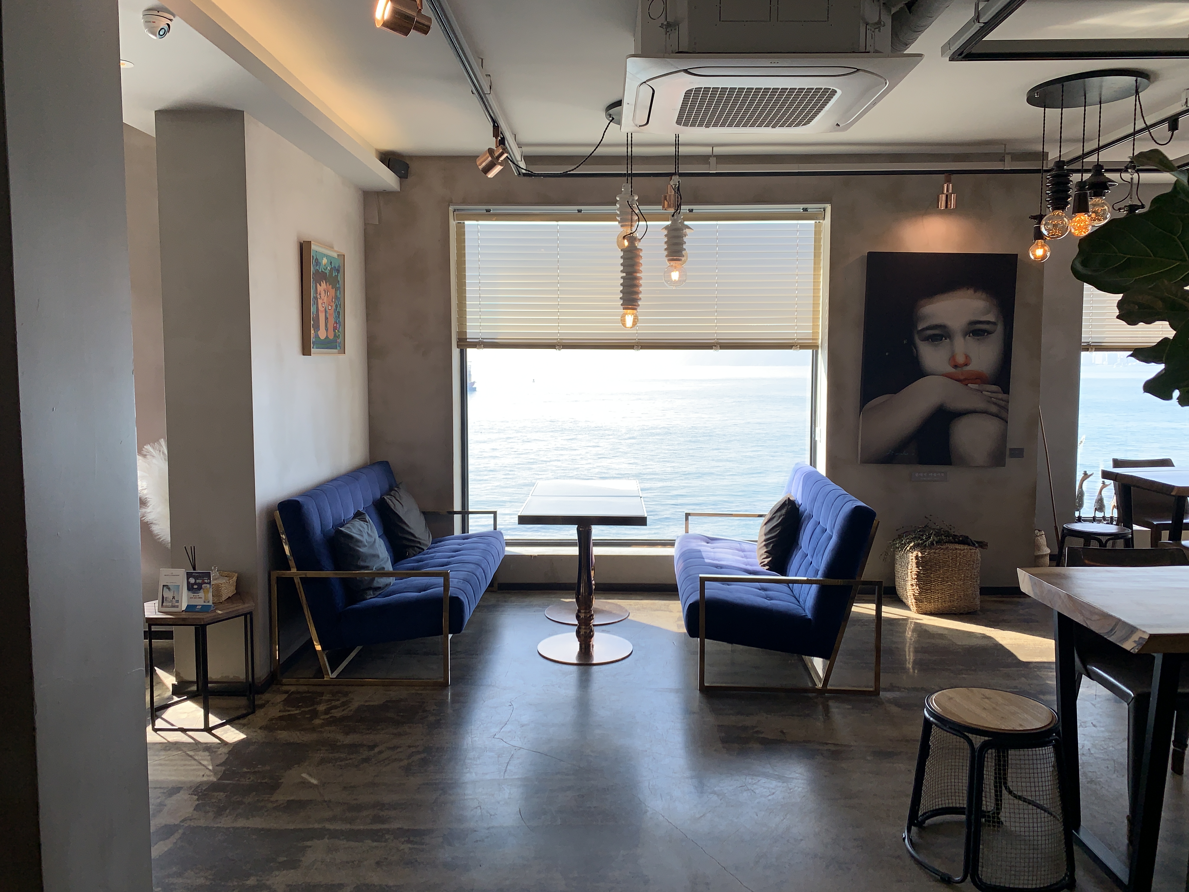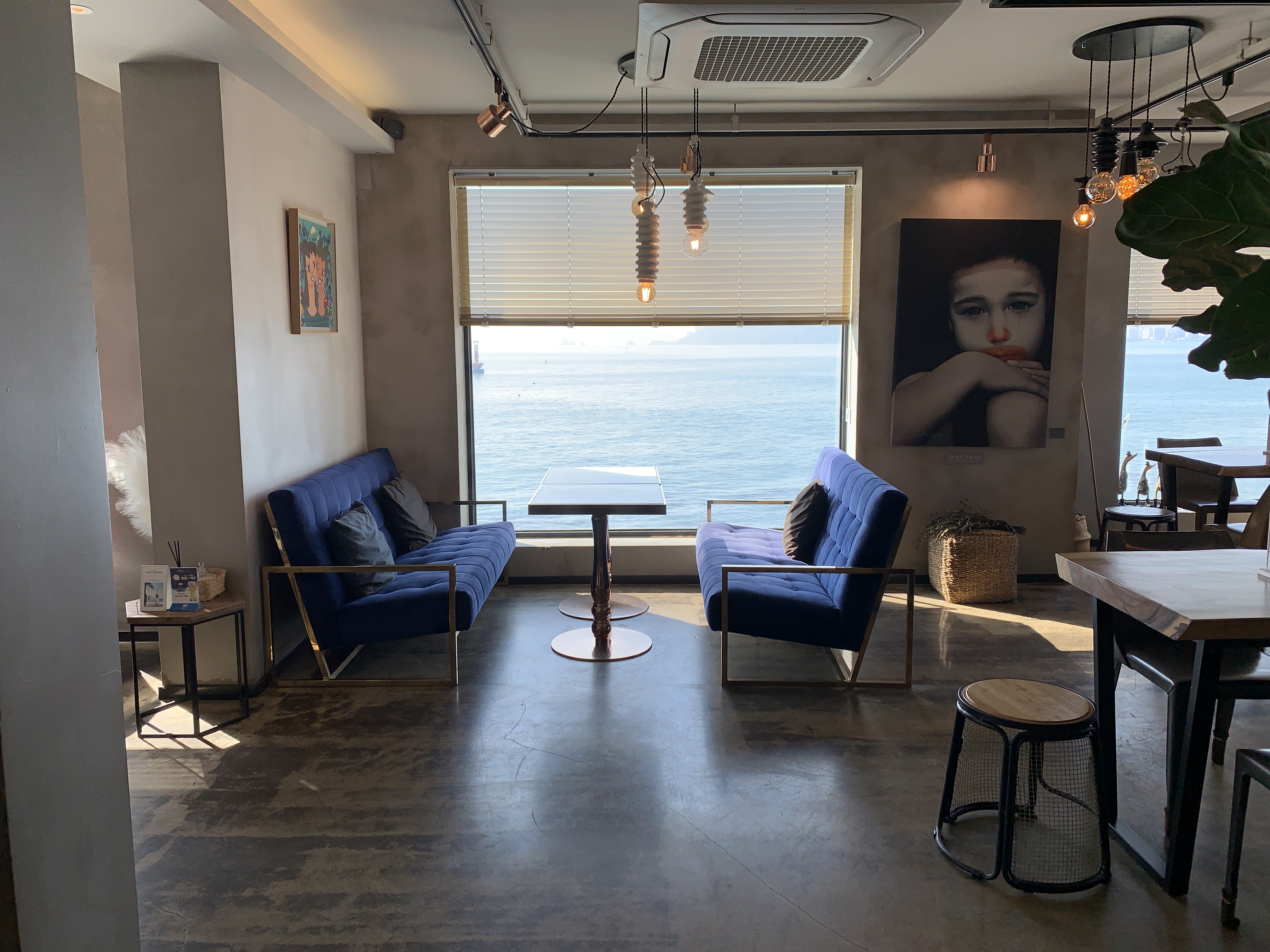 여기는 4층 실내 테이블들인데 바다가 보이는 명당 자리들도 뭐 텅텅 비어 있습니다.