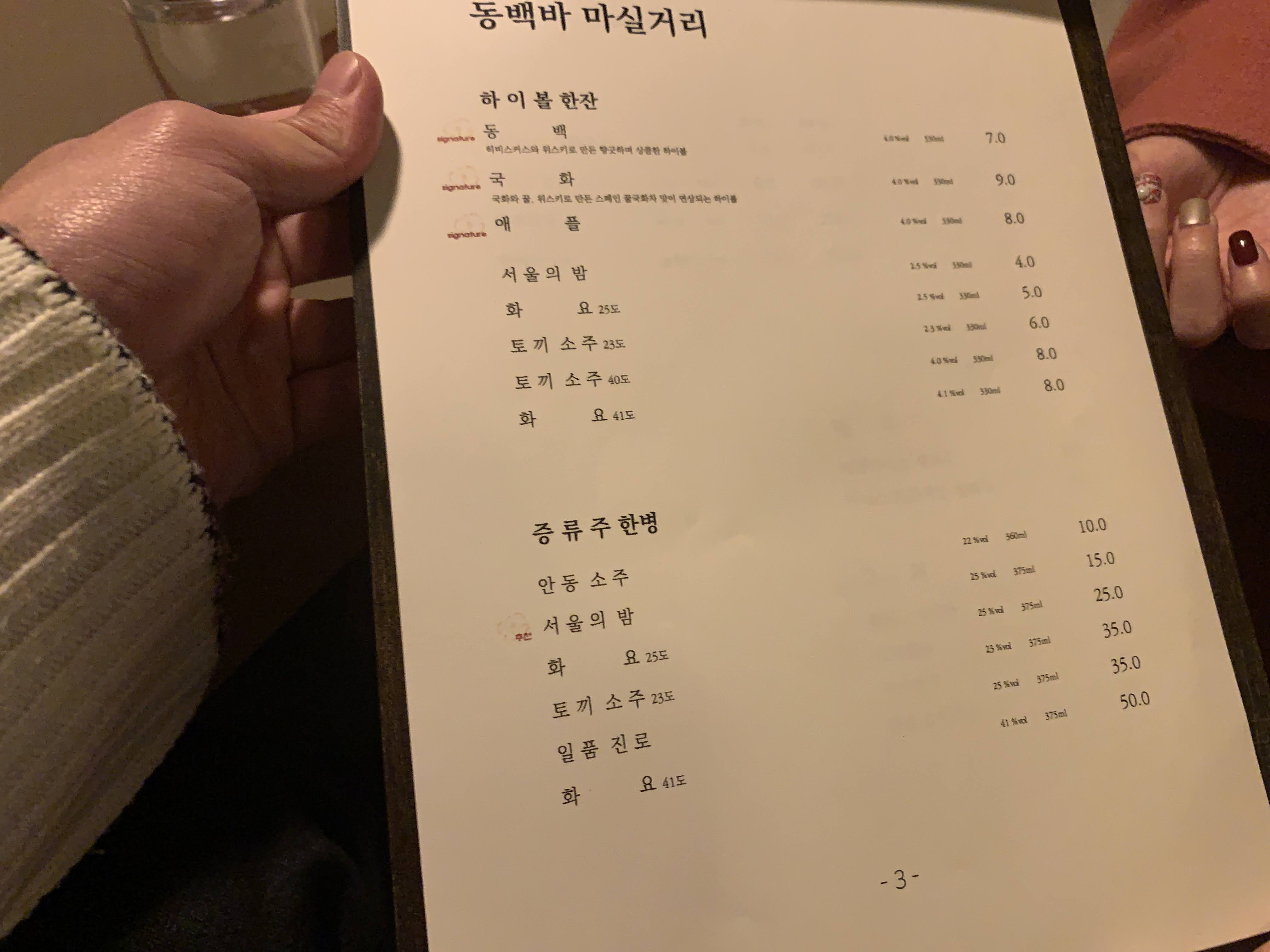 저는 기분을 내기 위해 안동소주를 시켰습니다.