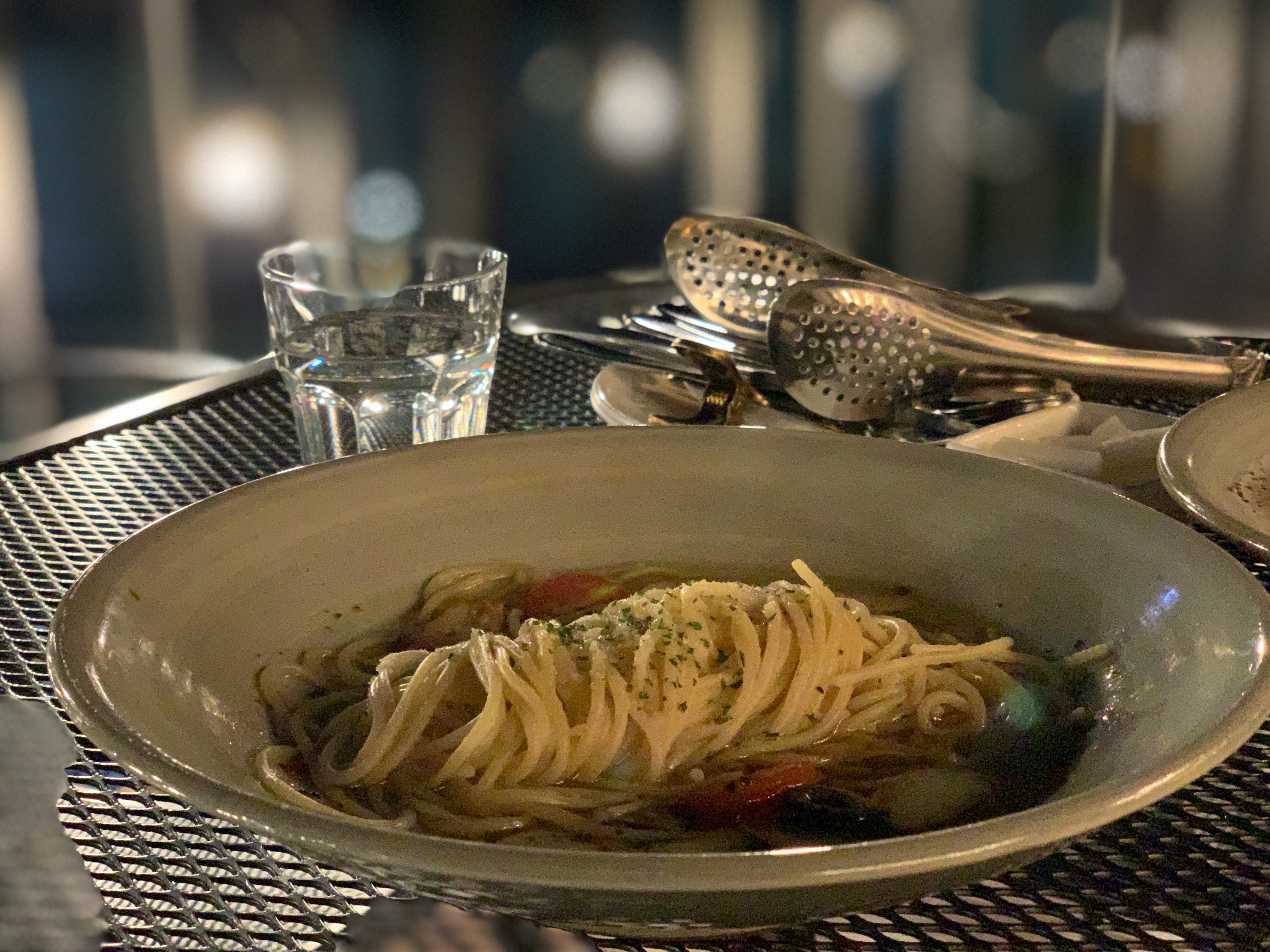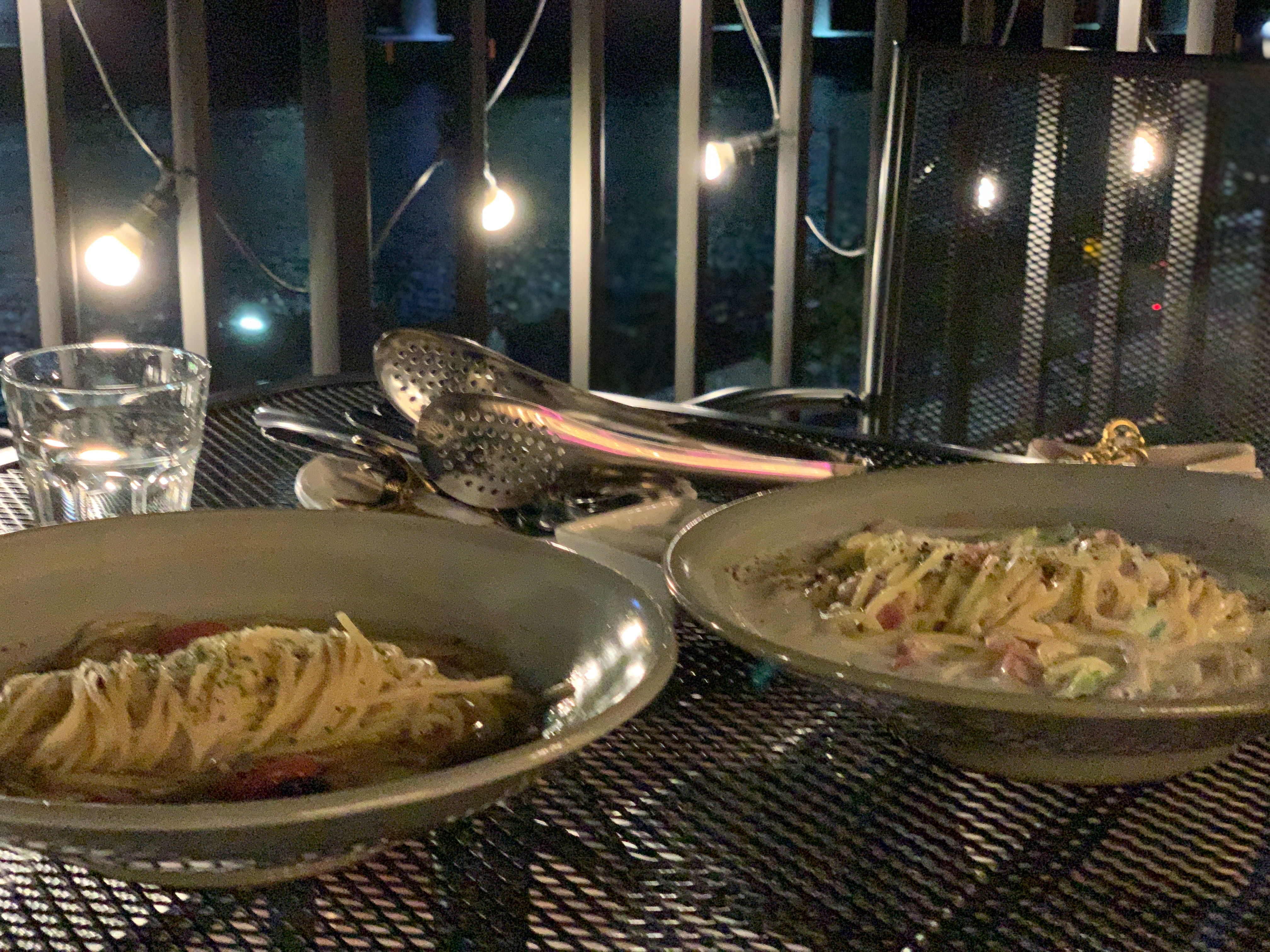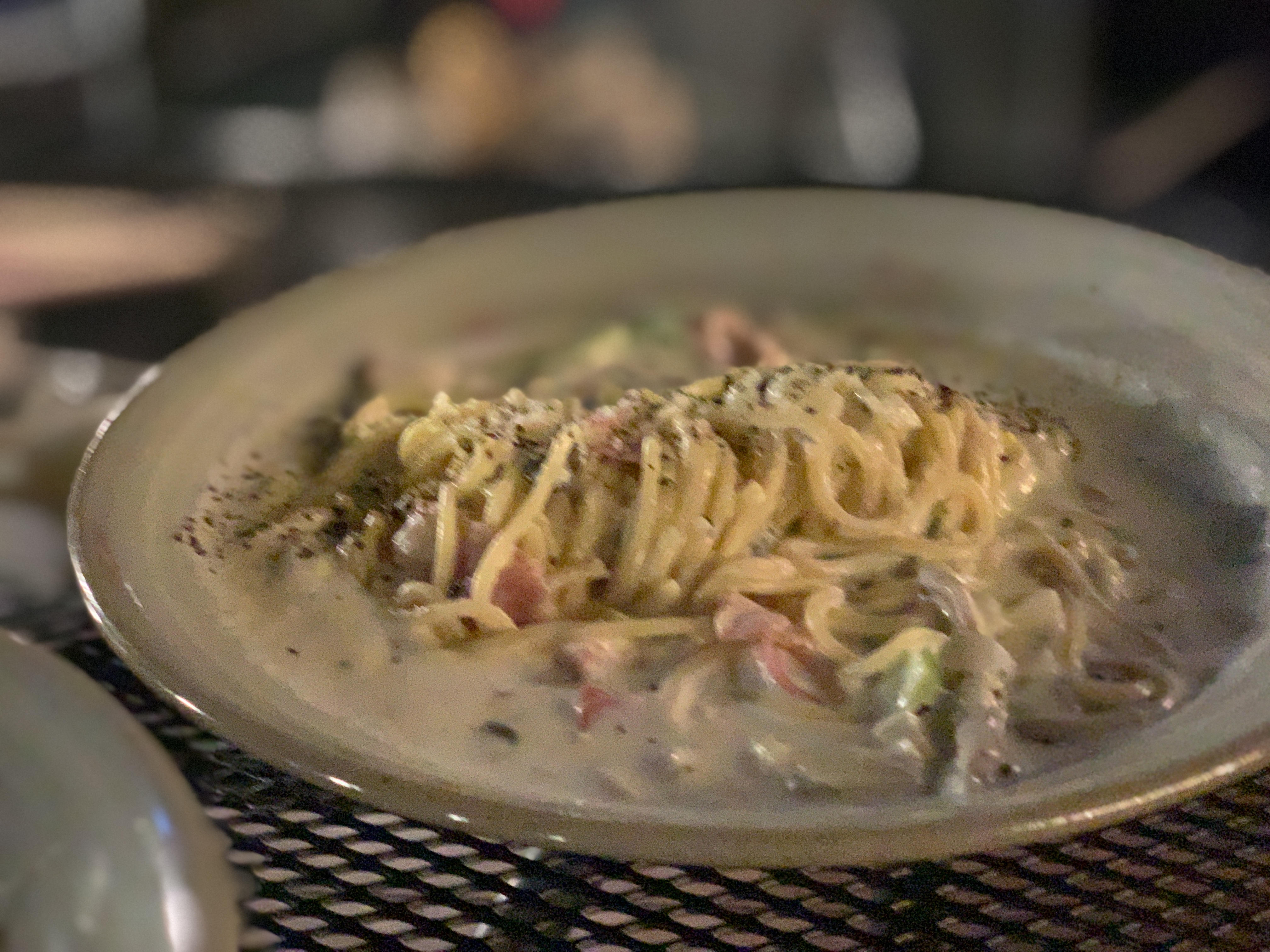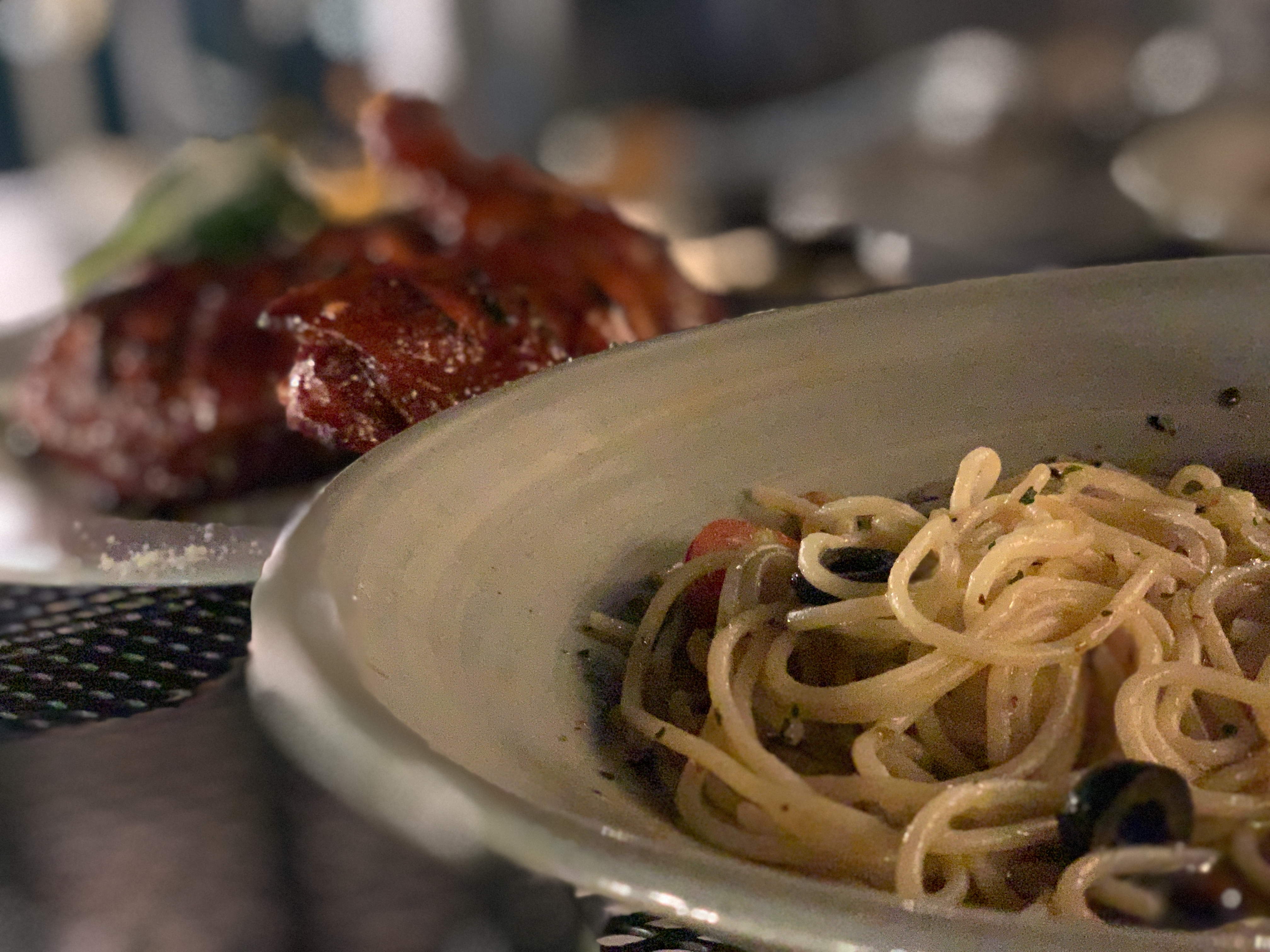 오일 파스타 하나랑 크림파스타 하나를 시켰는데, 이거로는 양이 좀 적은 것 같아서 닭다리 바베큐 같은 걸 하나 더 시켰습니다.