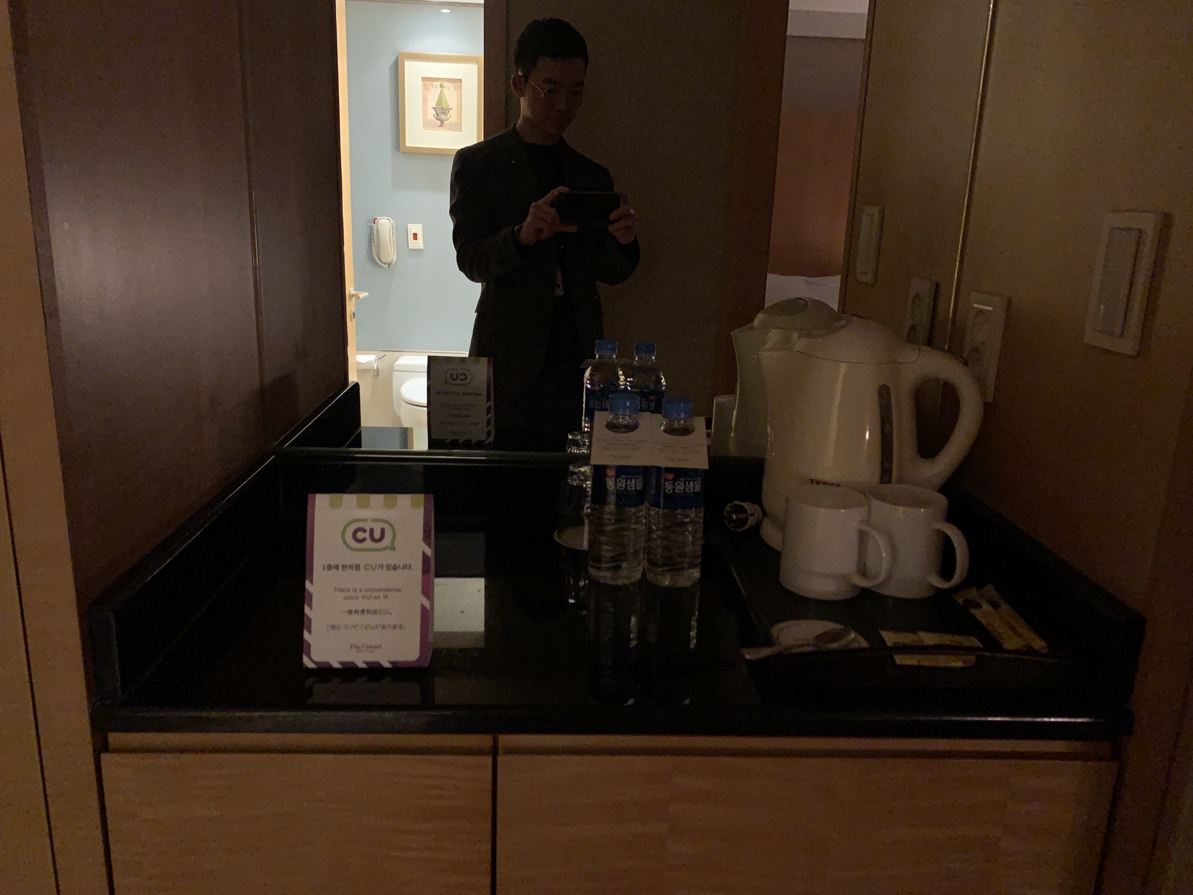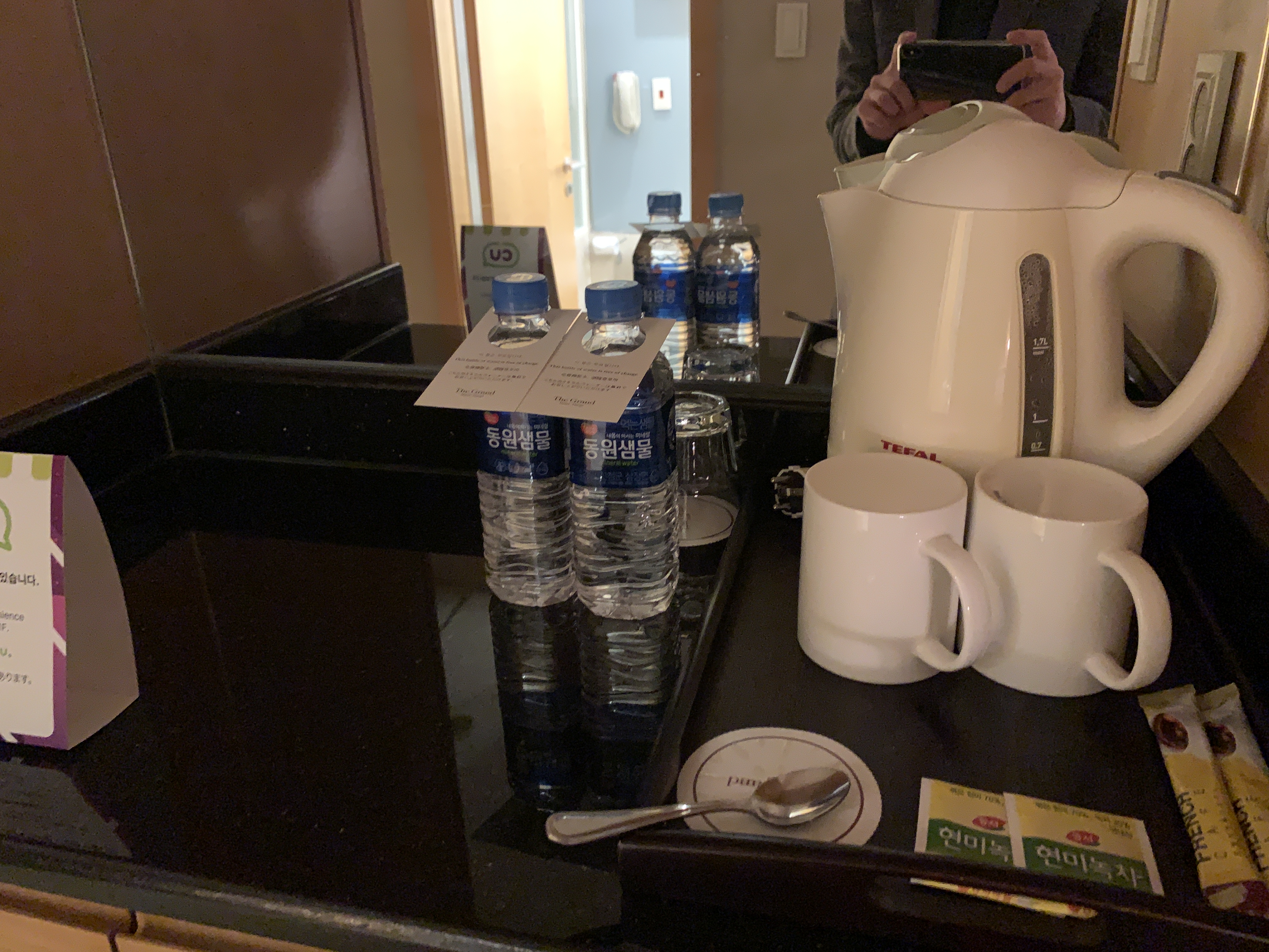 그냥 여느 호텔처럼 커피포트랑 컵들은 기본적으로 준비되어 있습니다.