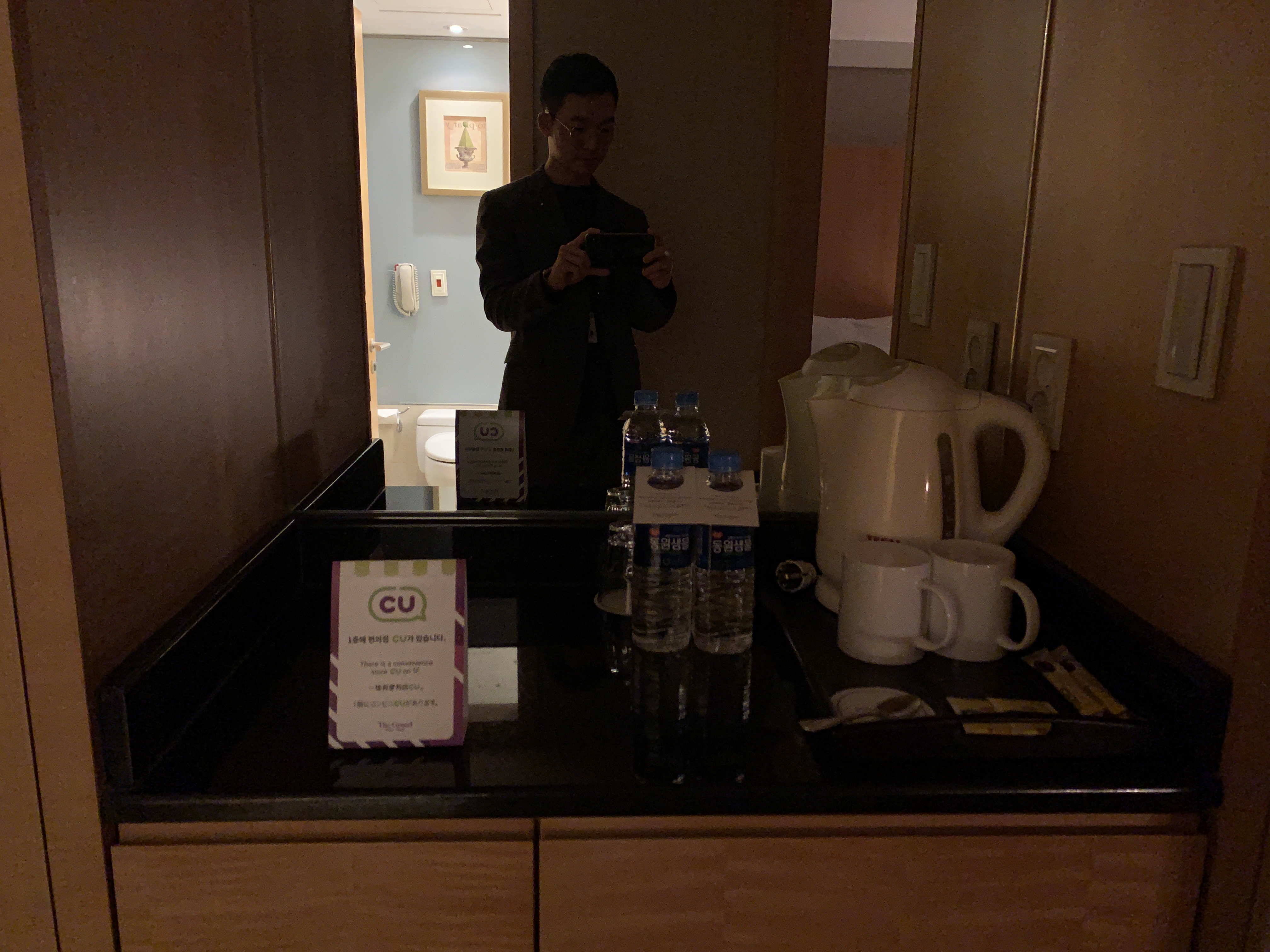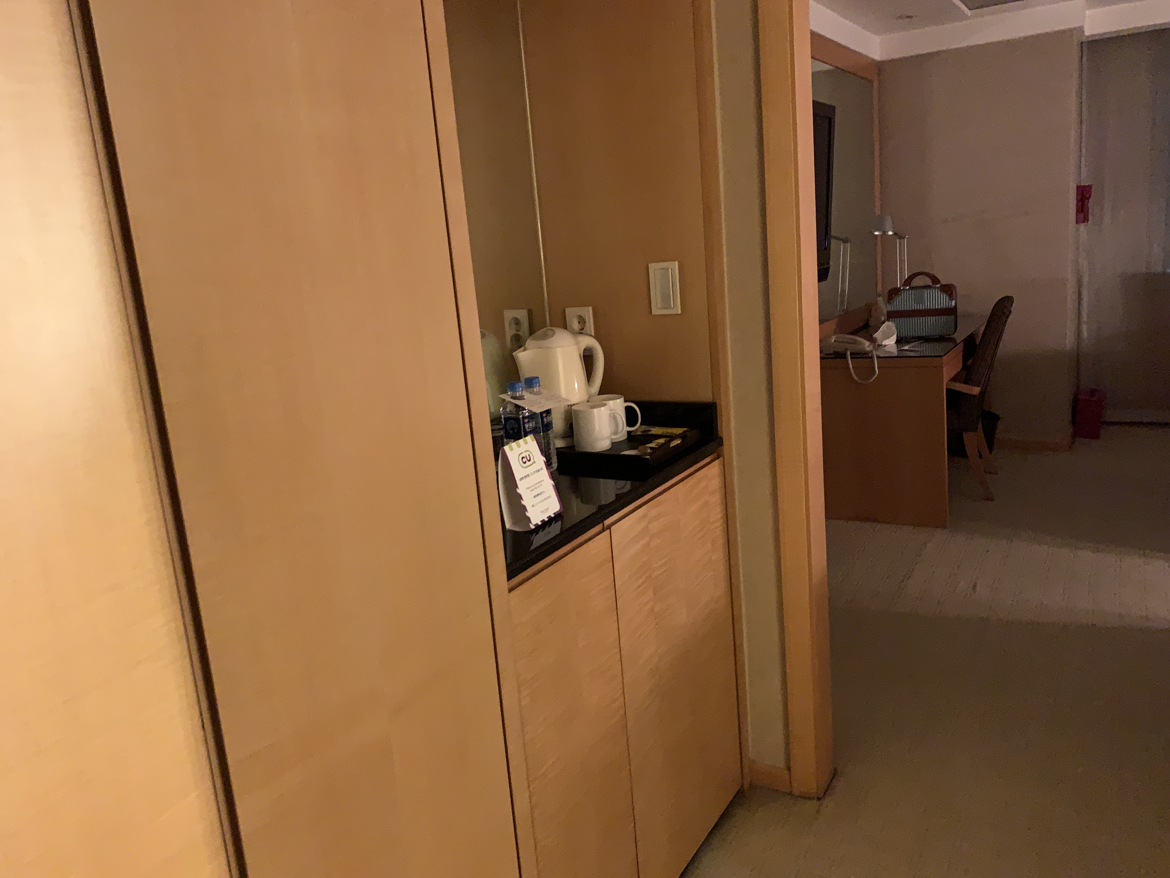 그냥 여느 호텔처럼 커피포트랑 컵들은 기본적으로 준비되어 있습니다.