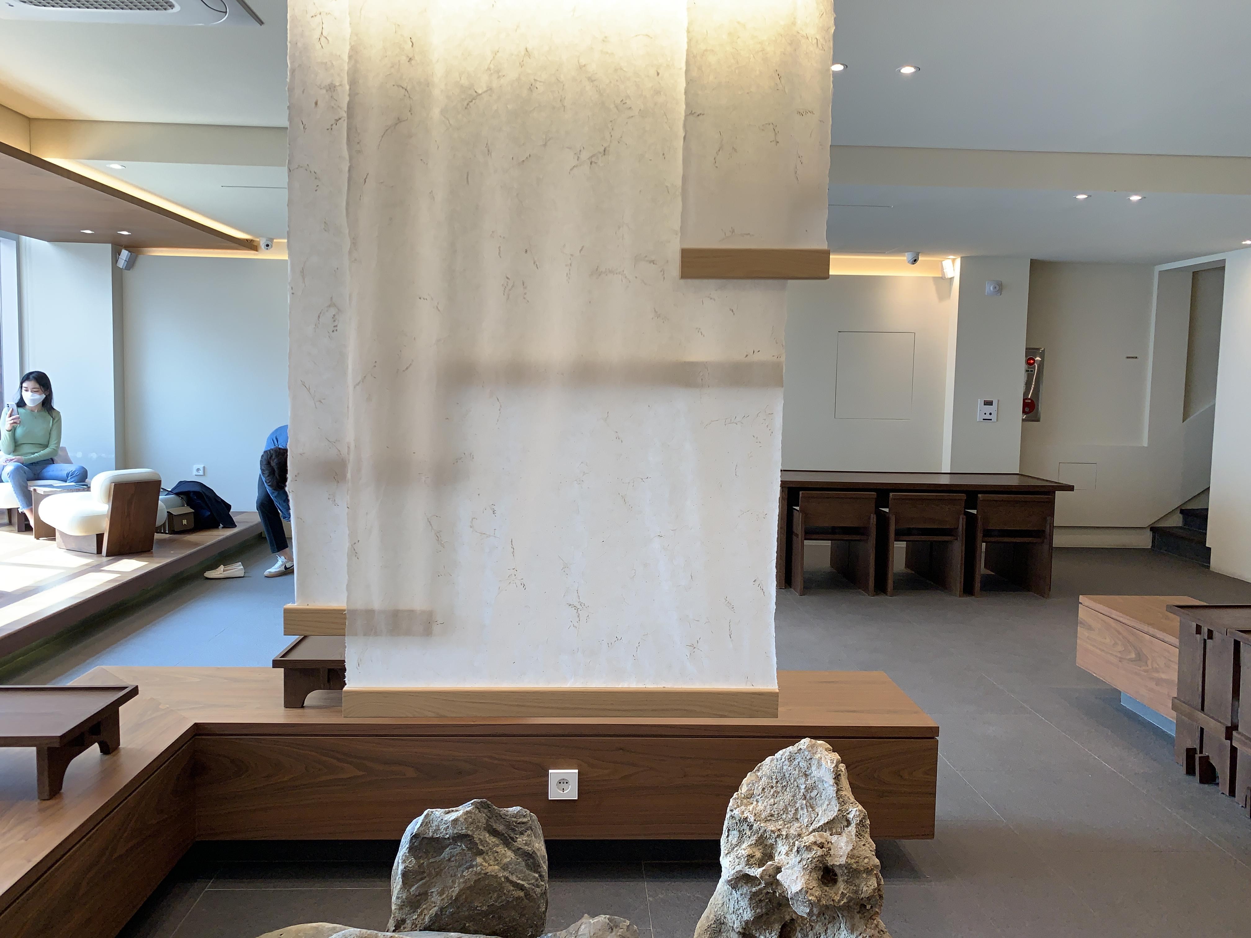 가운데에는 이런 식으로 전통적인 미를 한껏 느낄 수 있는 발 같은 것도 내려와 있습니다.