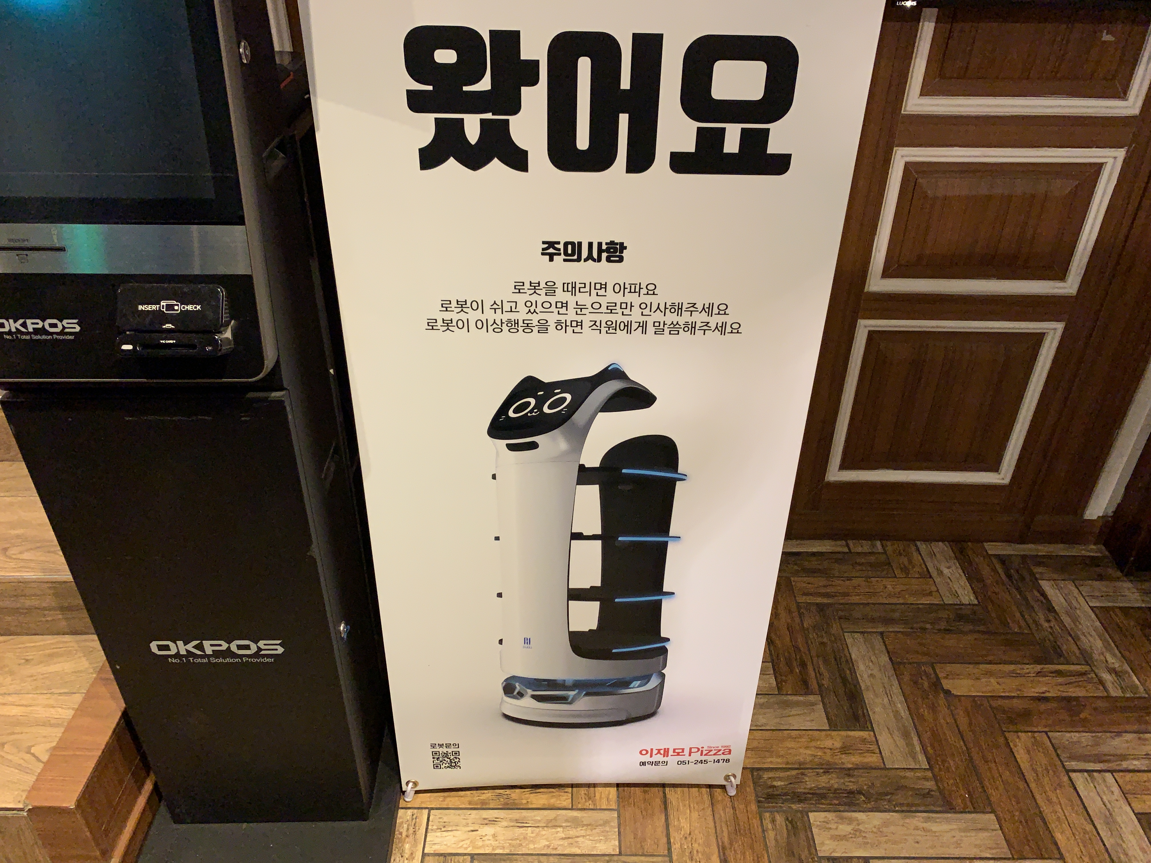 나오는 길에 보니 '로봇이 서빙하러 왔어요'라는 입간판이 서있다.
