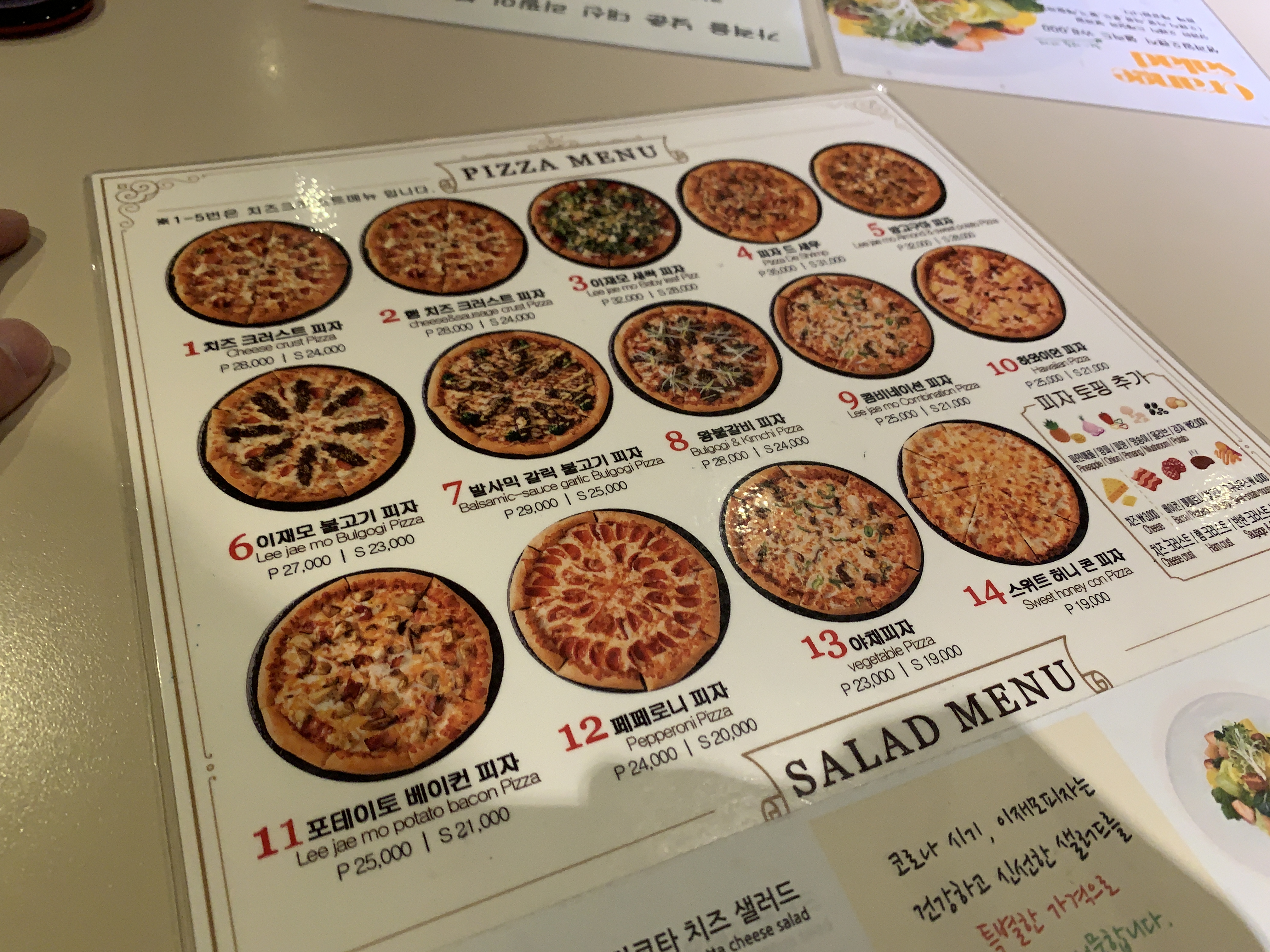 뭘 먹을까 고민하다가 처음 왔으니까 당연히 시그니처 메뉴를 먹는 게 좋을 것 같다는 생각이 들어서 1번 치즈 크러스트 피자를 시켰다. 사이즈는 4000원 차이밖에 안 나서 그냥 P사이즈로 큰 사이즈를 시켰다.