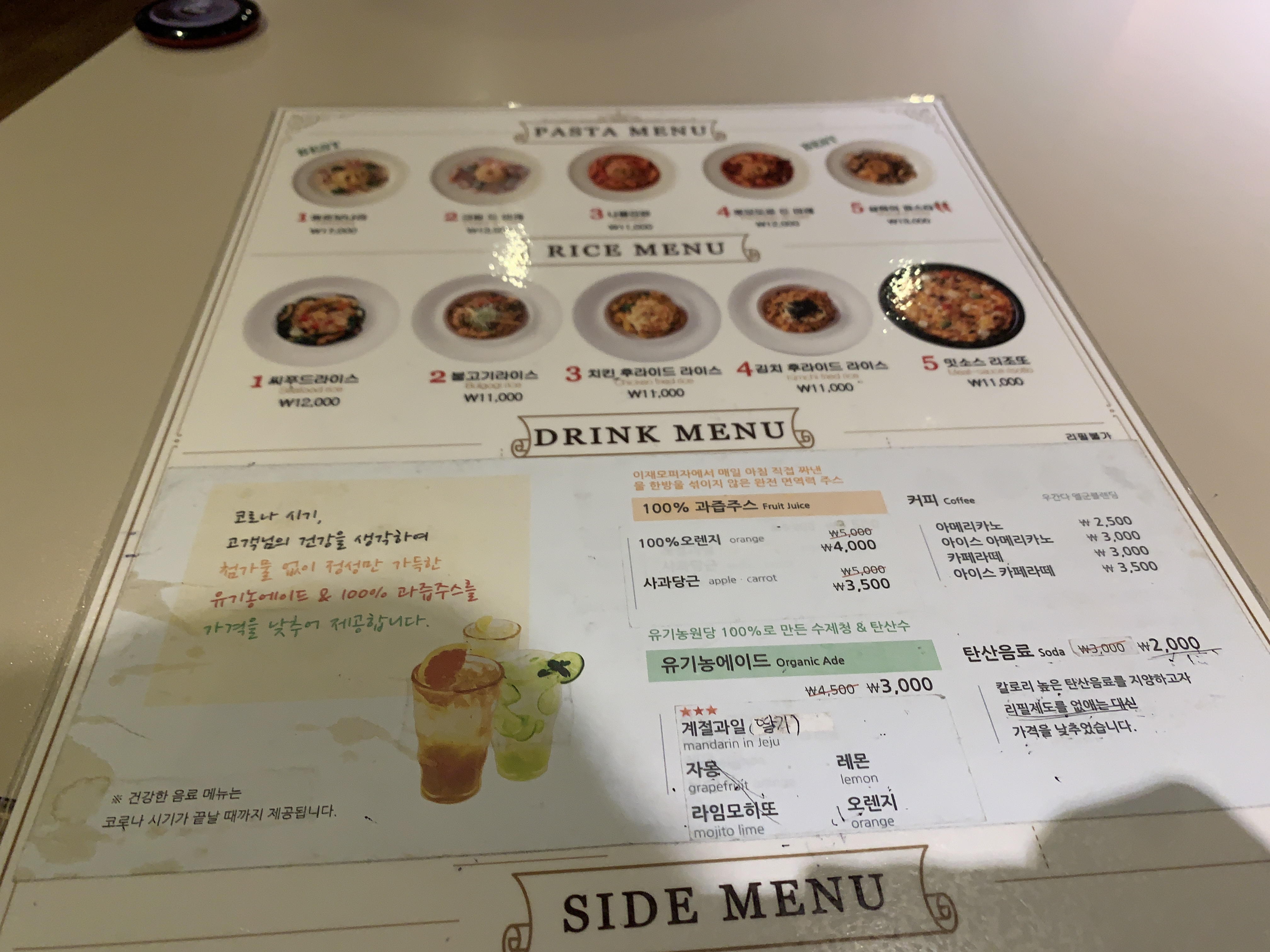 뒷면을 보니 파스타도 있길래 파스타도 하나 시켰다.