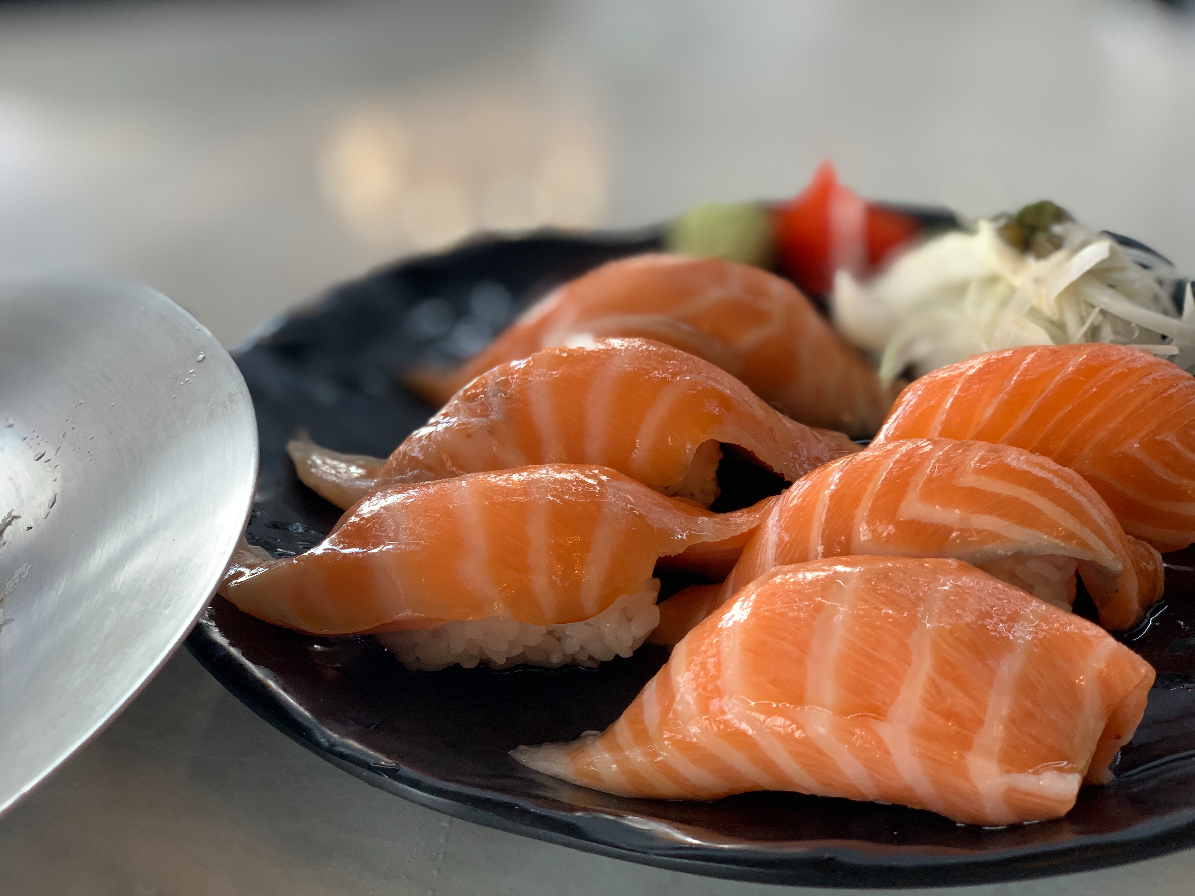 이게 사진으로 잘 안 보일 수도 있는데, 연어초밥 크기가 진짜 엄청납니다. 너무 배가 불러서 저는 밥을 절반 정도 덜어내고 연어만이라도 다 먹었습니다 ㅎㅎ