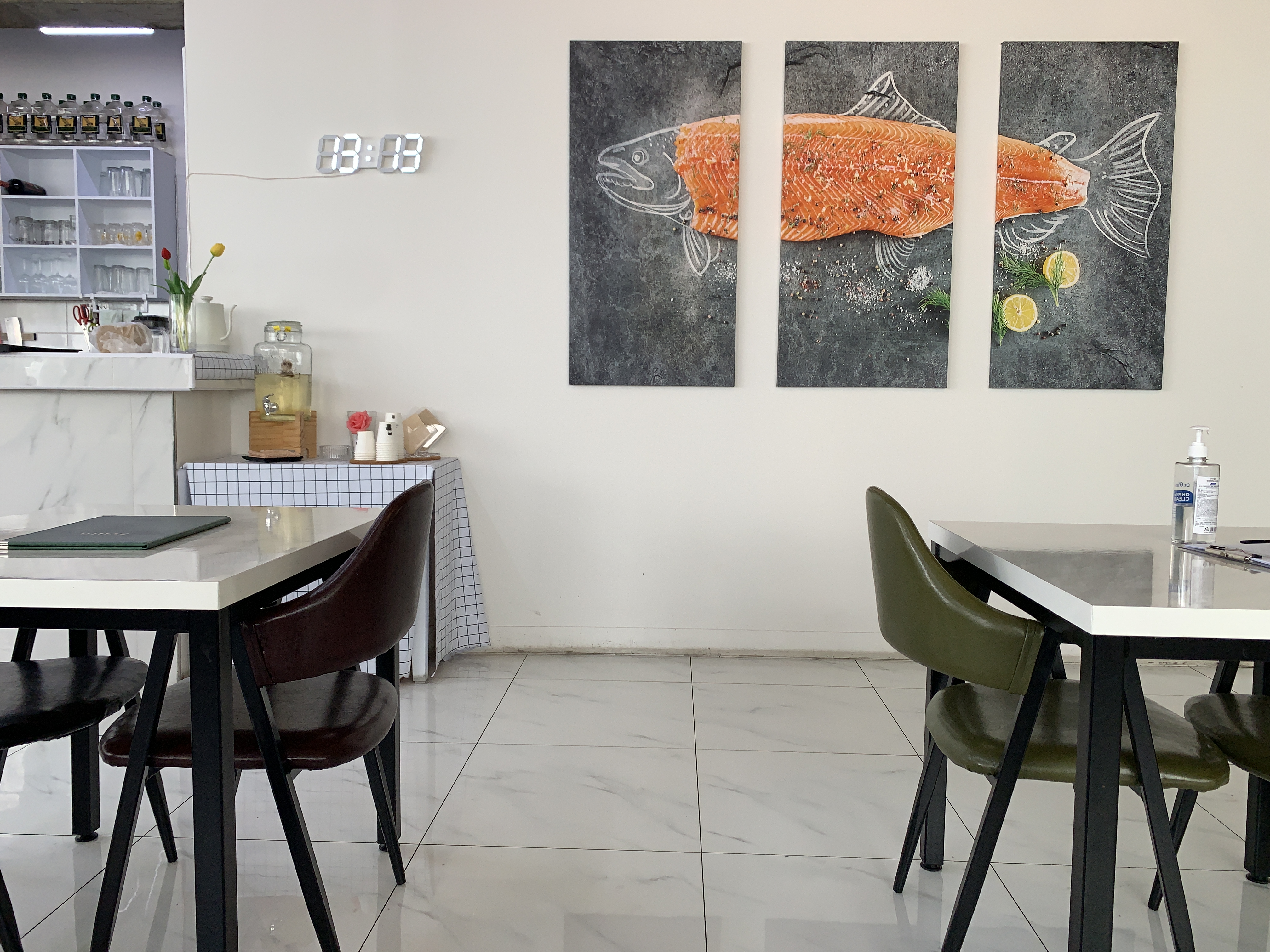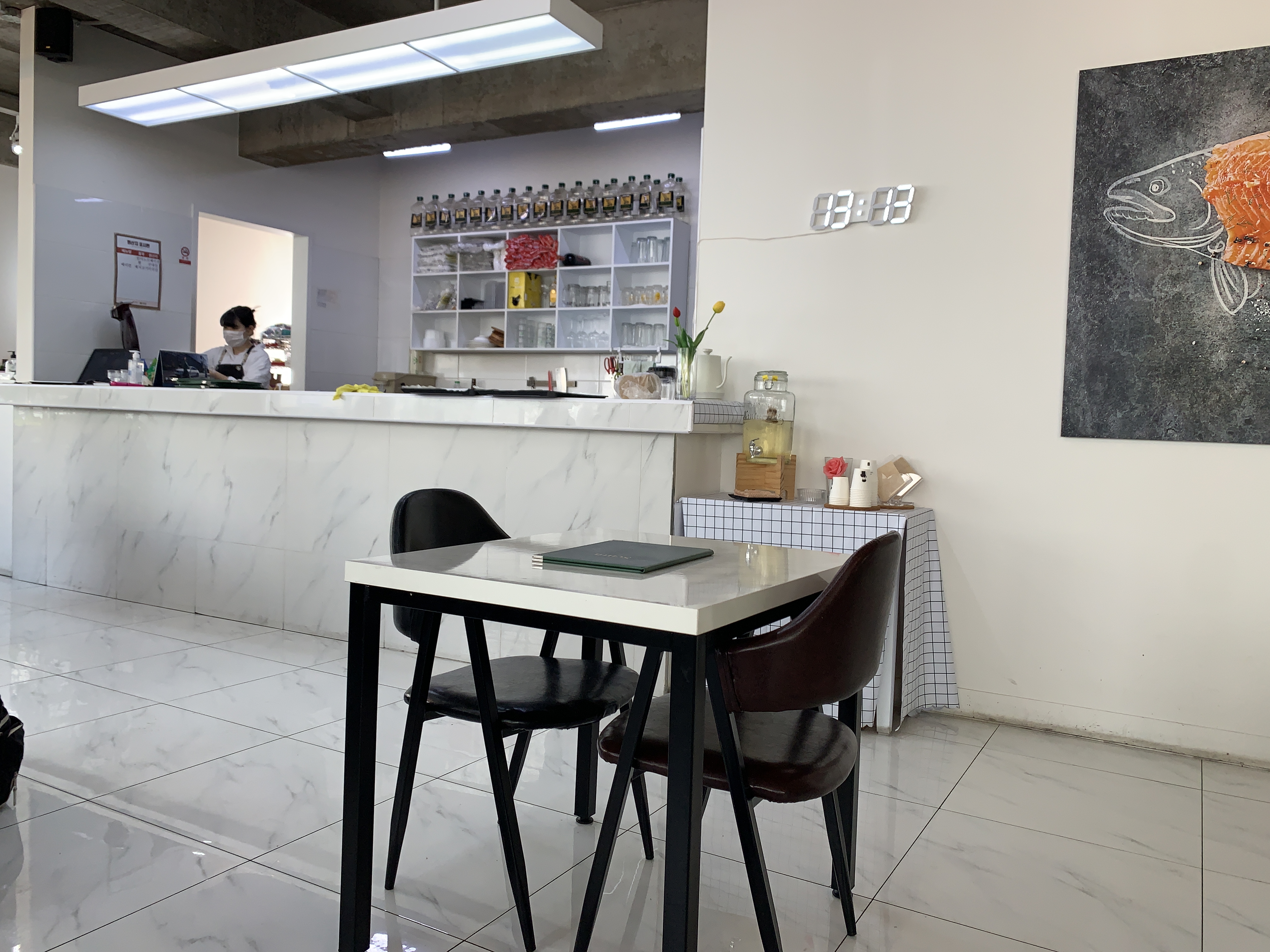 벽에는 연어가 장식되어 있네요 ㅎㅎ