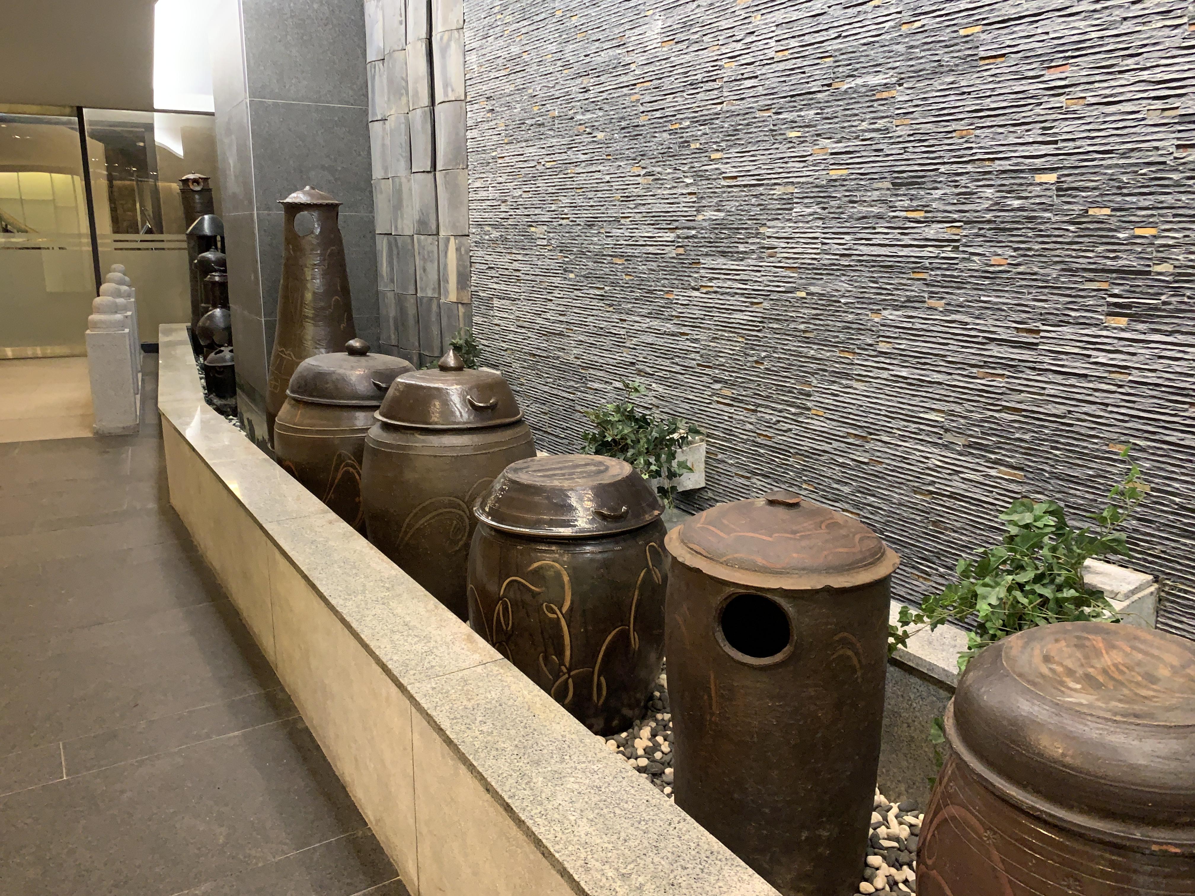 이런 장독대 같은 걸로 인테리어가 되어 있는데, 역시 전통미를 강조한다는 느낌이 듭니다.