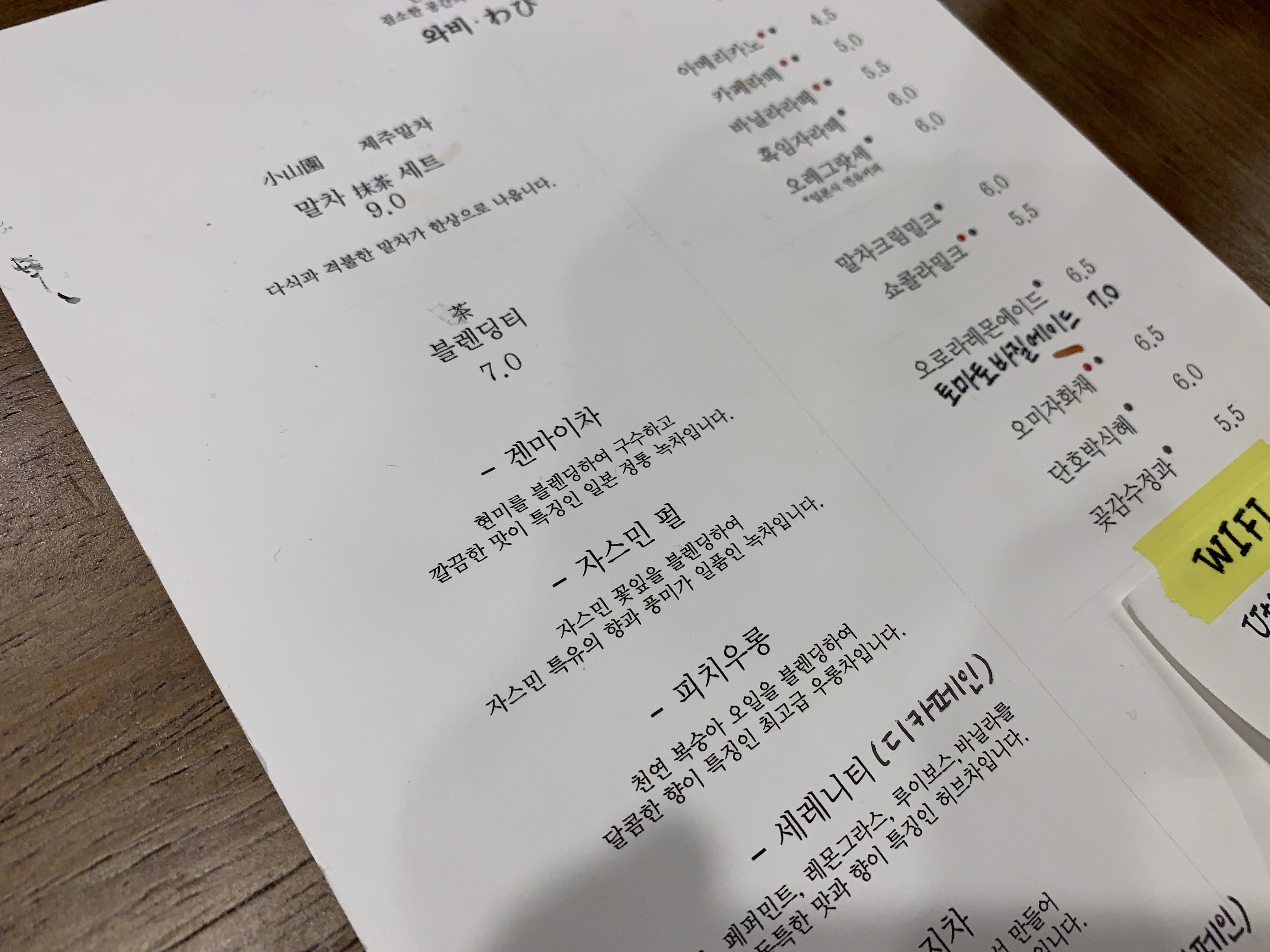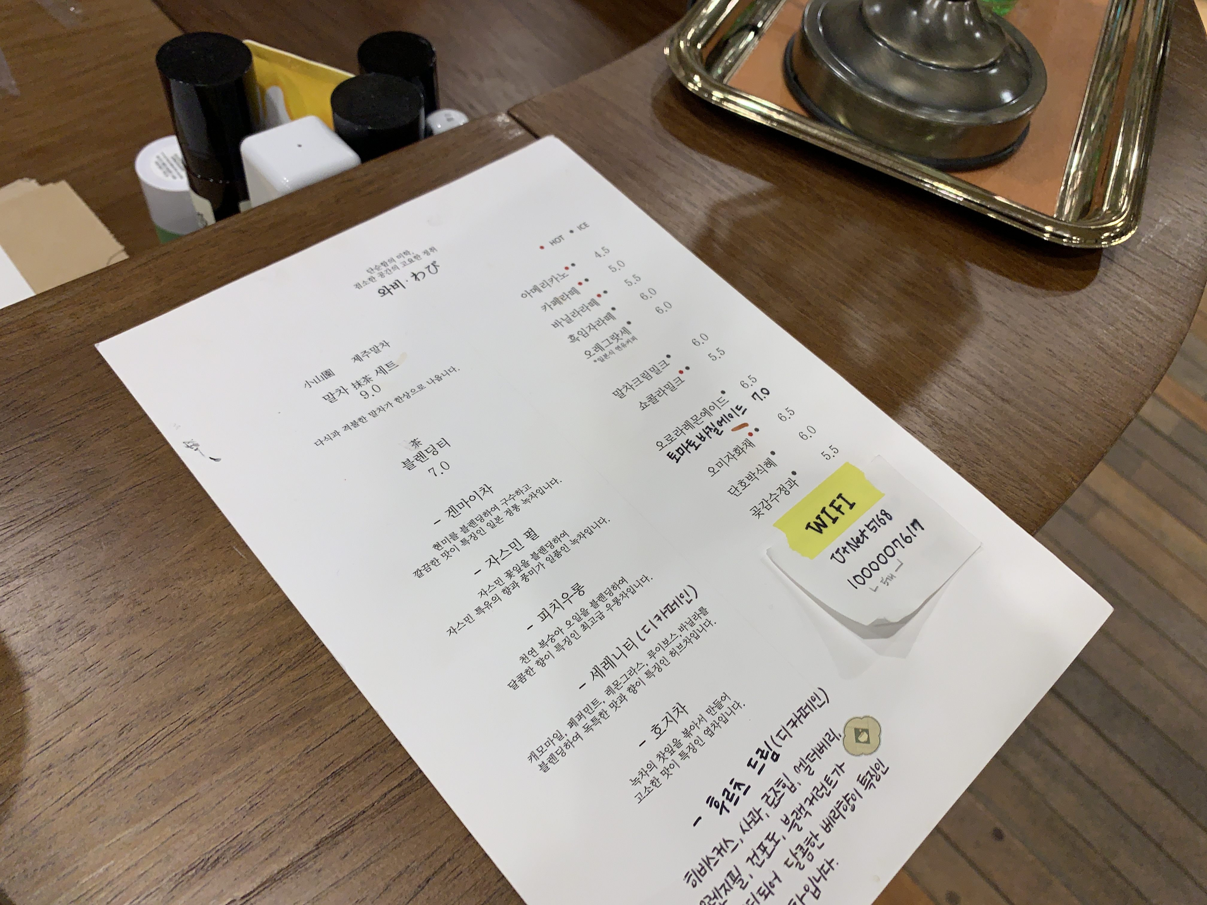나도 커피를 마실까 하다가 왠지 이런 분위기에서는 딱 양반다리 하고 앉아서 차를 마시는 게 훨씬 잘 어울릴 것 같다는 생각이 들어서 차로 주문. 뭘 마셨는지는 기억 안 난다 ㅎㅎ...