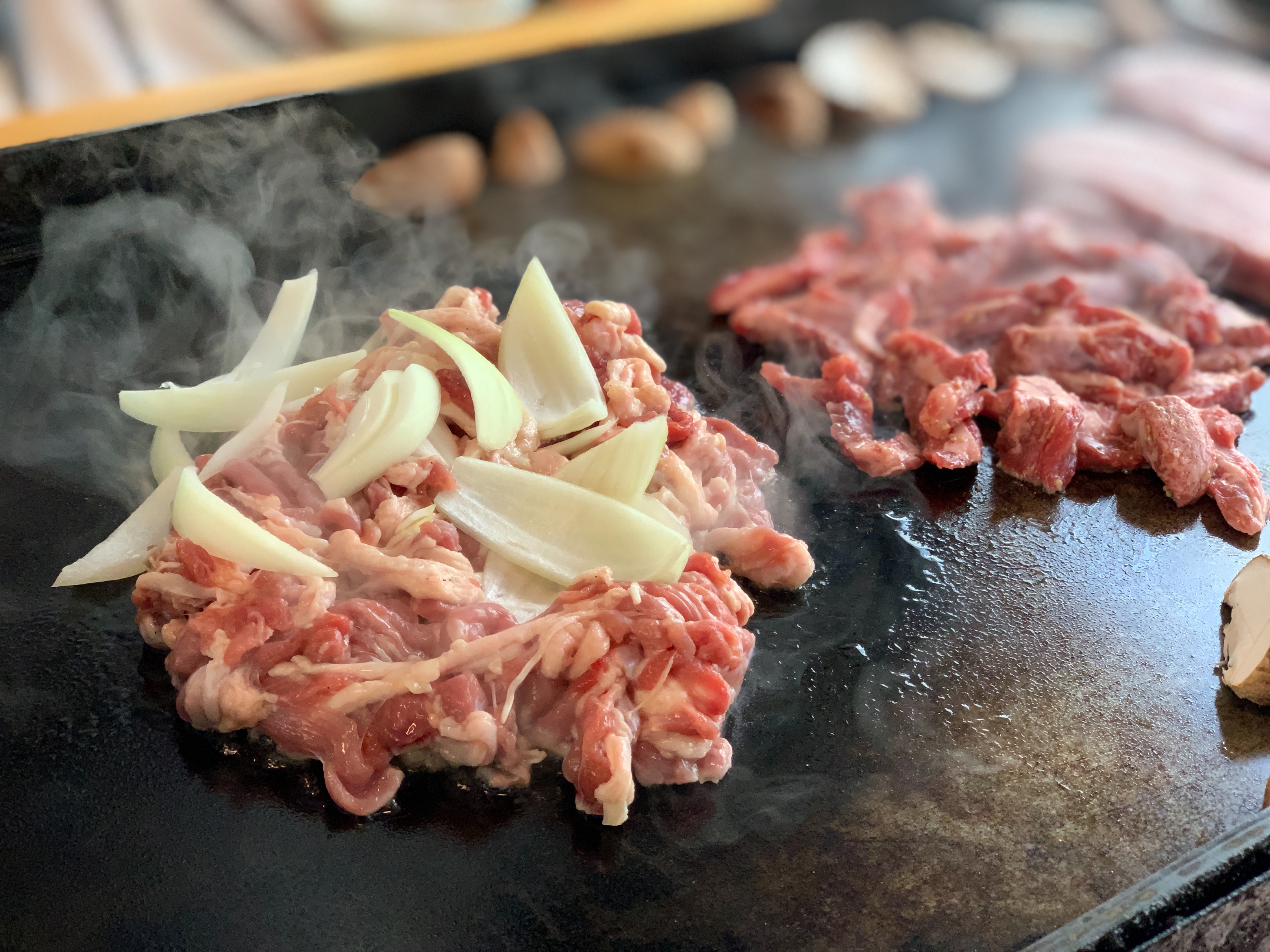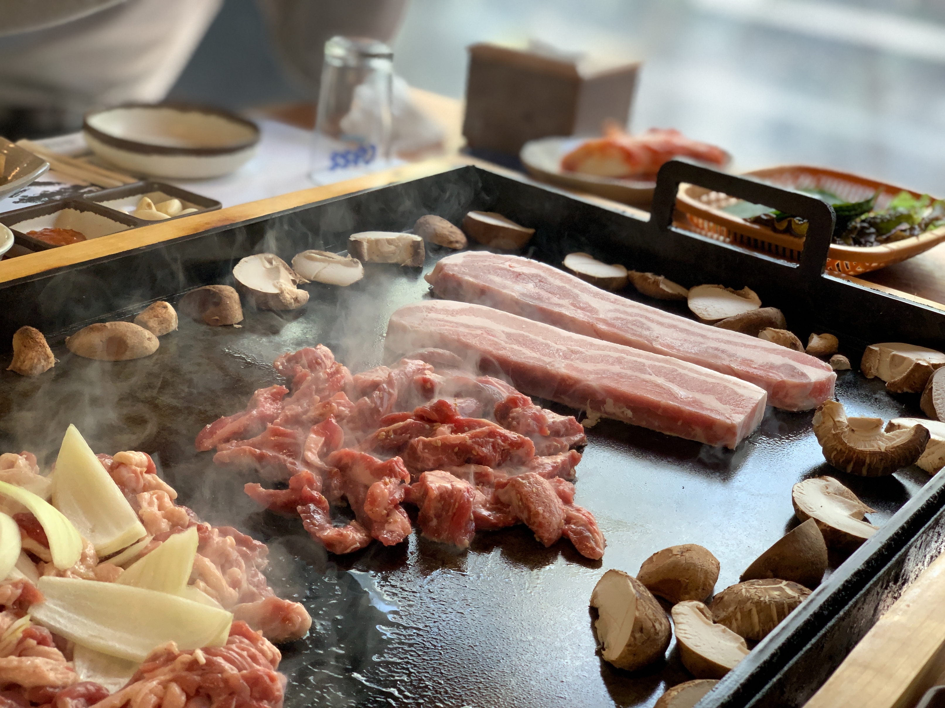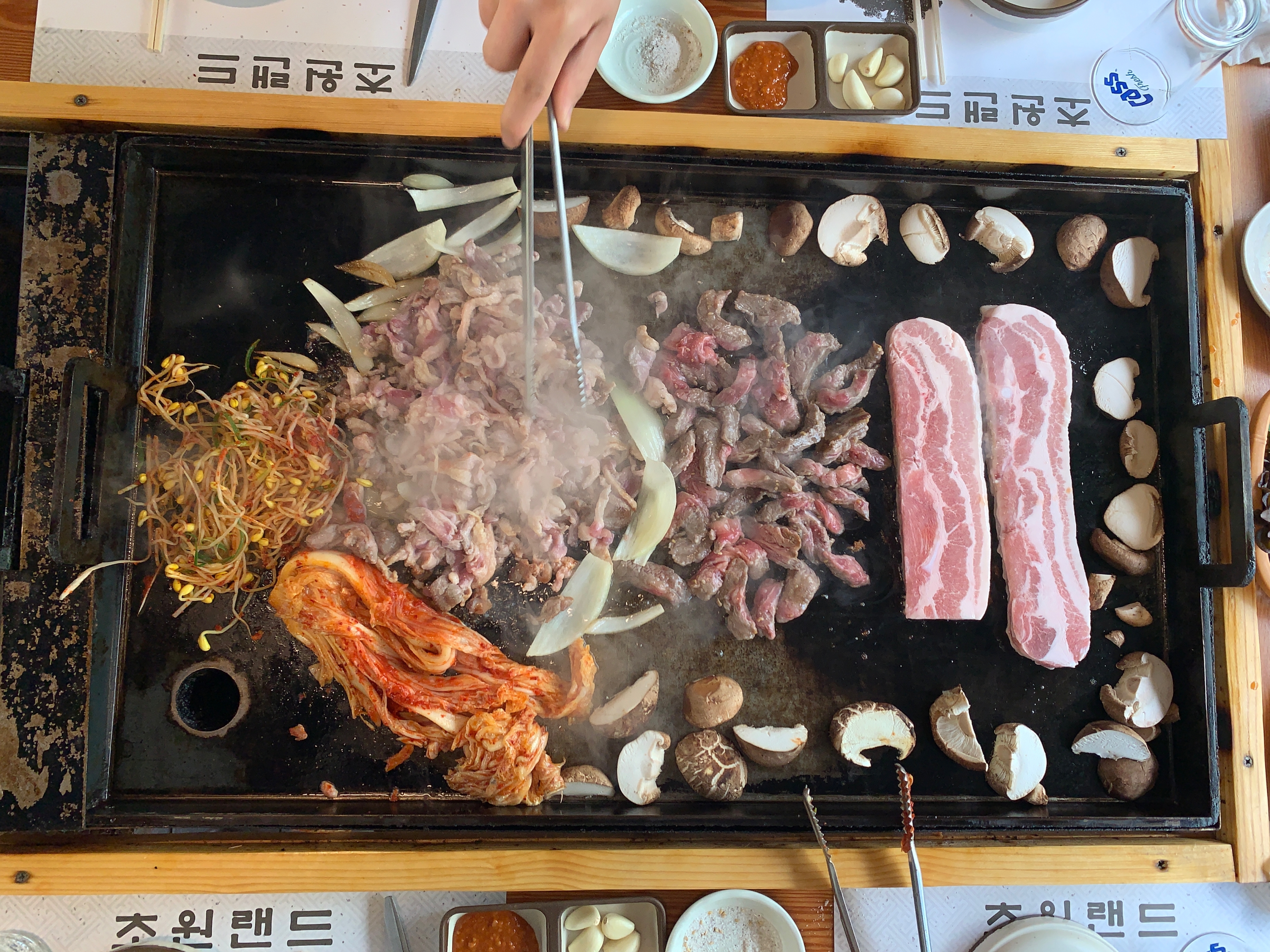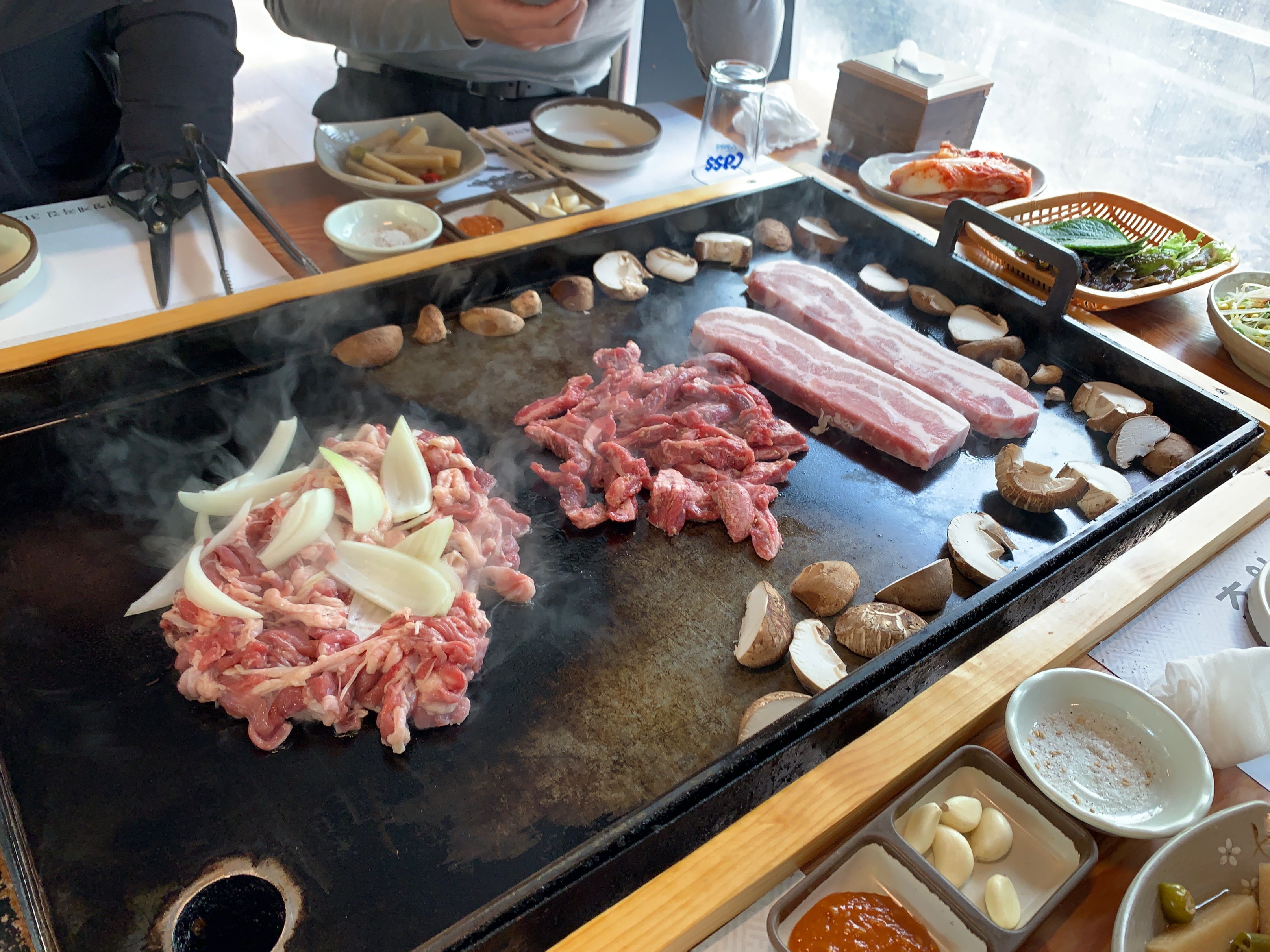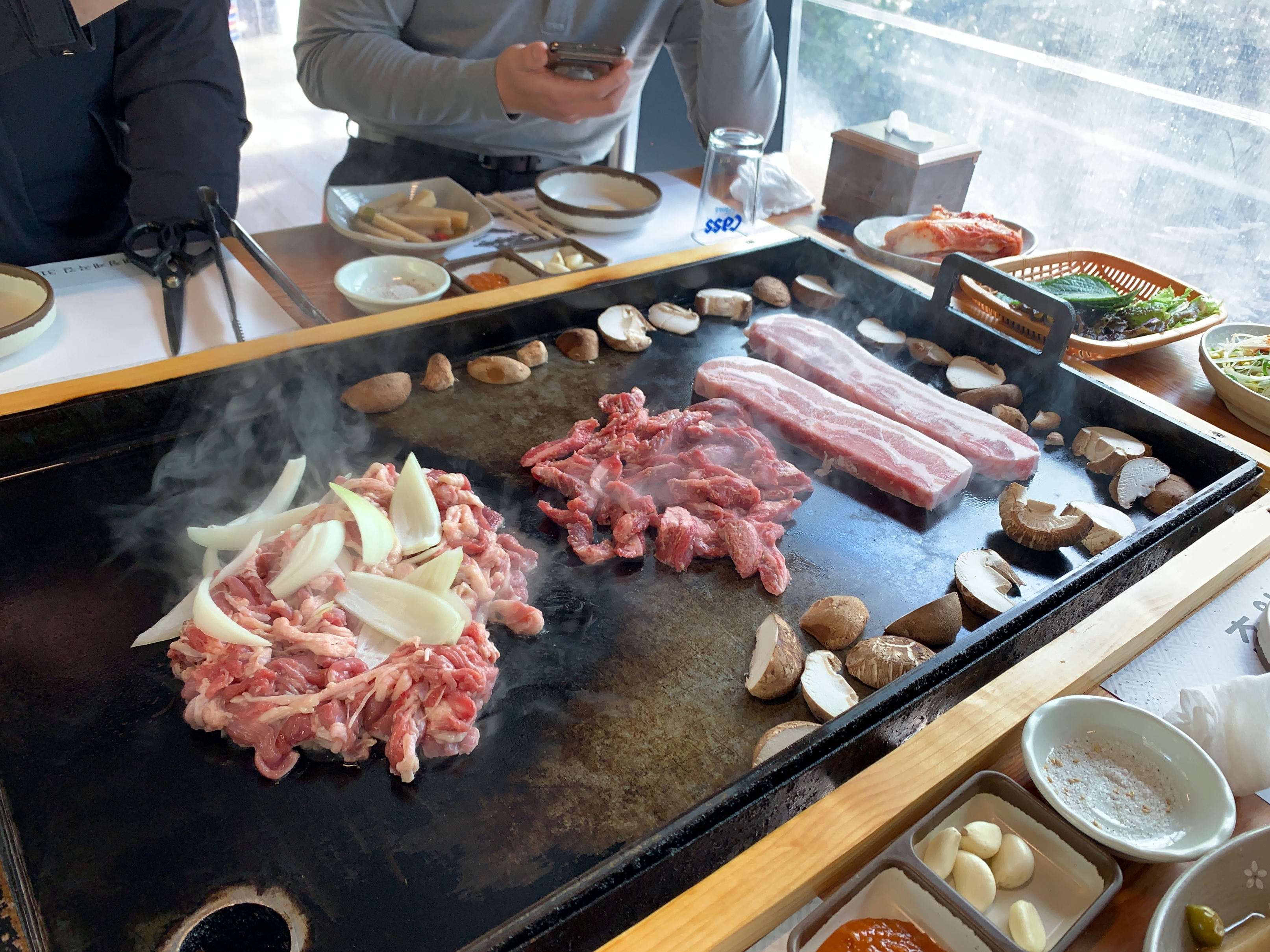 우리는 13만원짜리 3-4인용 메뉴를 시켰는데, 이렇게 주문을 하면 삼겹살, 오리고기, 소고기 세 가지를 동시에 맛볼 수 있다.