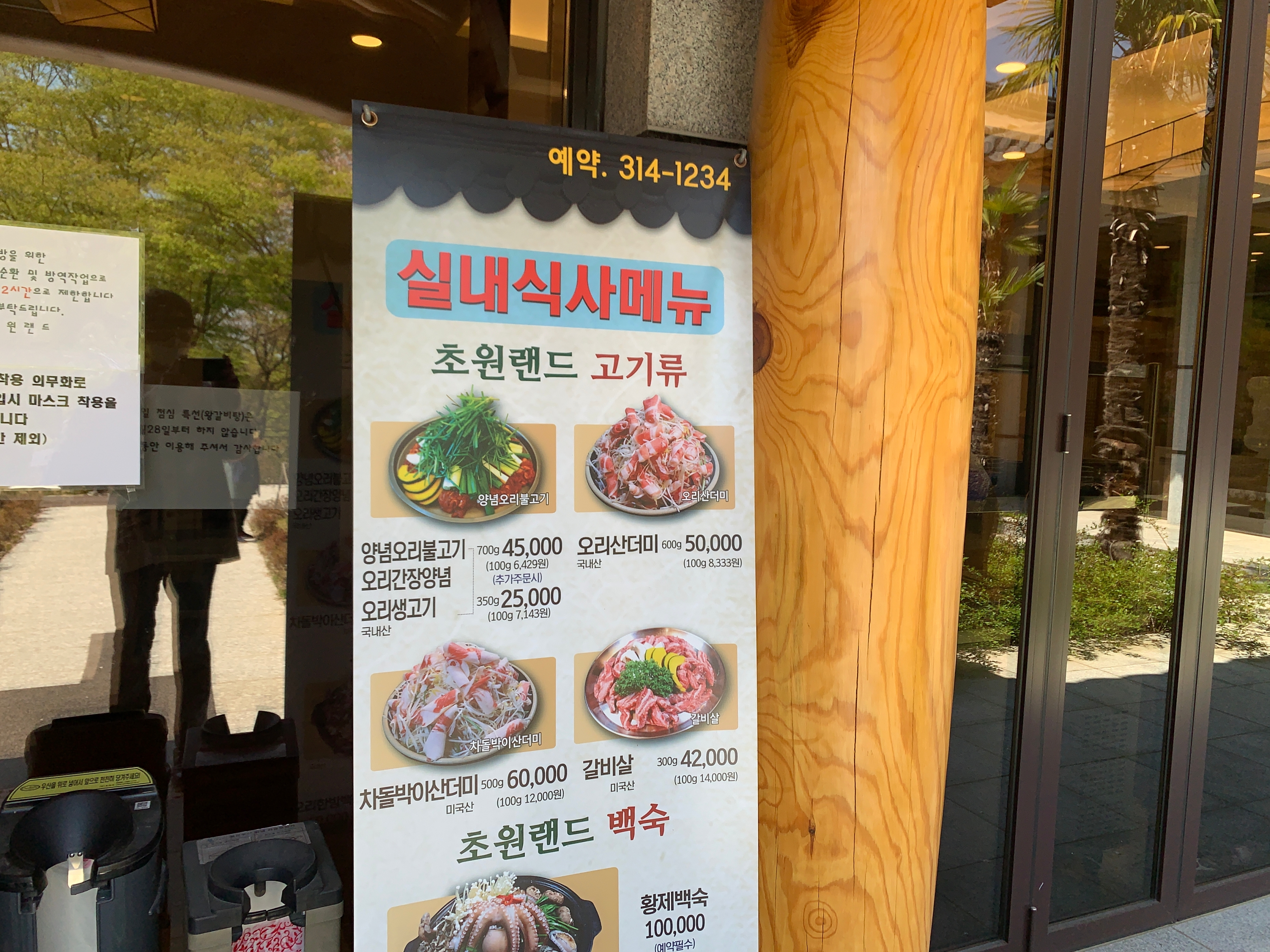 특히 여기는 실내 자리와 실외 테라스 자리가 구분되어 있는데, 날 좋은 날에 바깥 풍경을 감상하면서 먹으려면 실외 테라스 자리를 예약하는 걸 추천한다. 참고로, 실내와 실외 자리는 애초에 메뉴 자체가 다른데 실외 자리에서 먹을 때는 3-4명 이상이 가야 가성비가 좋다.
