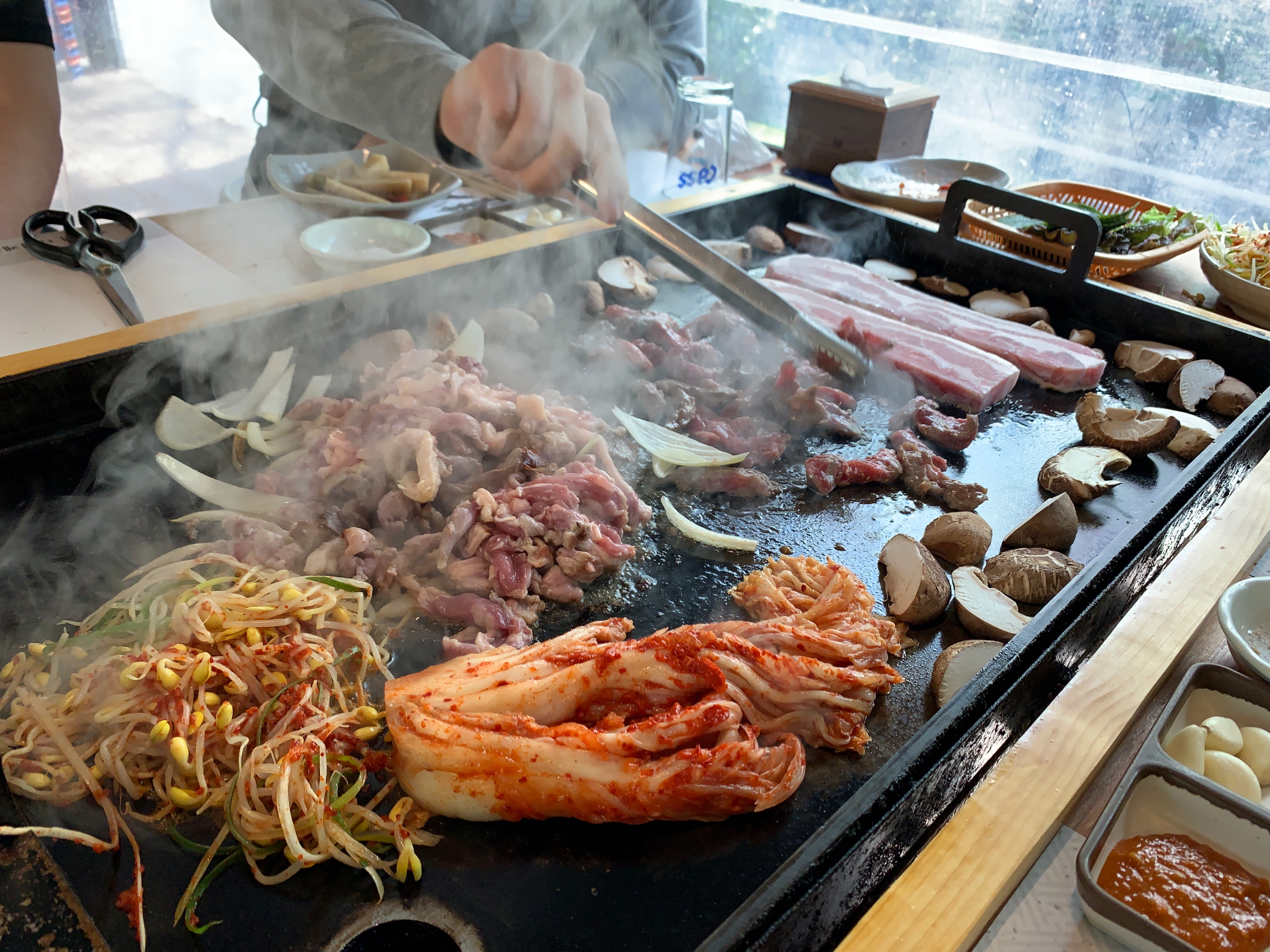우리는 13만원짜리 3-4인용 메뉴를 시켰는데, 이렇게 주문을 하면 삼겹살, 오리고기, 소고기 세 가지를 동시에 맛볼 수 있다.