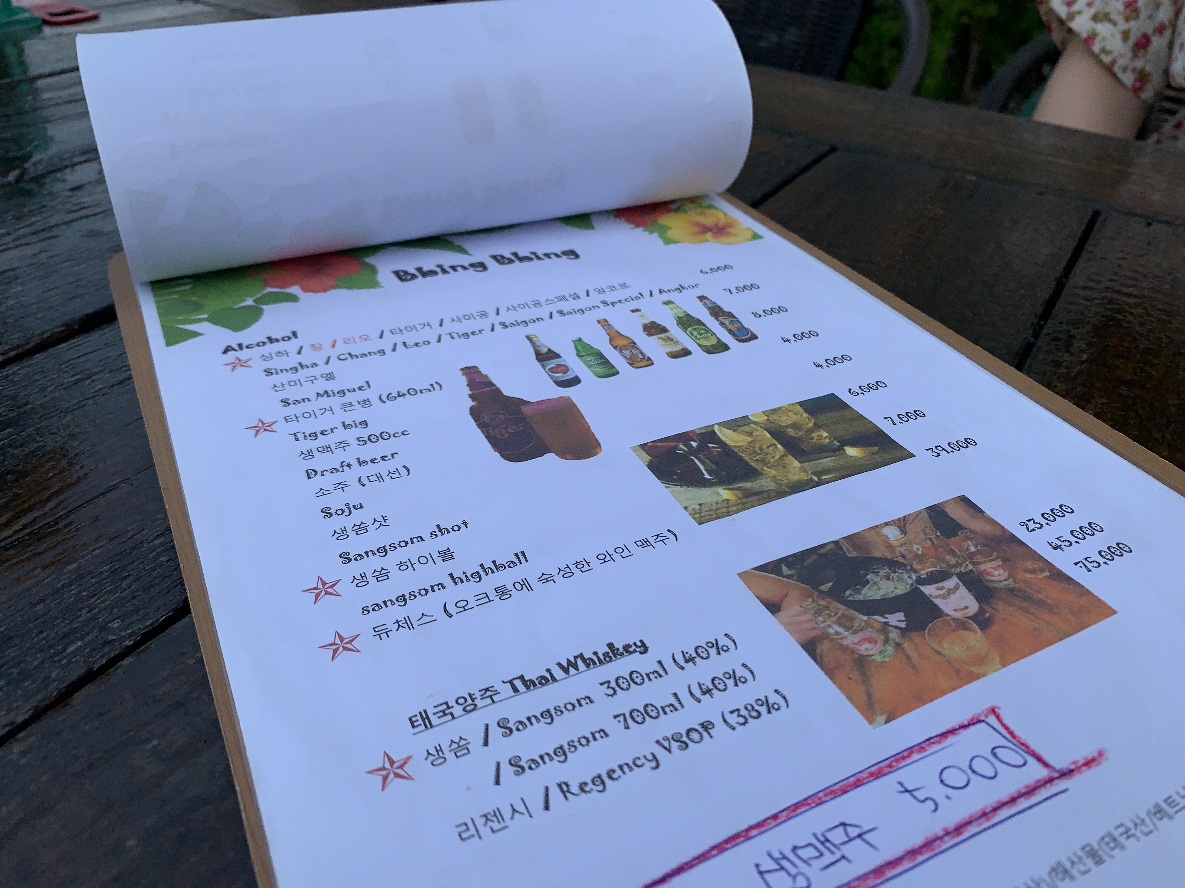 동남아에서 많이 마시는 타이거 맥주를 한병 시켰다.