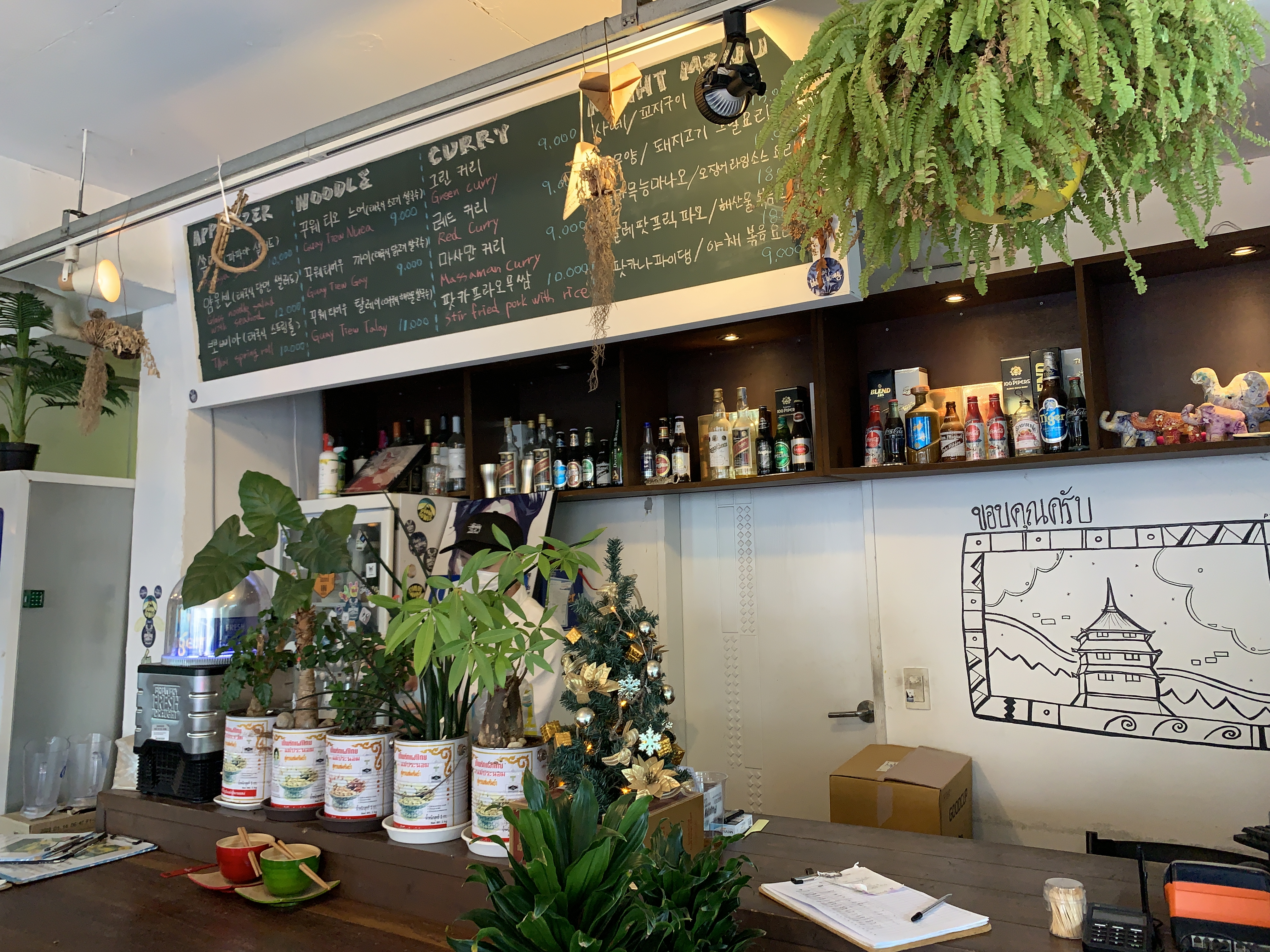가건물 형태의 건물이라 겉에서는 좀 없어보이기는 하는데, 안으로 들어오니 태국의 그 분위기를 잘 살려둔 것 같다.