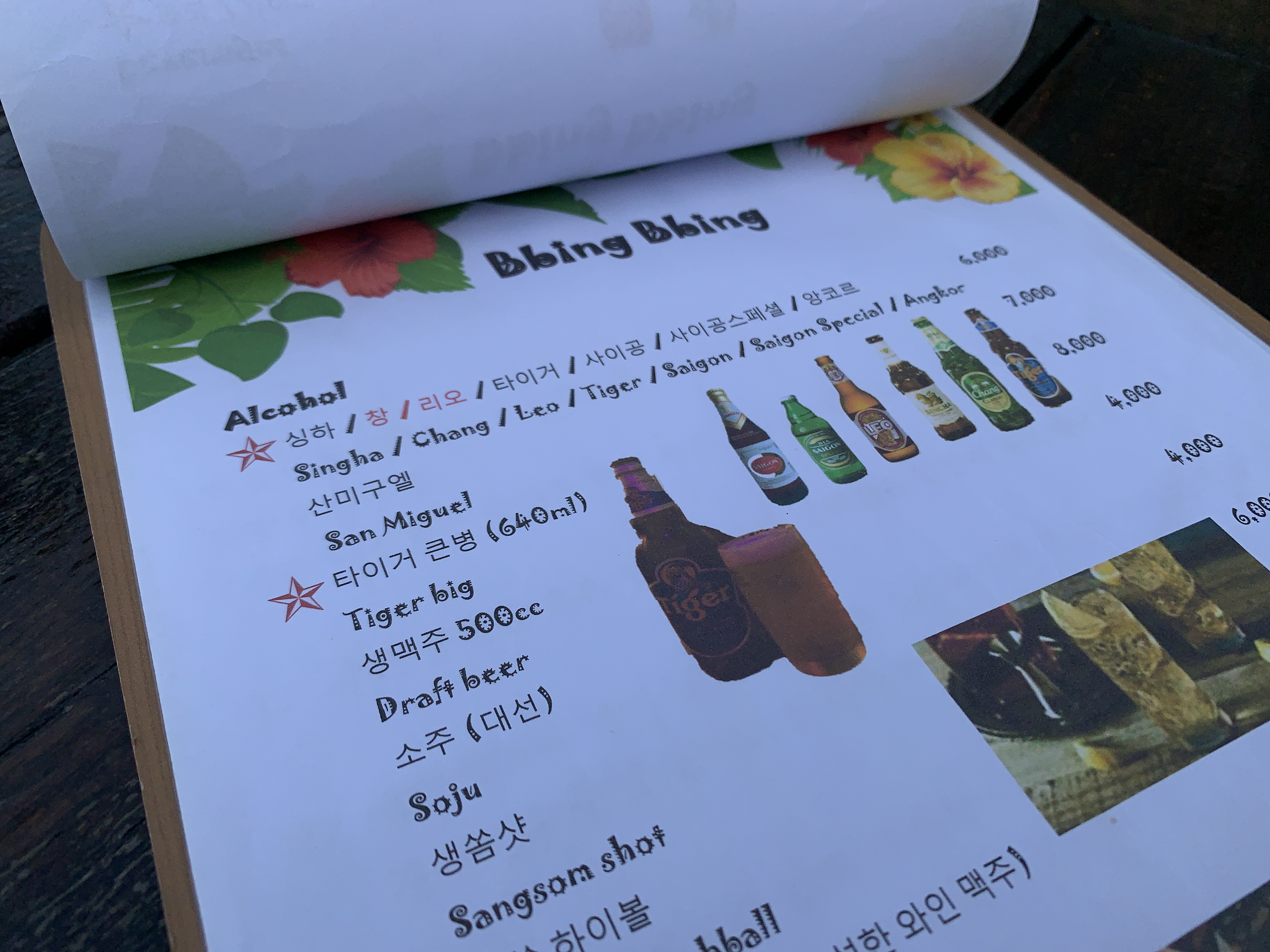 동남아에서 많이 마시는 타이거 맥주를 한병 시켰다.