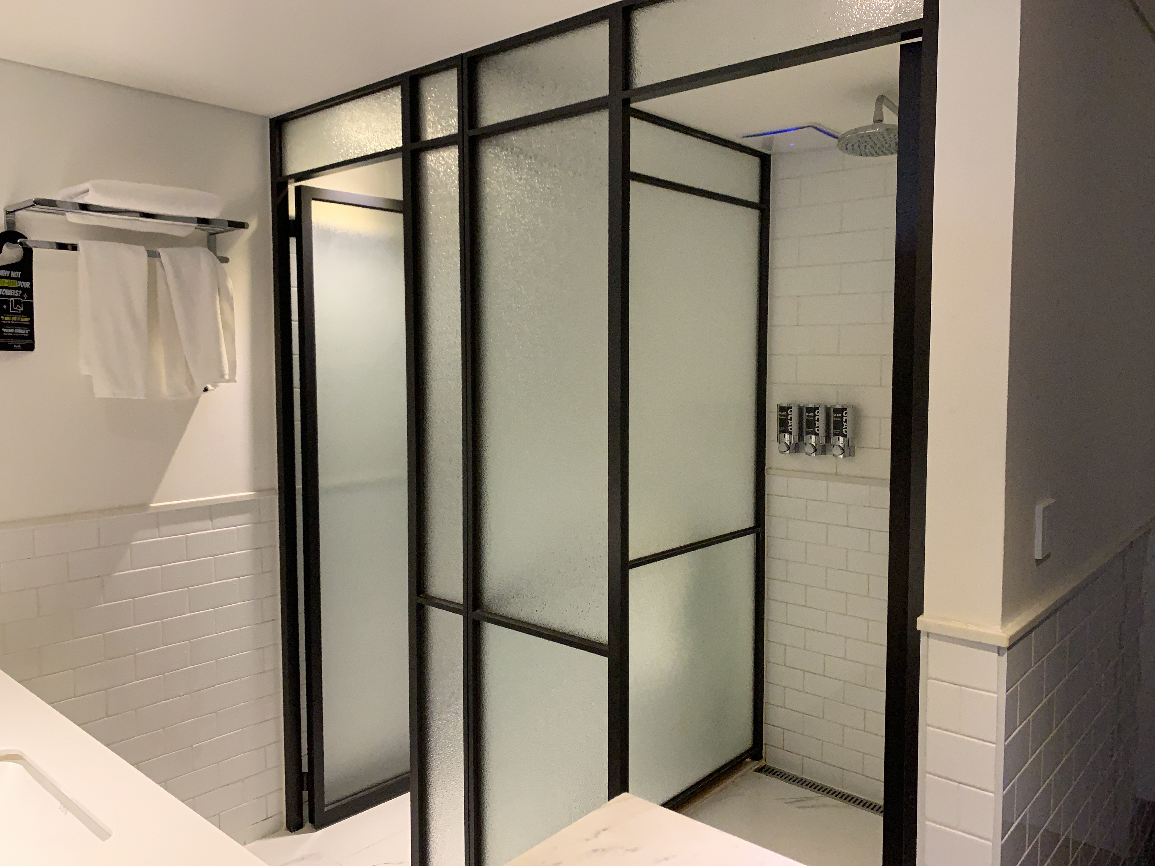 이런 식으로 건식 세면대가 따로 나와 있고, 샤워실이랑 화장실 변기가 또 분리가 되어 있다.