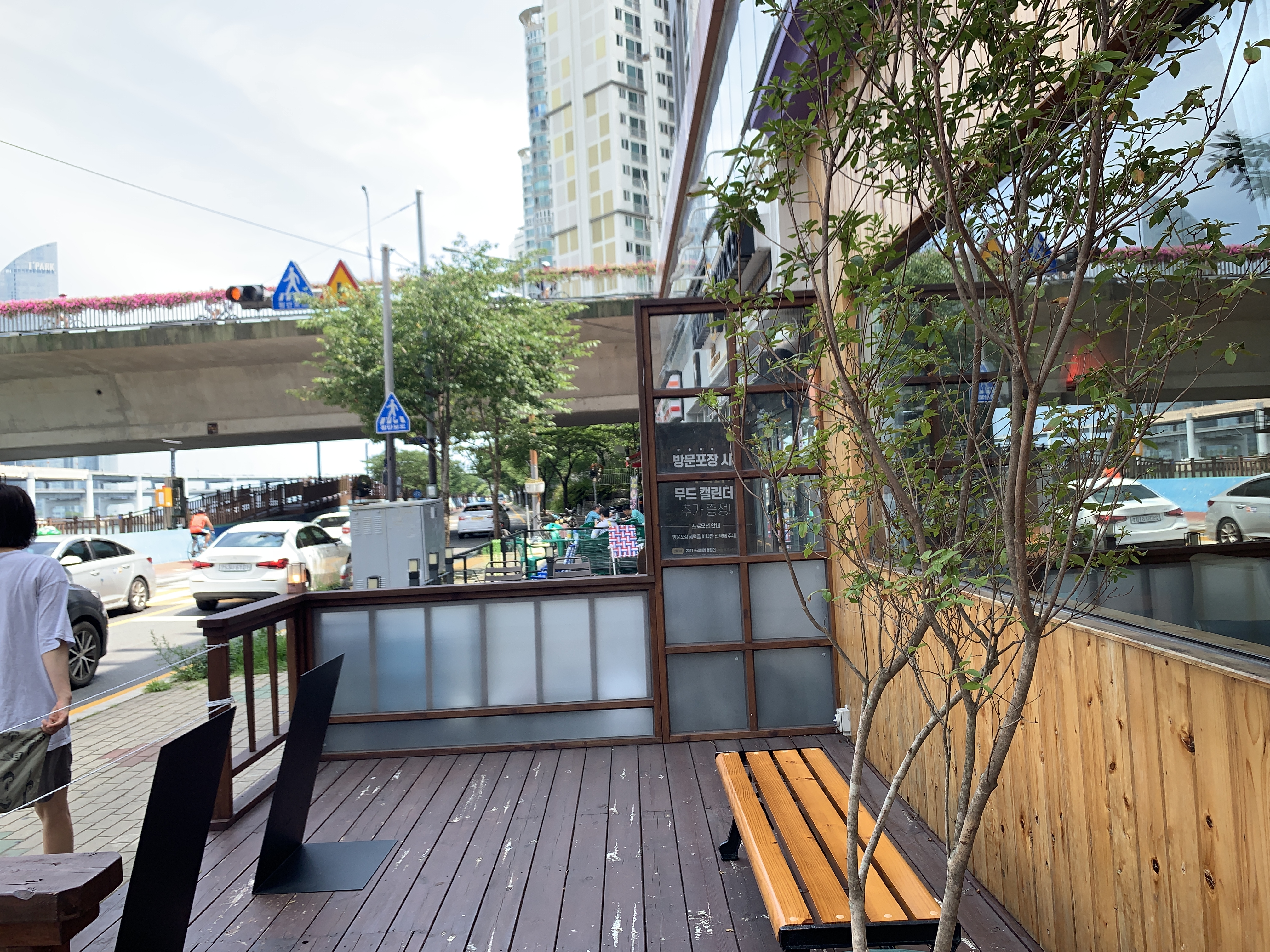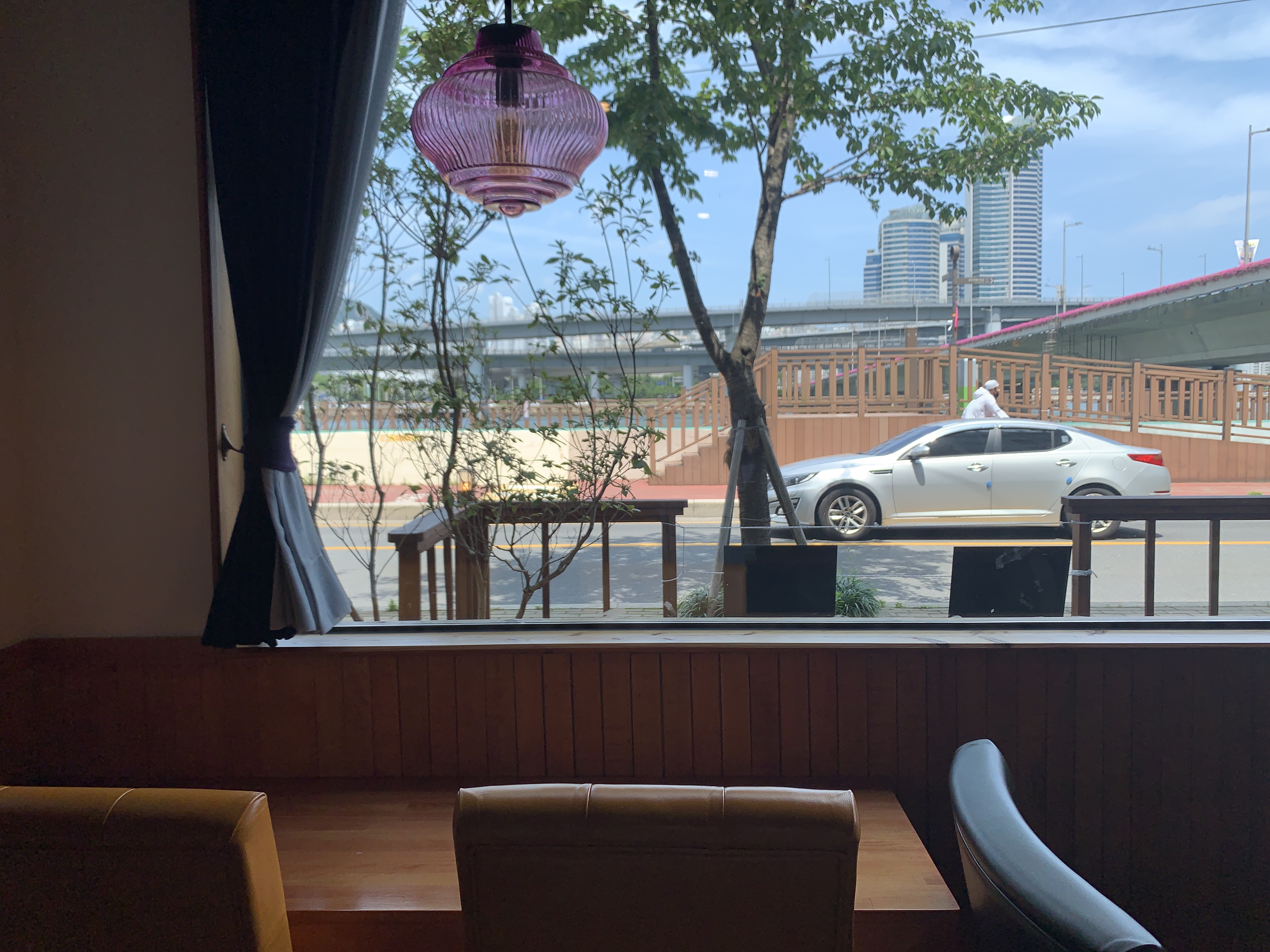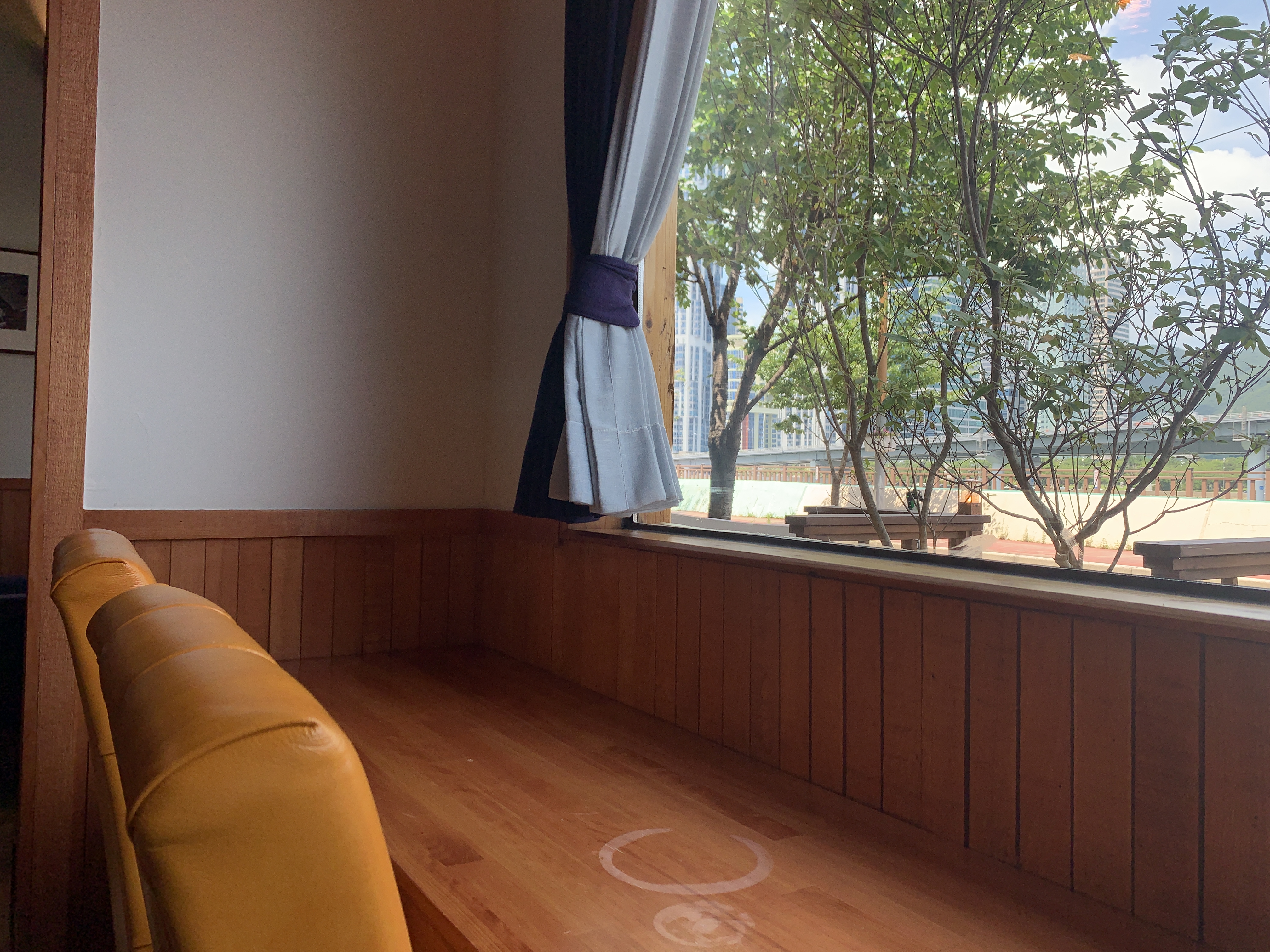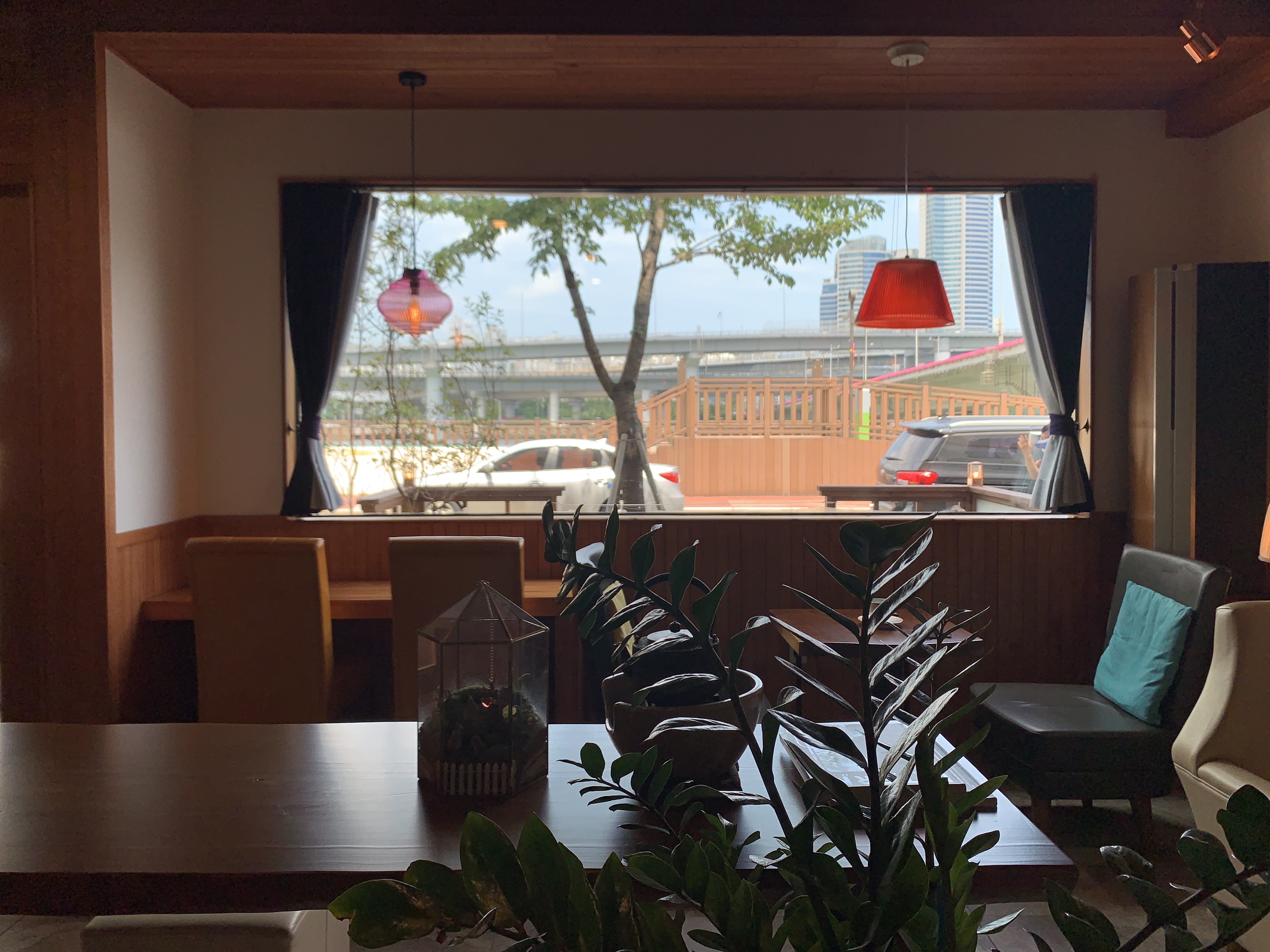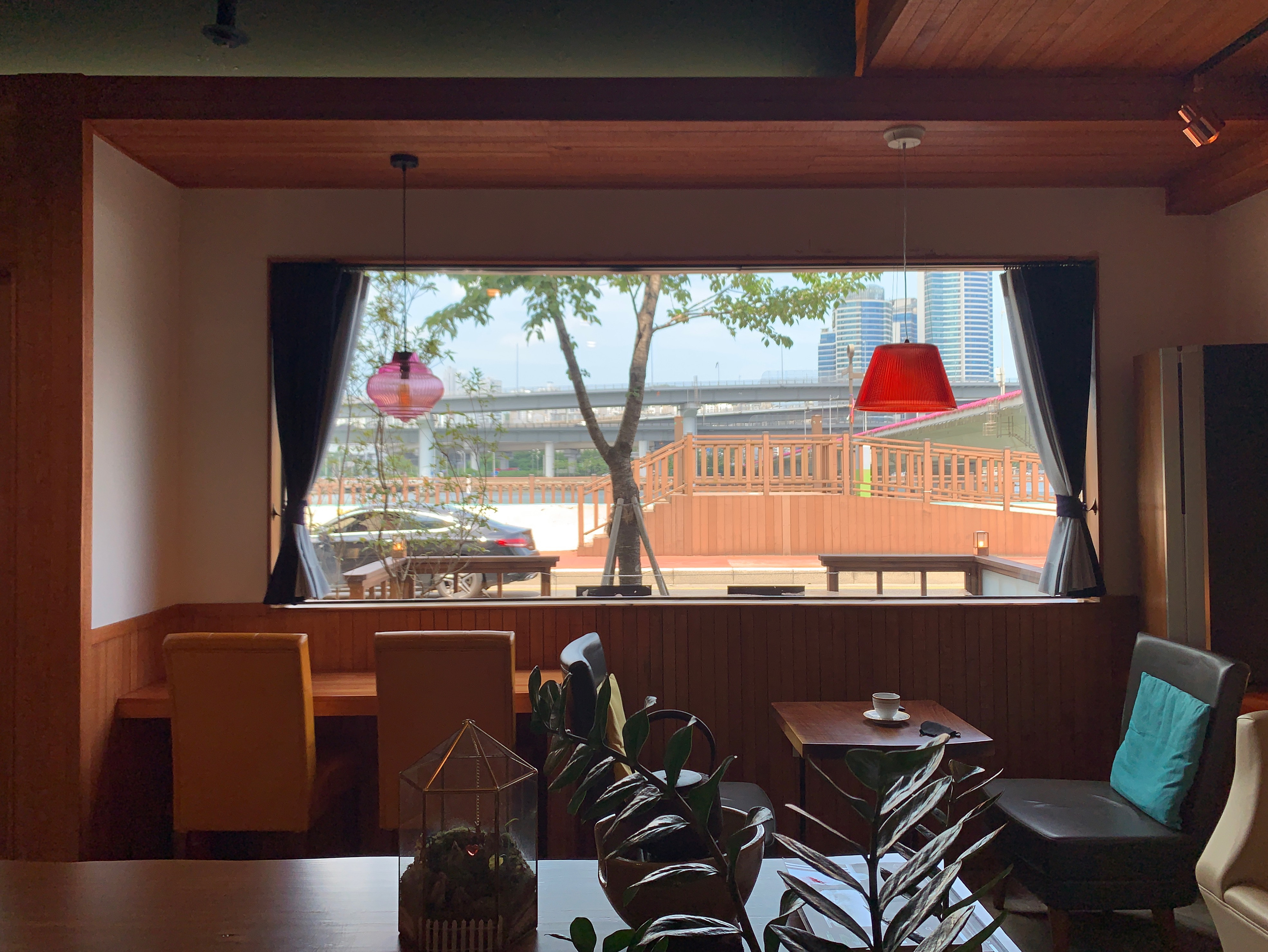 바깥뷰는 수영강뷰이기는 한데, 사실 카페 자체가 1층이고, 바로 앞에 도로가 있어서 뷰가 좋은 편은 아니다.