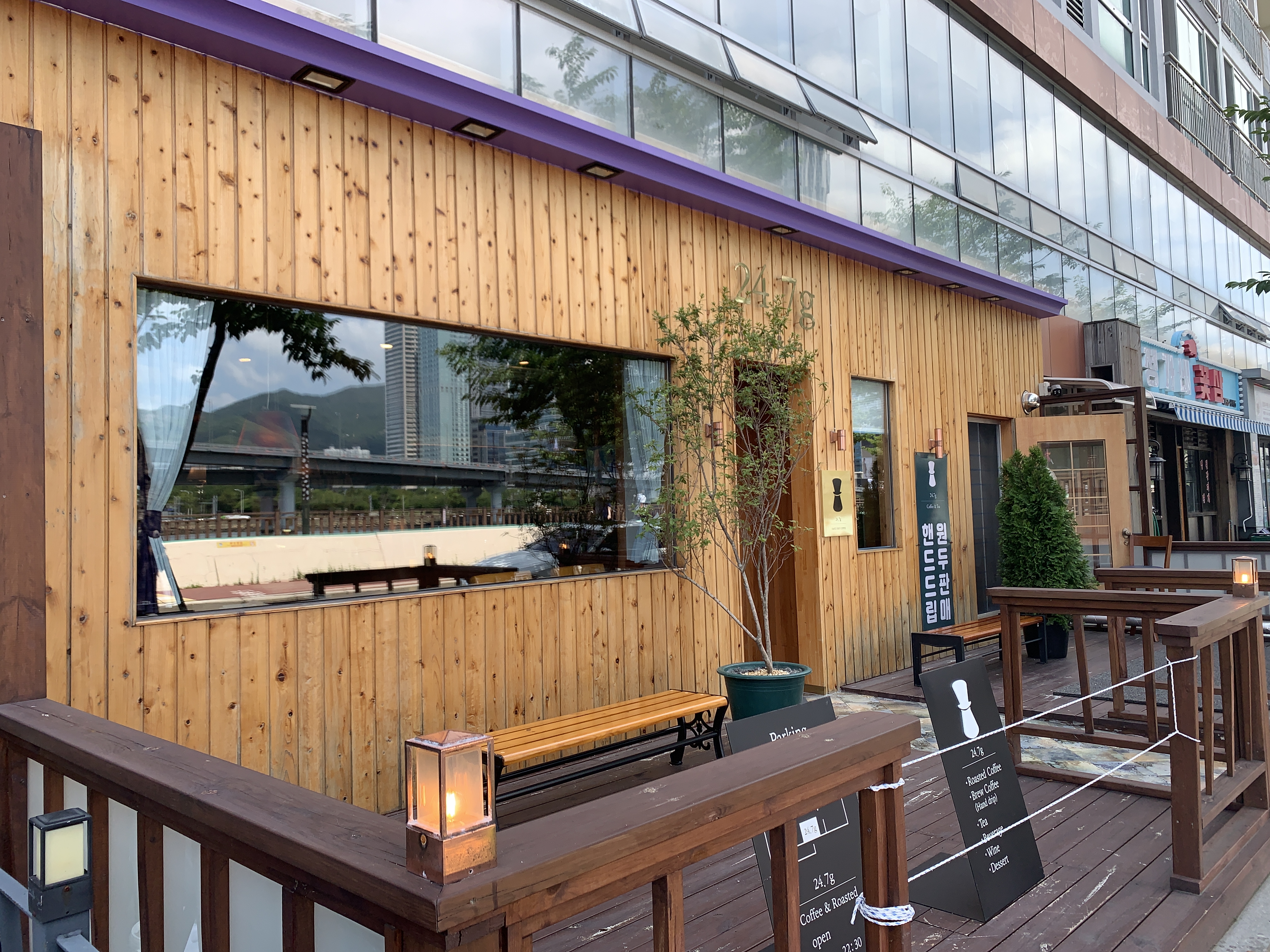 이번에 소개할 곳은 광안리 수영강변 쪽에 있는 24.7.g이라는 카페이다.