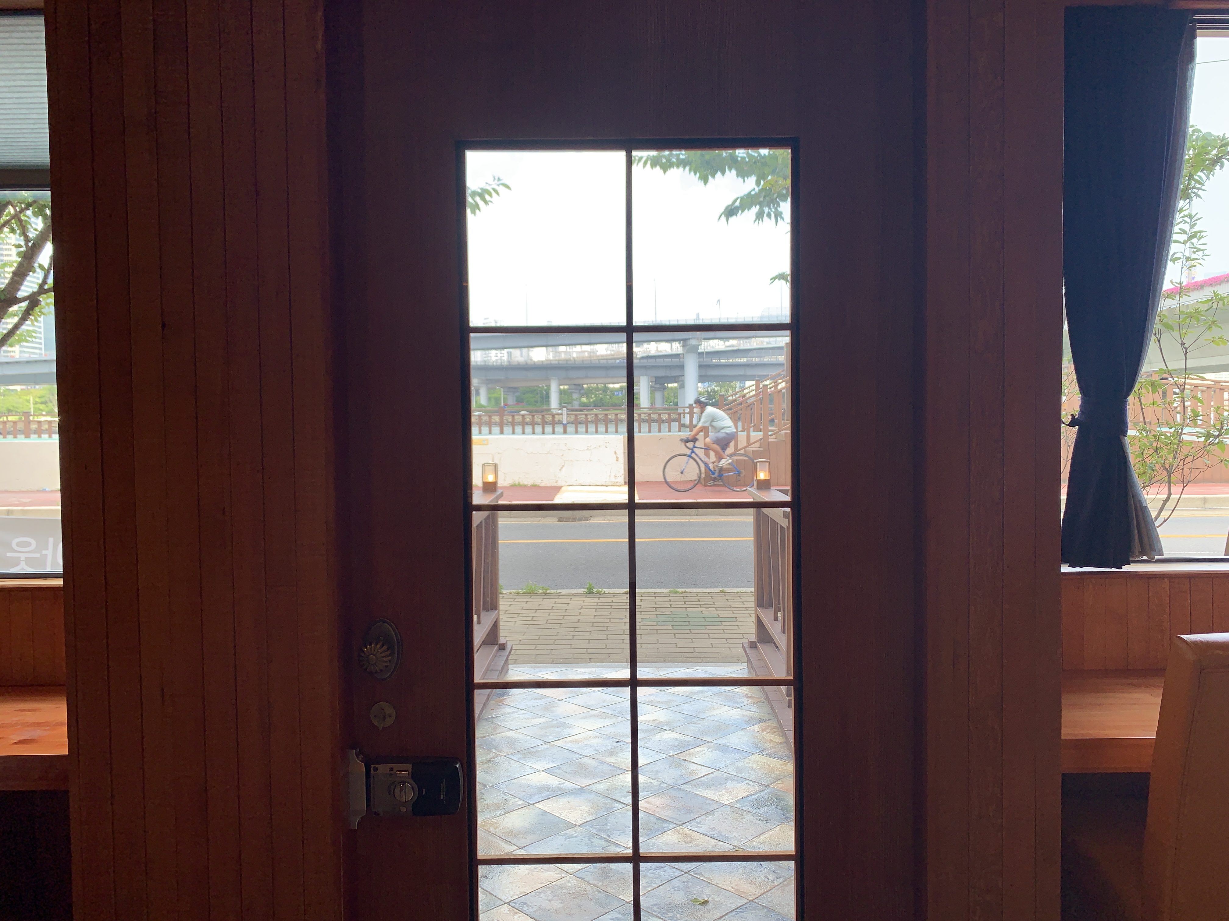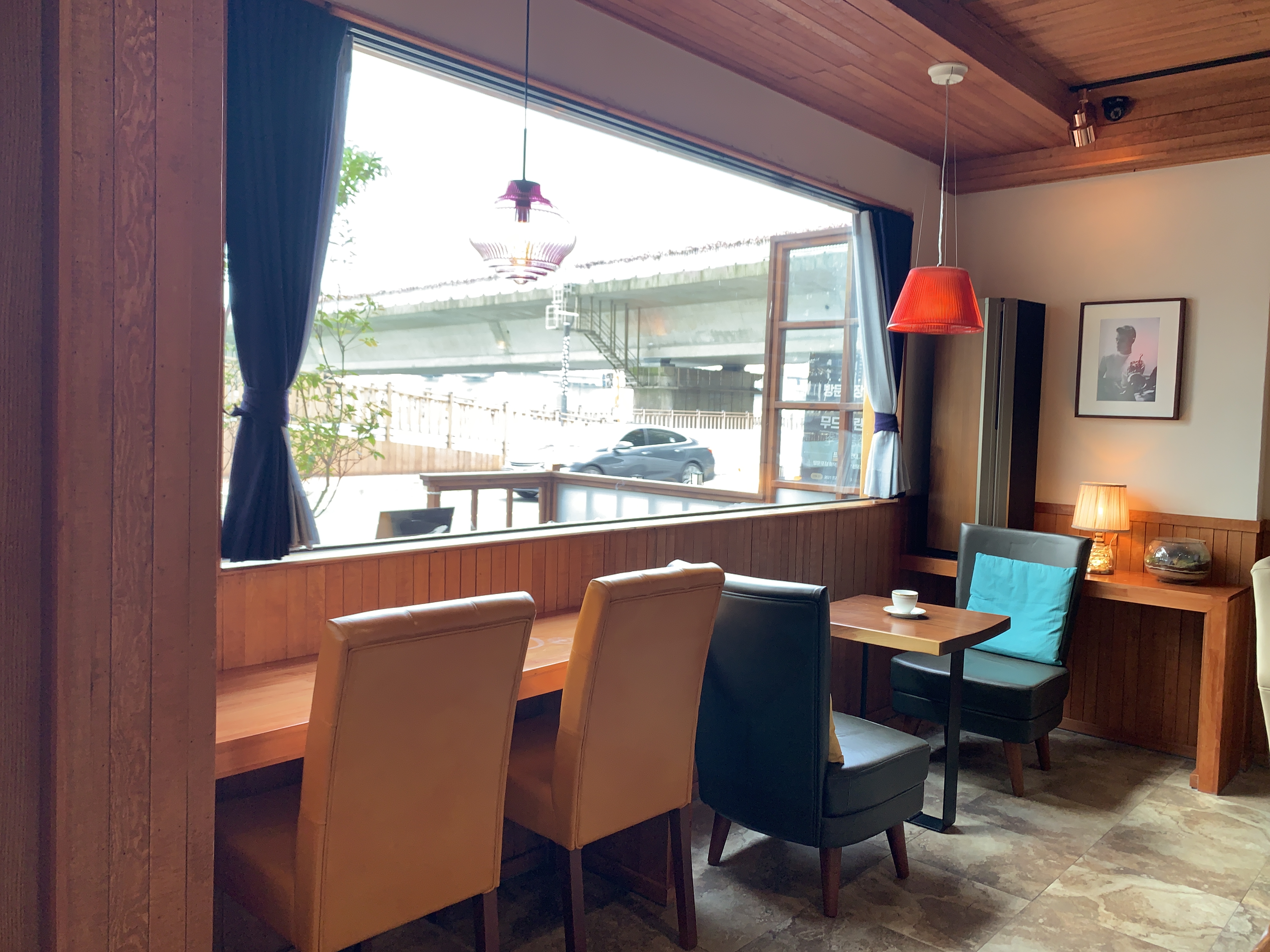 바깥뷰는 수영강뷰이기는 한데, 사실 카페 자체가 1층이고, 바로 앞에 도로가 있어서 뷰가 좋은 편은 아니다.
