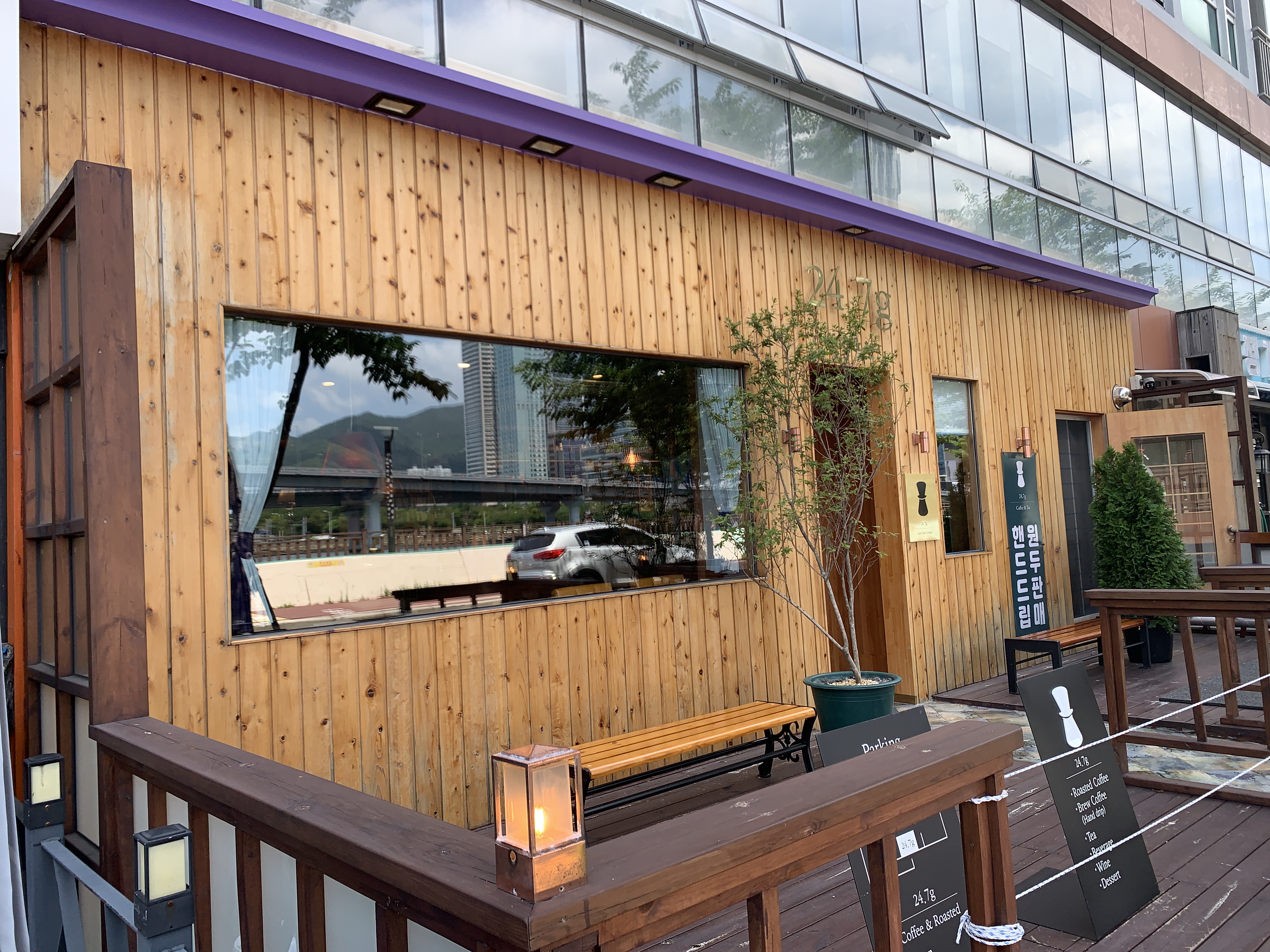 이번에 소개할 곳은 광안리 수영강변 쪽에 있는 24.7.g이라는 카페이다.