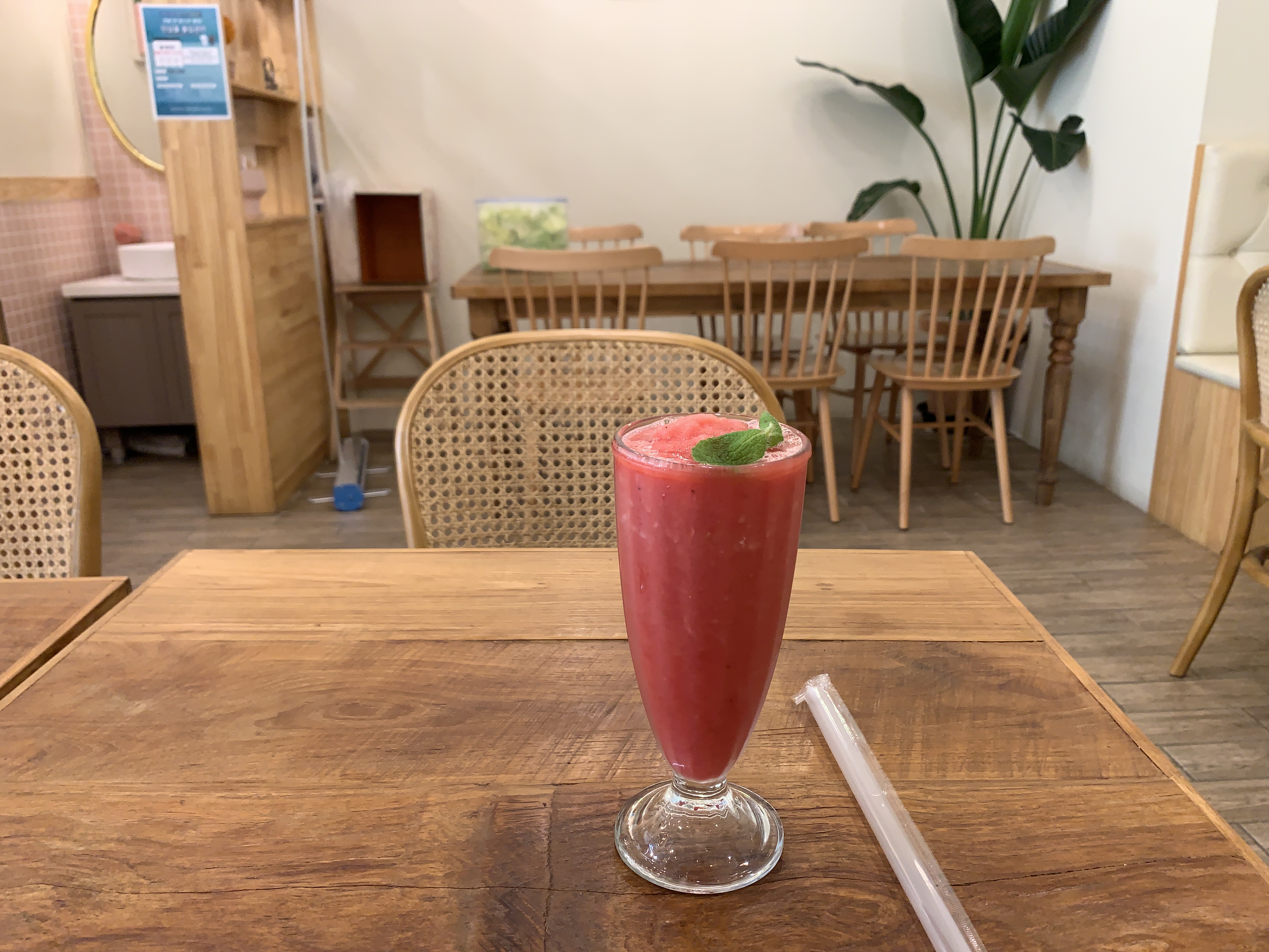 날씨가 너무 더워서 그냥 시원하게 수박 스무디를 시켰다.