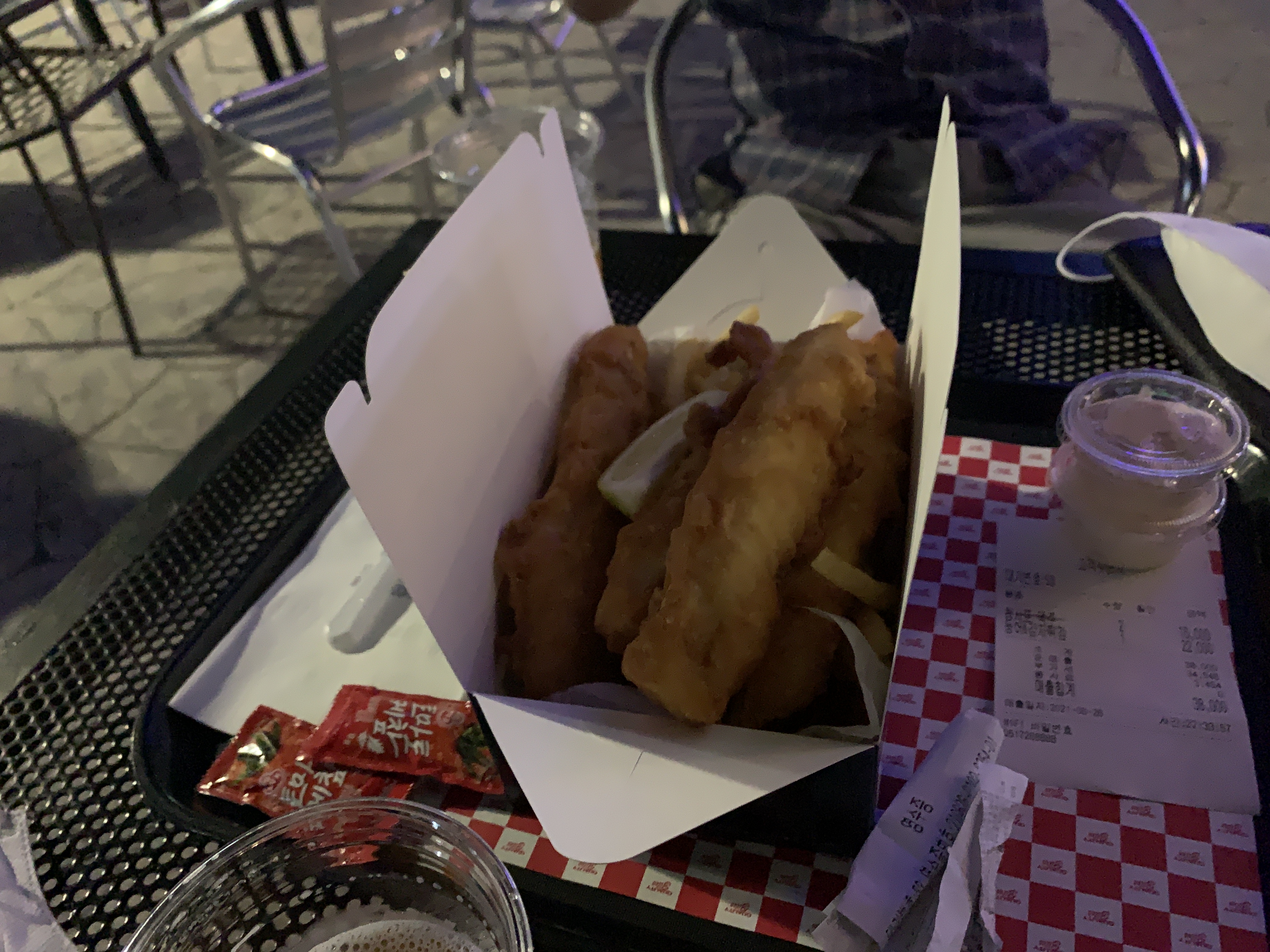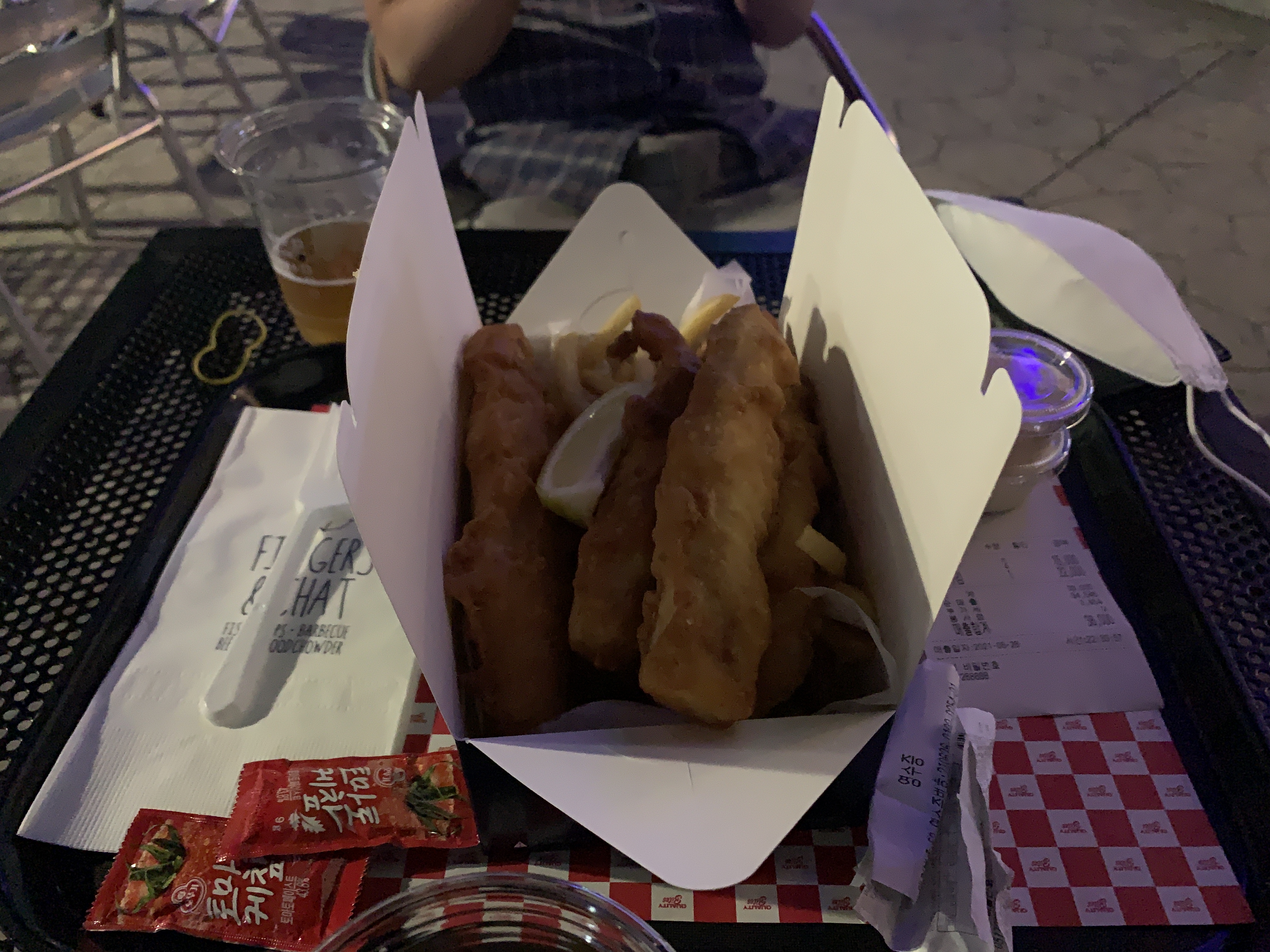 피쉬앤칩스는 가성비는 좀 떨어진다. 두명이서 안주 하나, 맥주 두잔 시켰는데 38,000원. 좀 비싸긴 하다.