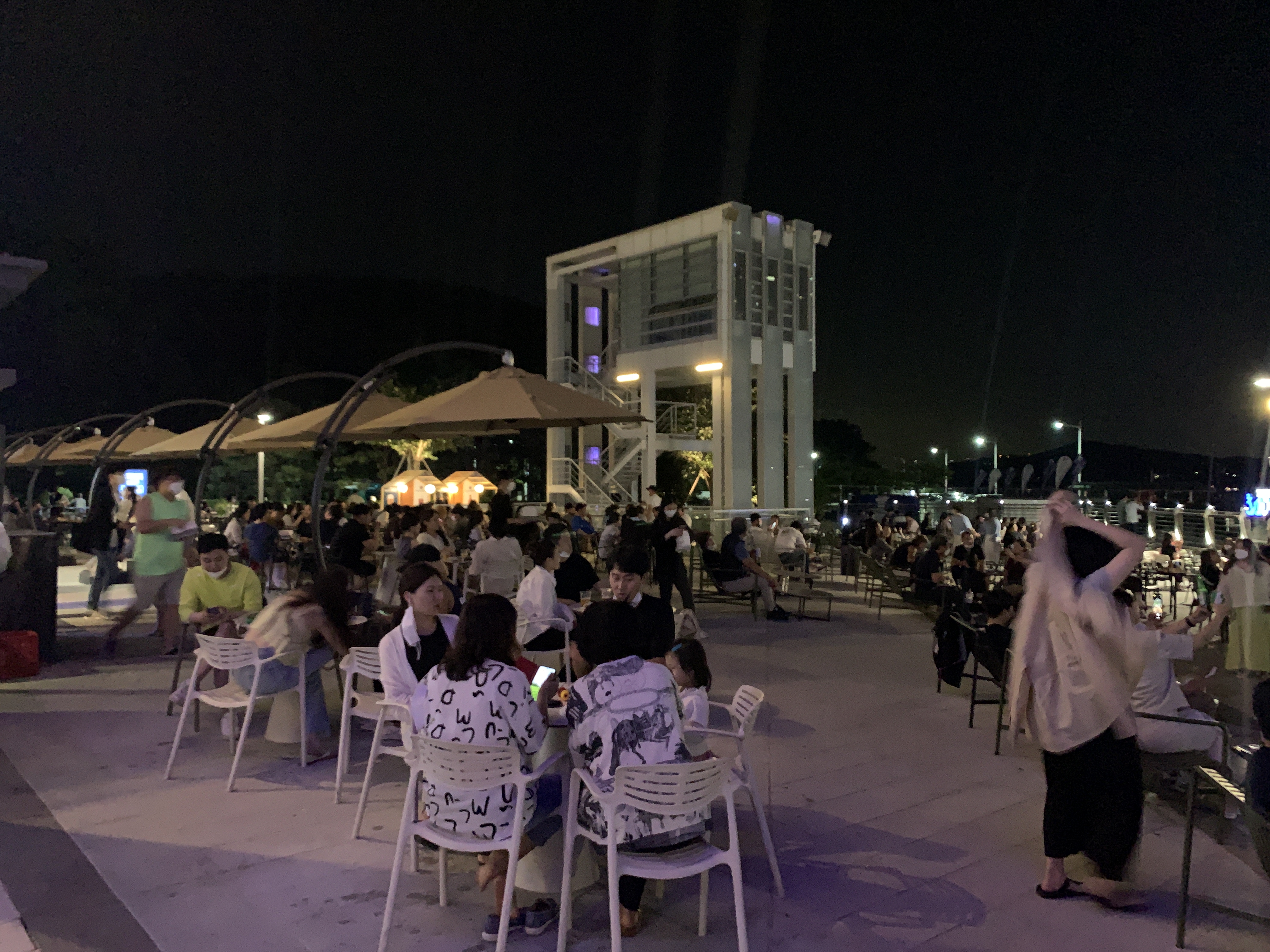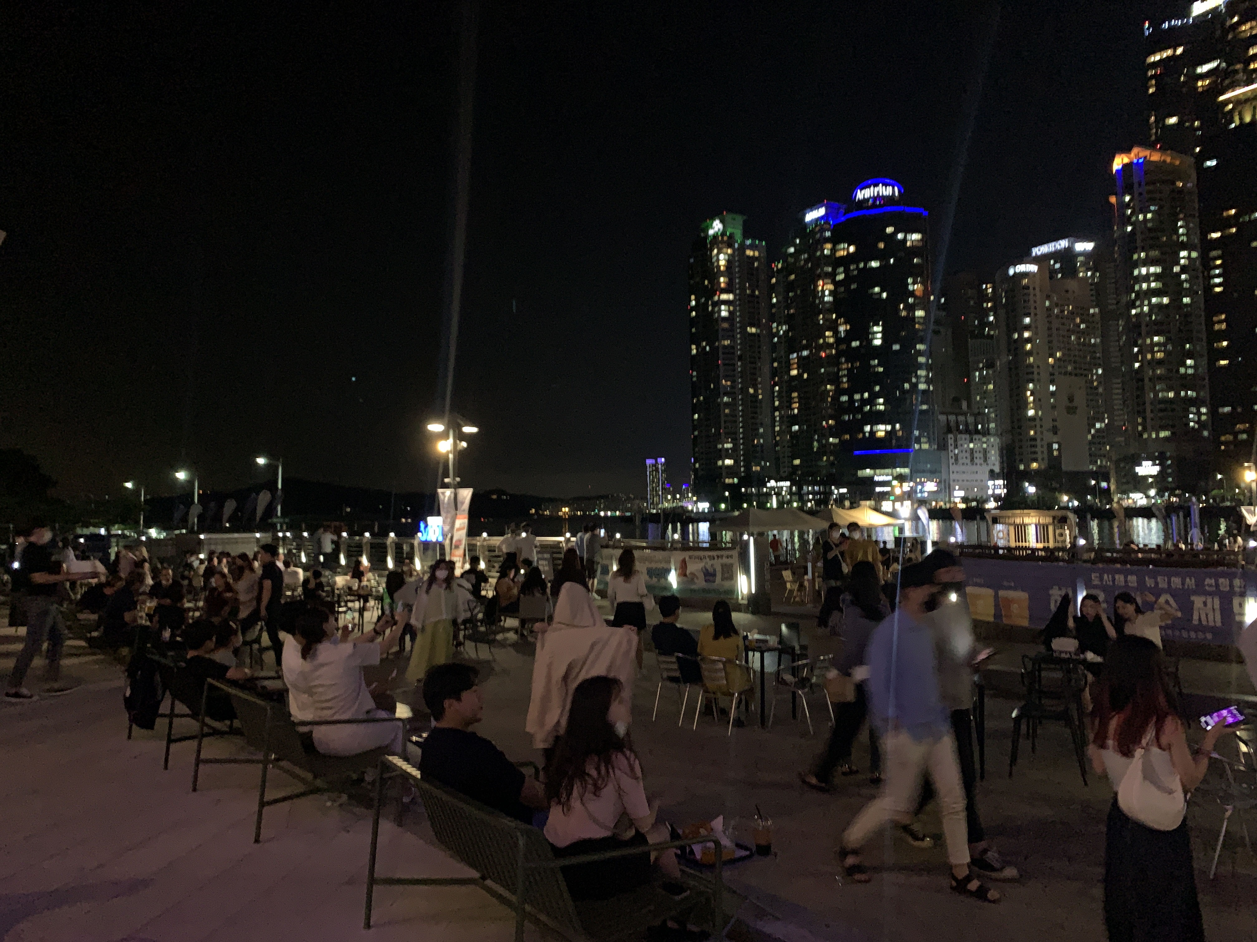 더베이에는 저렇게 야외에 테이블들이 있어서 밖에서 야경 보면서 술을 마실 수 있는데, 진짜 여행의 마무리 느낌으로 한잔 하면 운치가 ... 미친다.