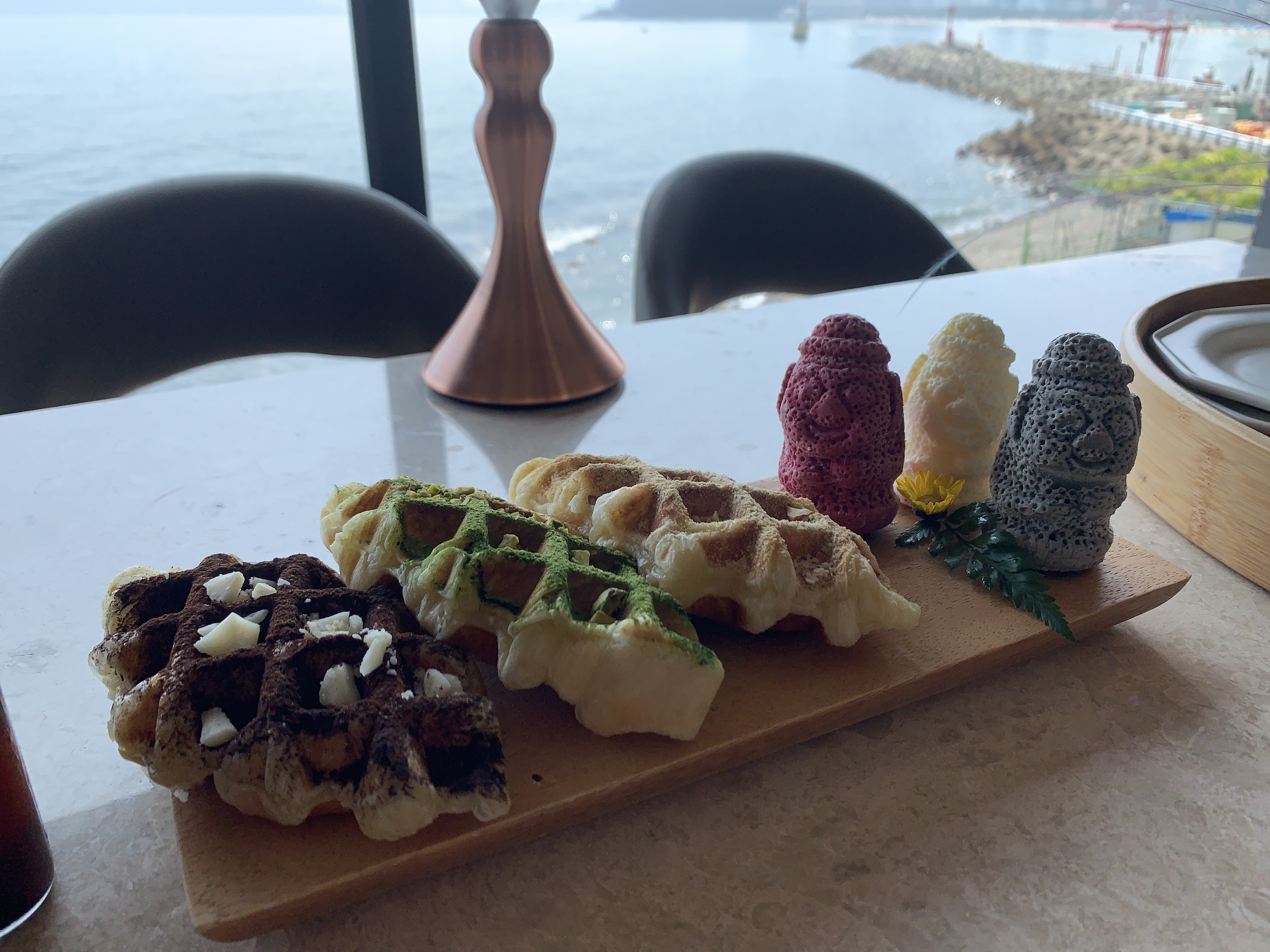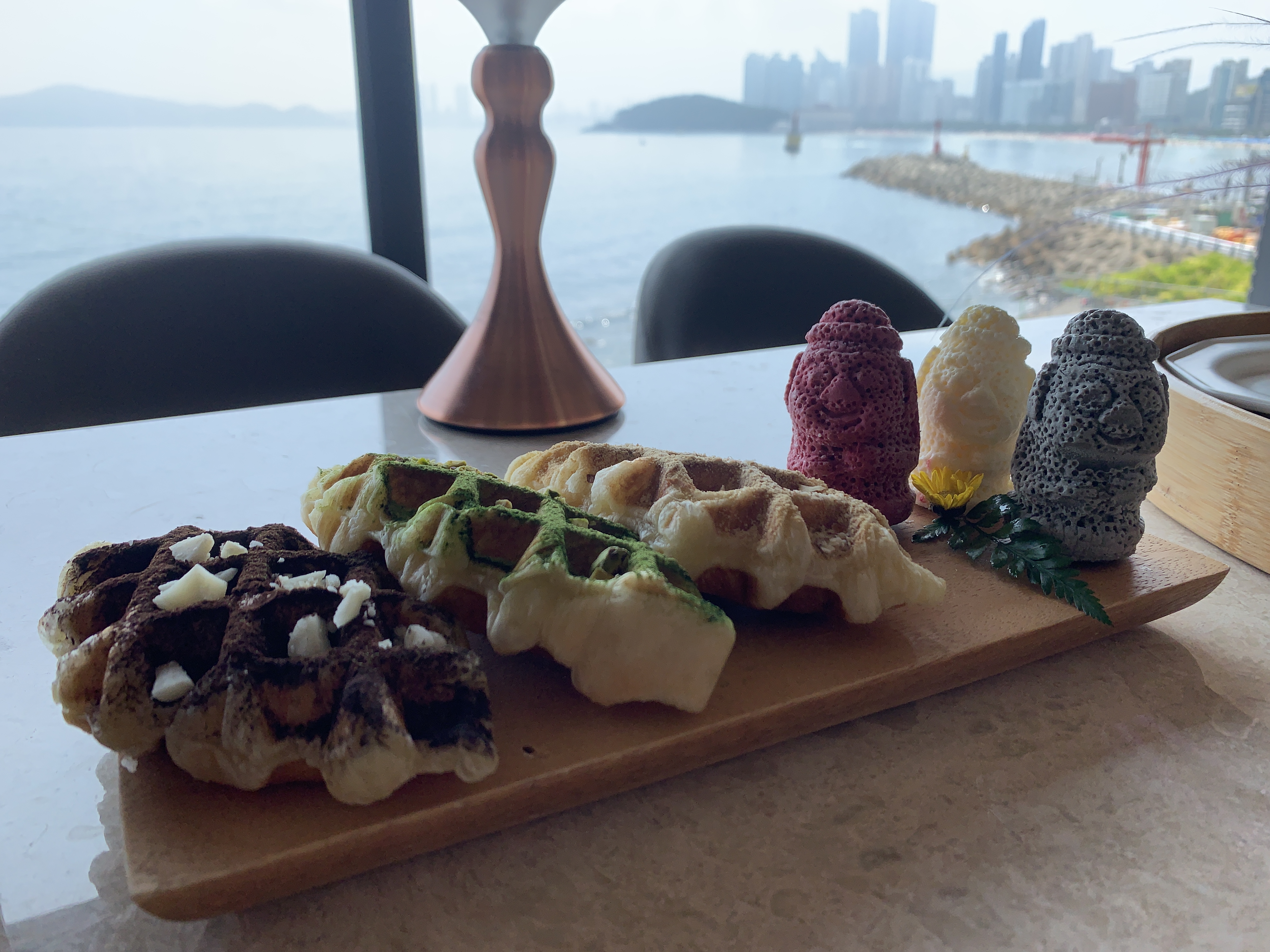 크로플도 맛이 특이하다. 저기 같이 나오는 돌하르방이 장식이 아니라 무슨 소스 같은 거다.