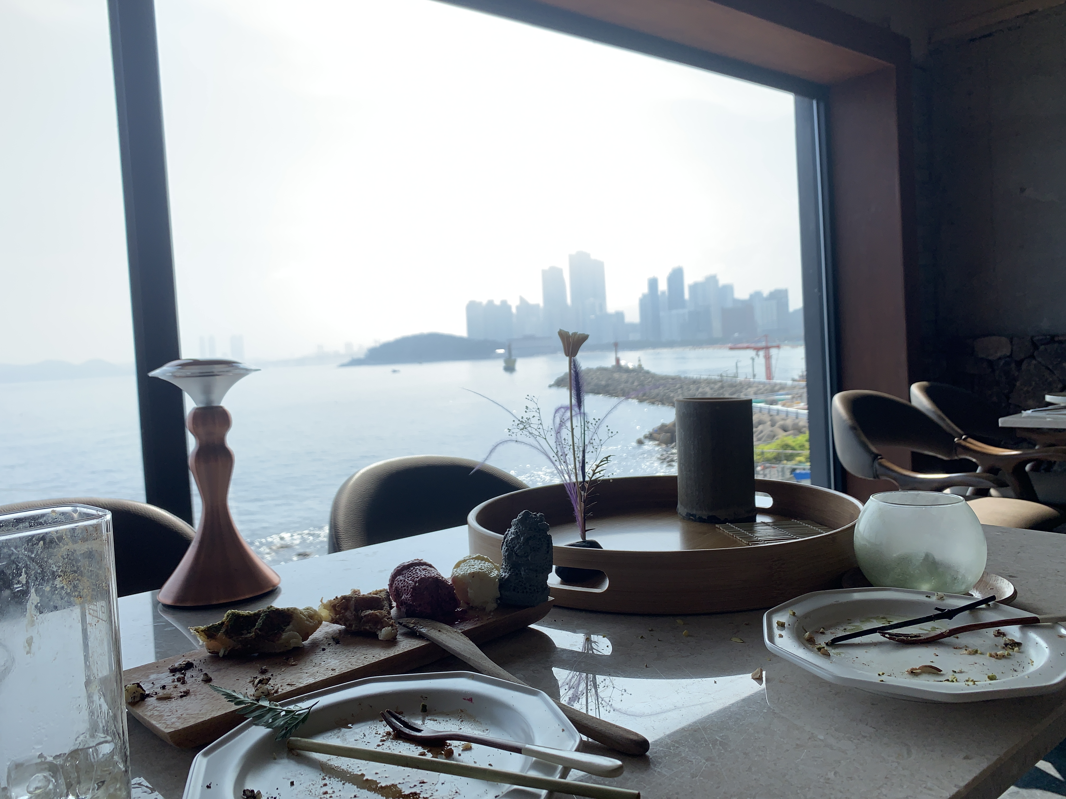 이런 식으로 통유리 밖으로 해운대 앞바다가 펼쳐진다.