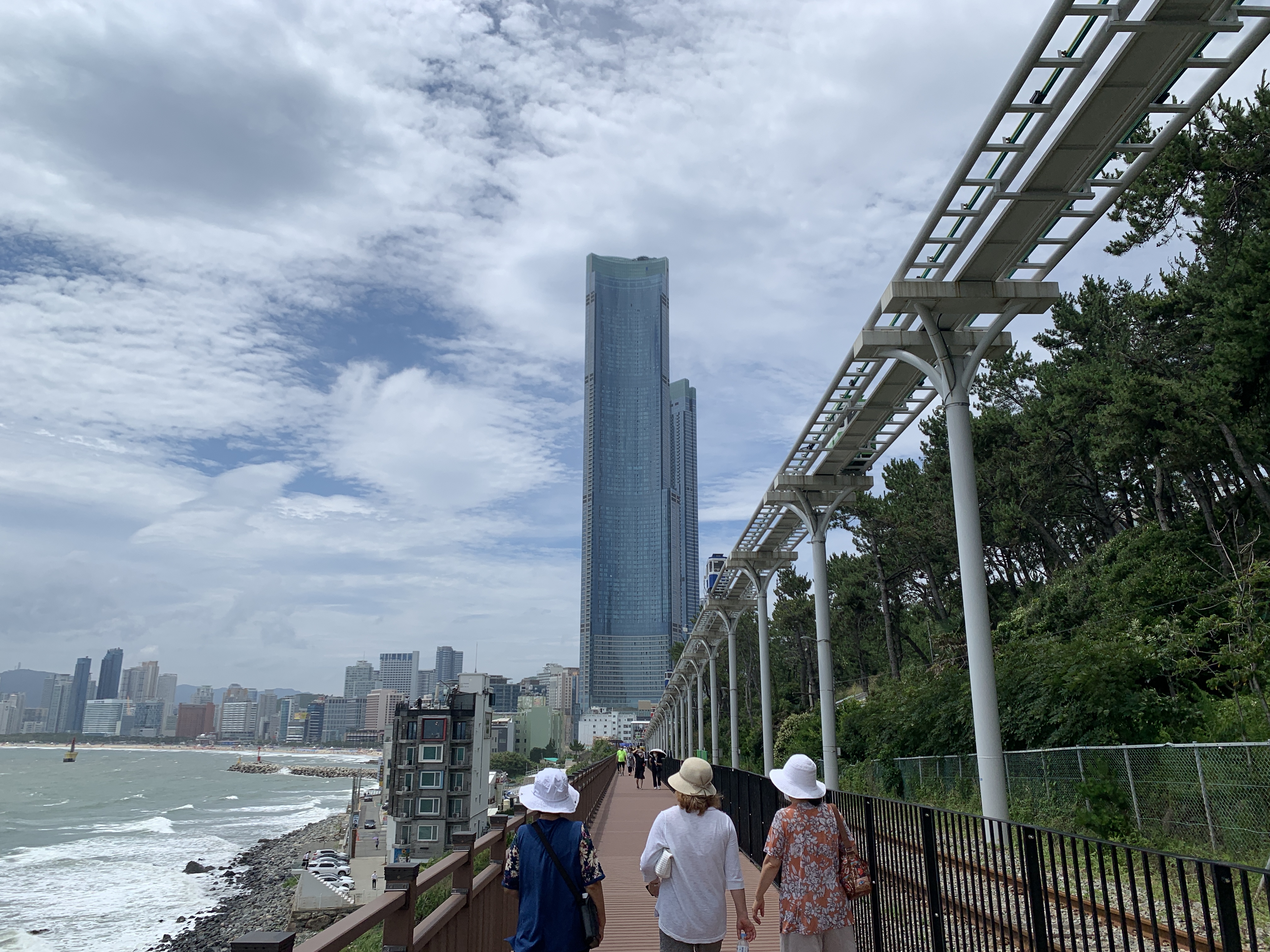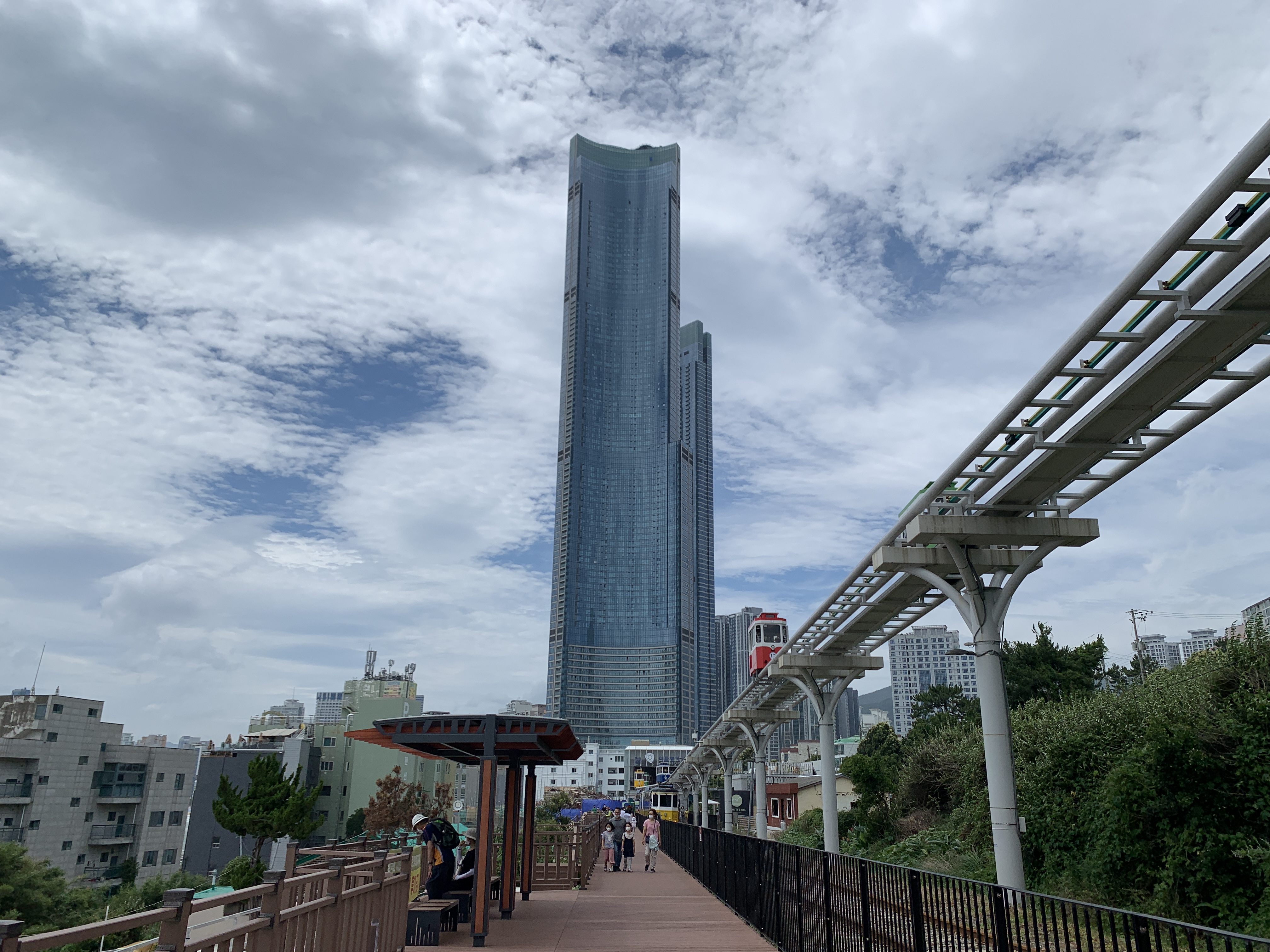딱 달맞이터널에서 내려서 해운대로 걸어가는 길인데, 앞에 엘시티가 한 눈에 딱 보이니까 웅장한 멋이 있다.