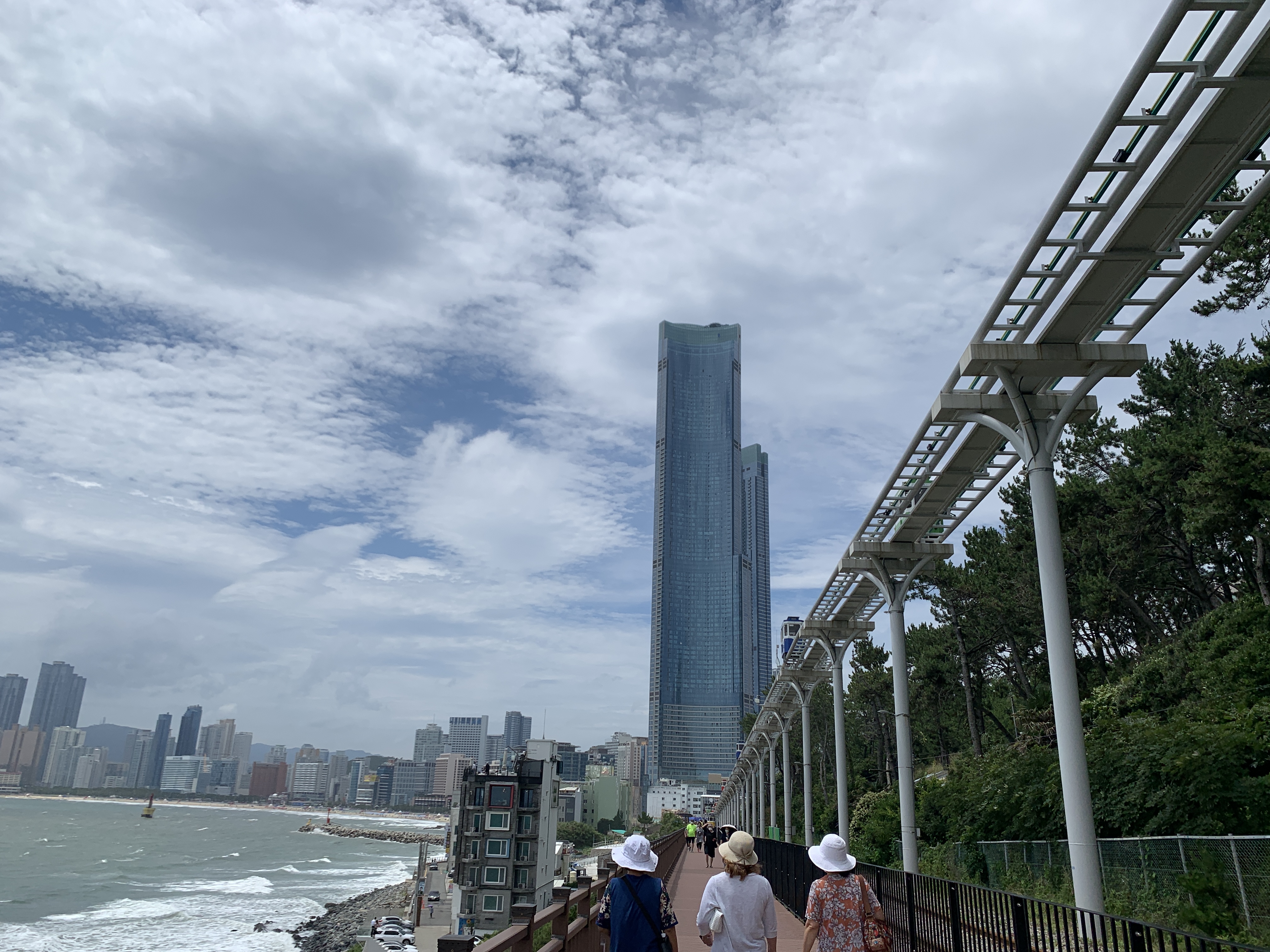 딱 달맞이터널에서 내려서 해운대로 걸어가는 길인데, 앞에 엘시티가 한 눈에 딱 보이니까 웅장한 멋이 있다.