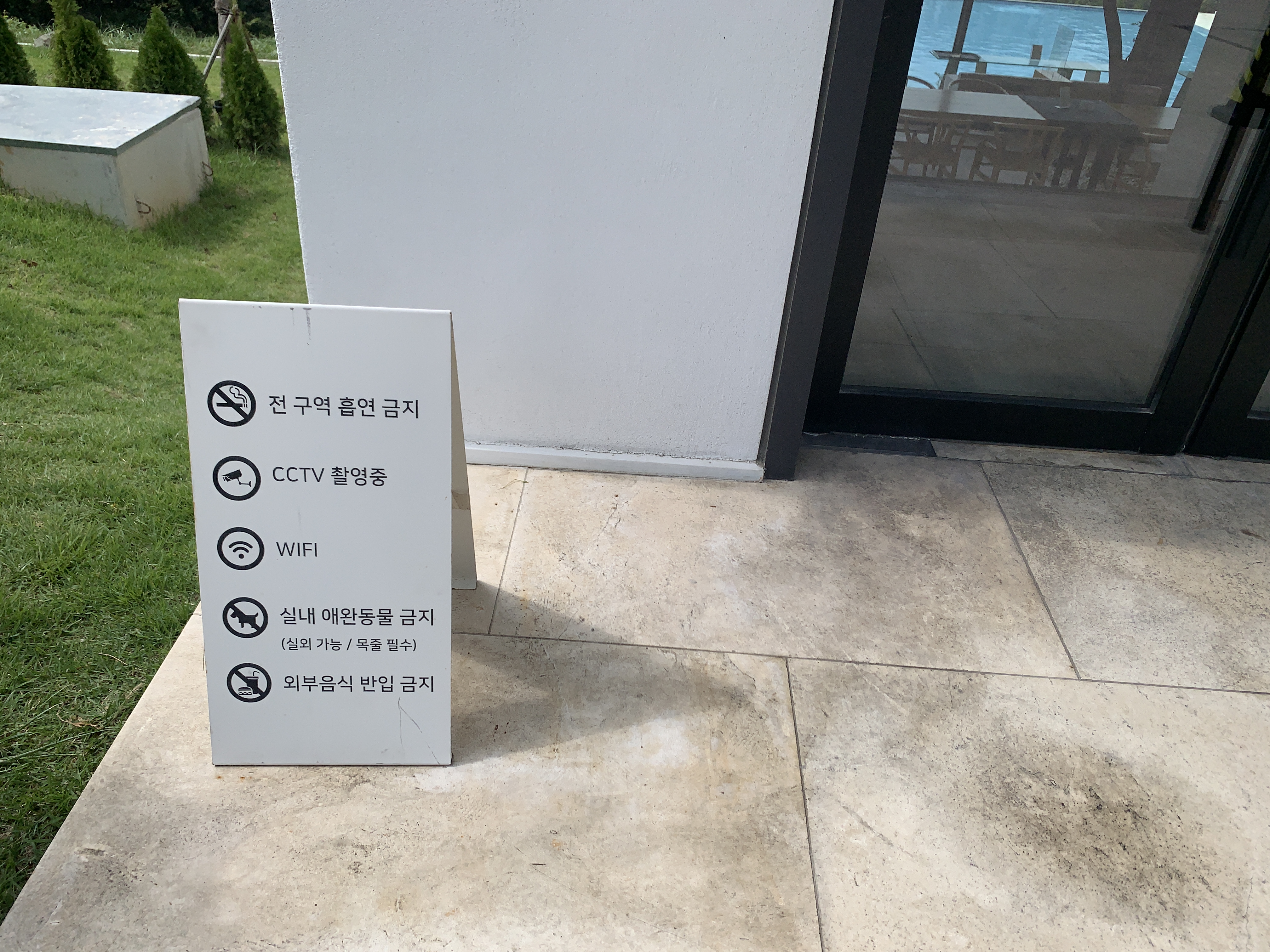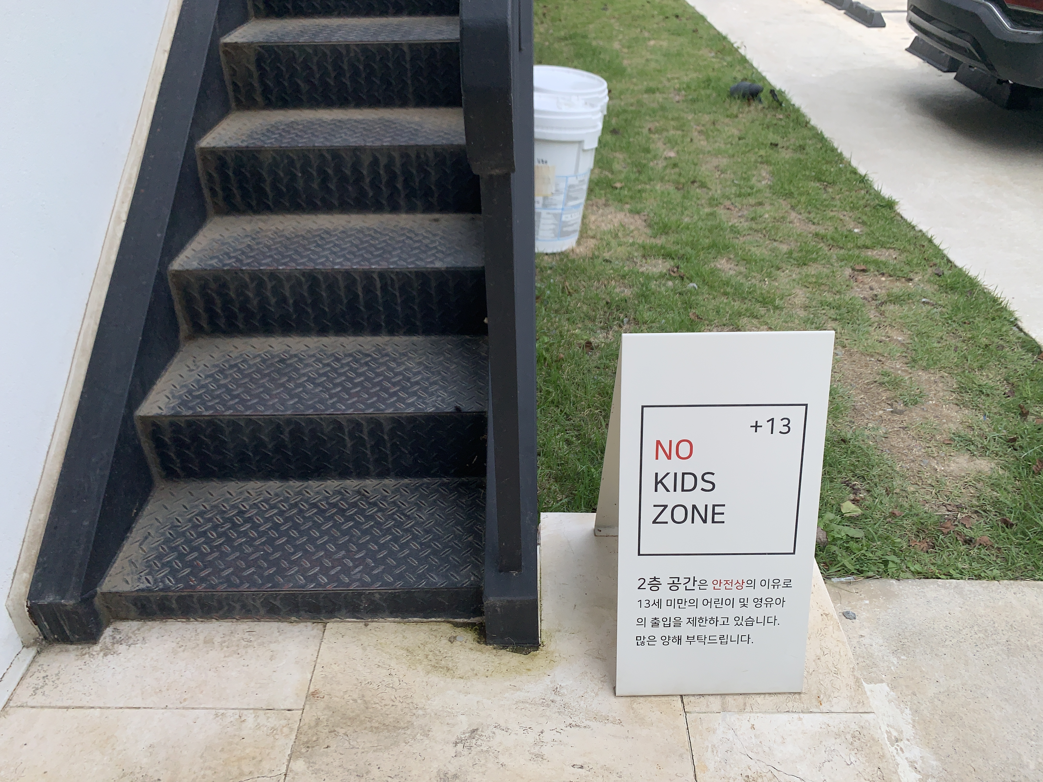 실내에 애완동물은 데리고 들어갈 수 없고, 2층에 있는 루프탑은 노키즈존으로 운영하고 있다.