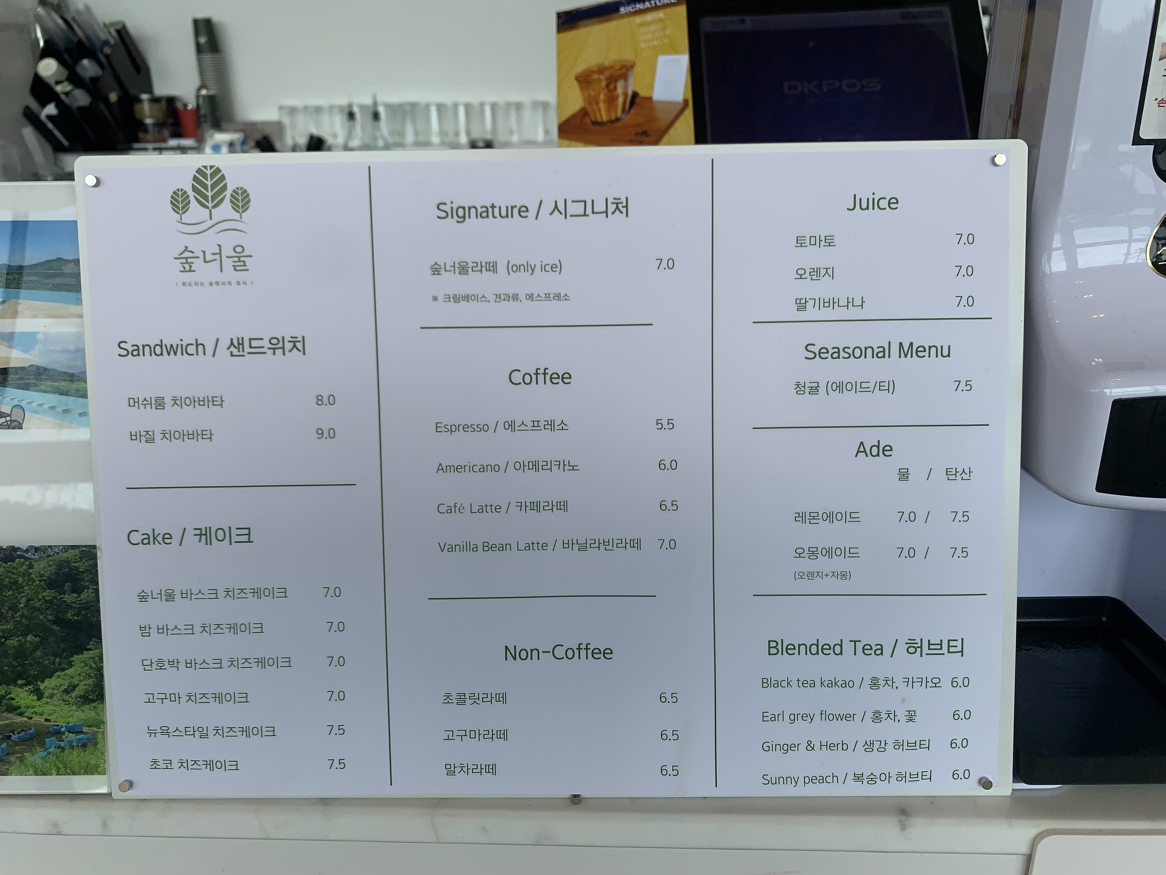 '숲너울 라떼'라는 커피 메뉴가 이 카페의 메인 시그니처여서 시켜봤다.