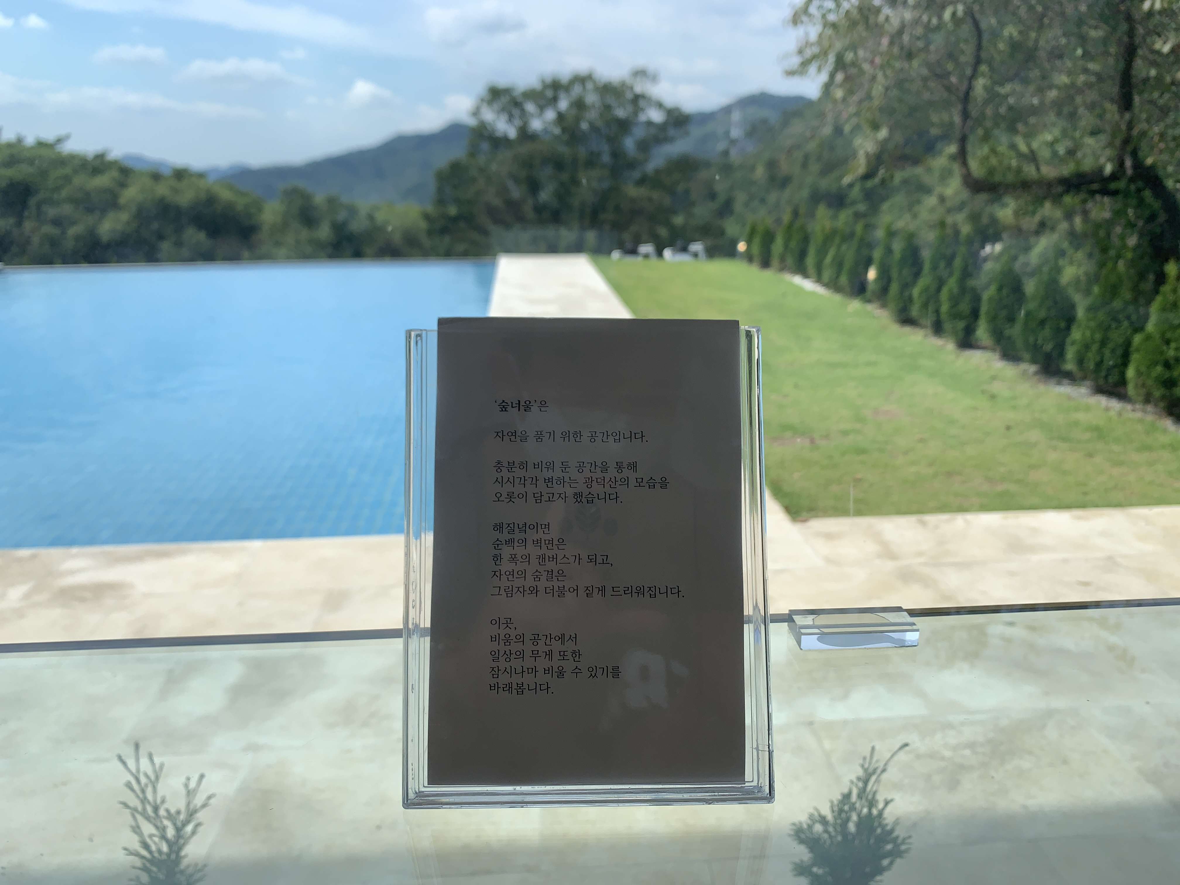 '이곳, 비움의 공간에서 일상의 무게 또한 잠시나마 비울 수 있기를 바라봅니다'라는 말이 무색하지 않게 이곳에 있는 동안에는 정말 여기서 힐링하는 느낌을 받을 수 있었다.