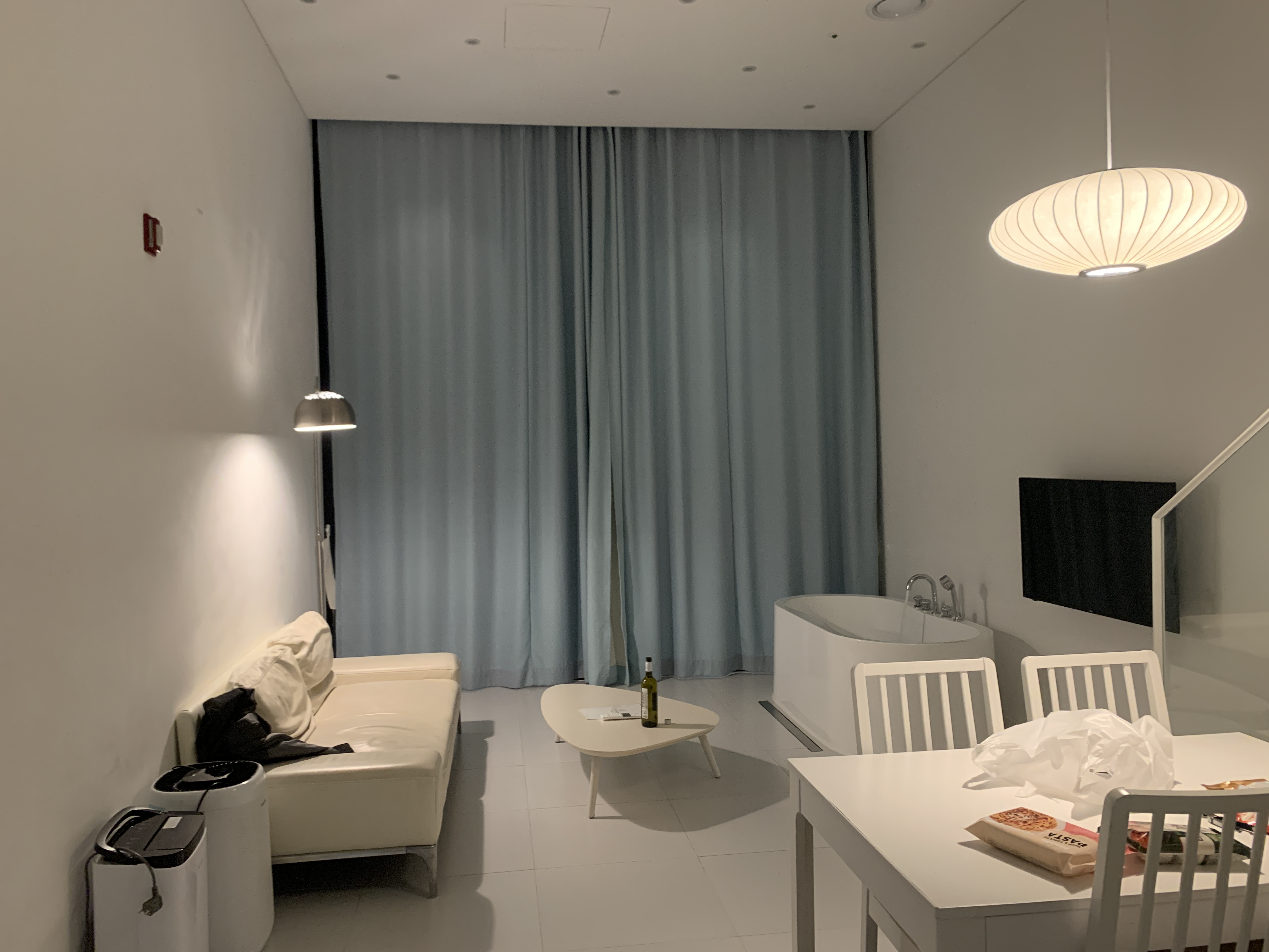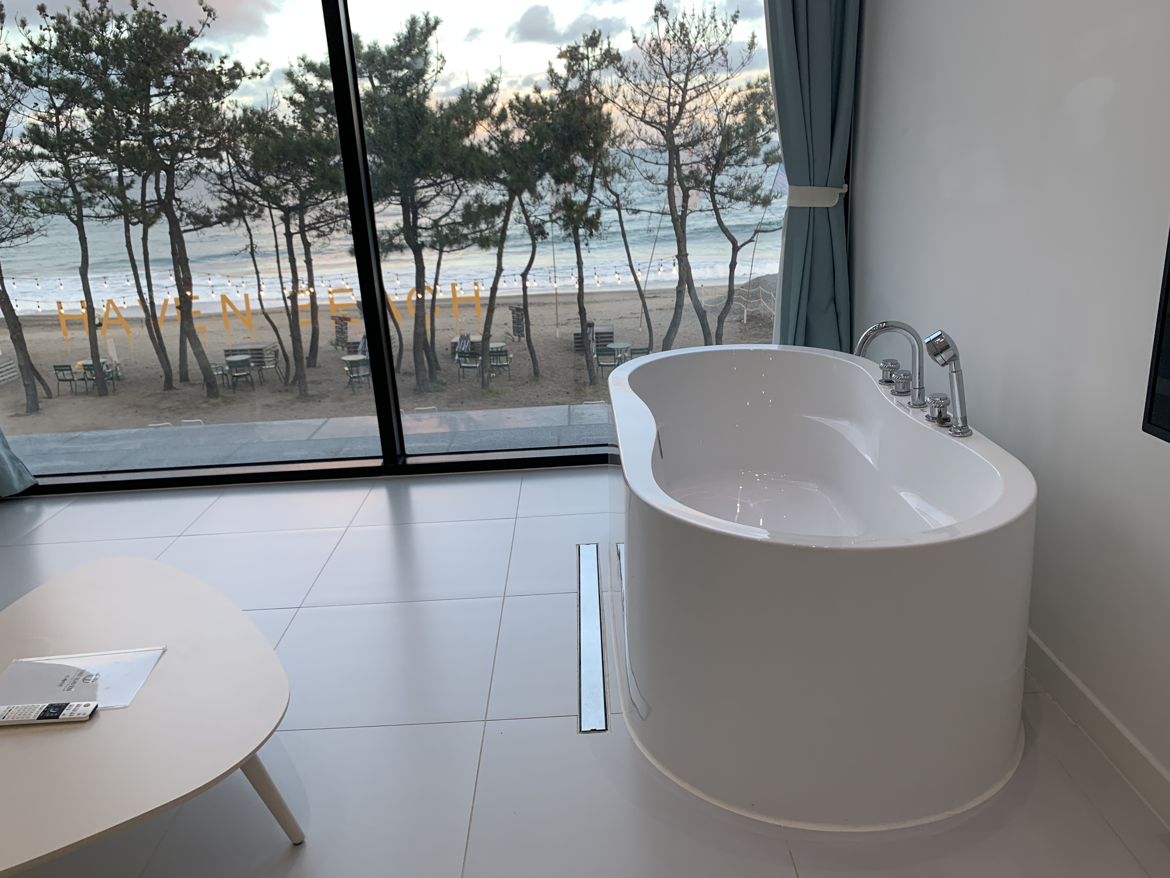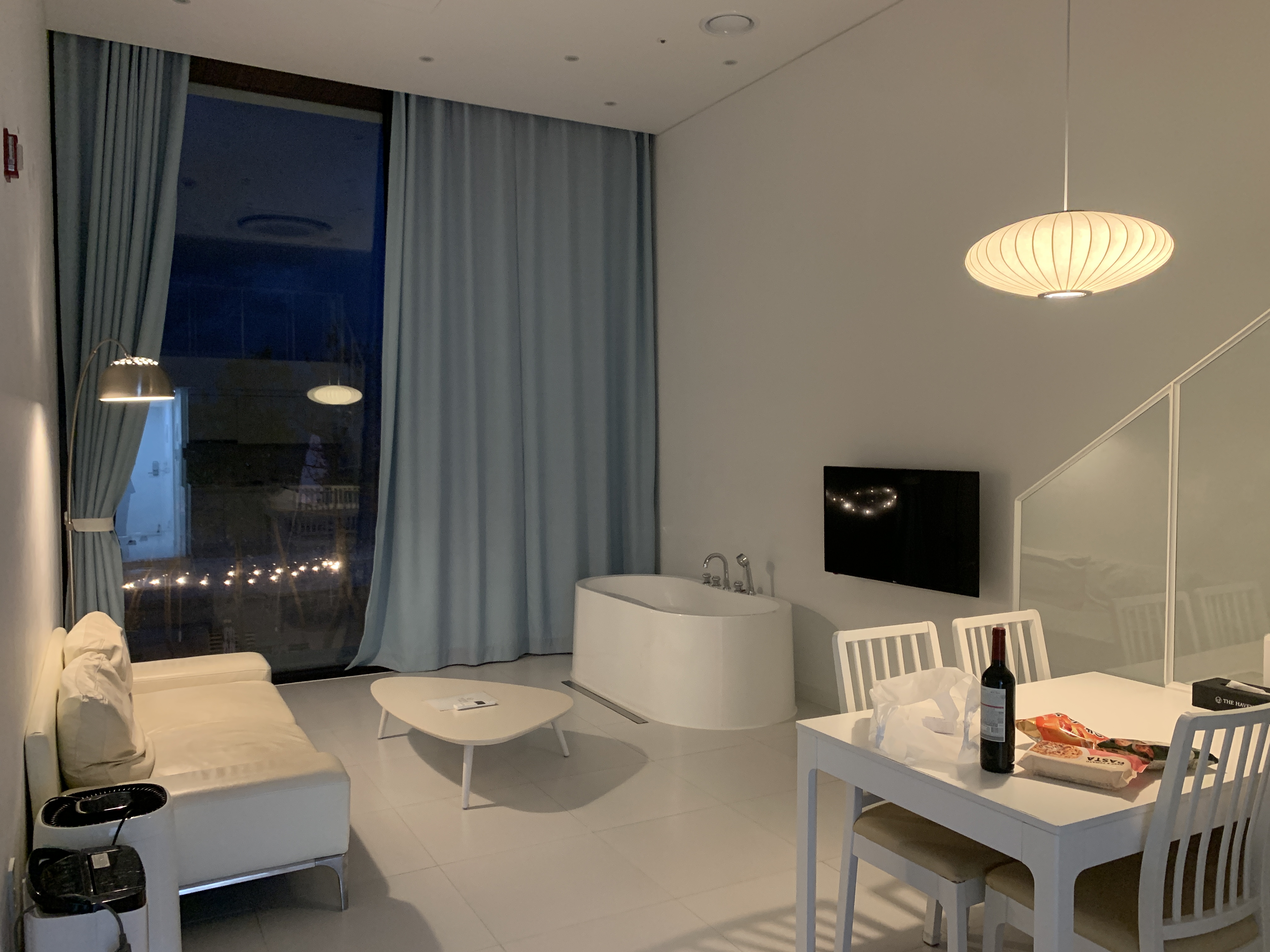 특히 이 복층룸에는 저렇게 창문 바로 옆에 욕조가 있는데, 바다를 바라보면서 목욜을 즐길 수 있다. 물론 프라이버시 문제도 있고 해서 아마도 커튼을 치고 목욜을 하게 되겠지만 ... 그래도 창가에 저렇게 욕조가 있다는 게 너무 좋다.