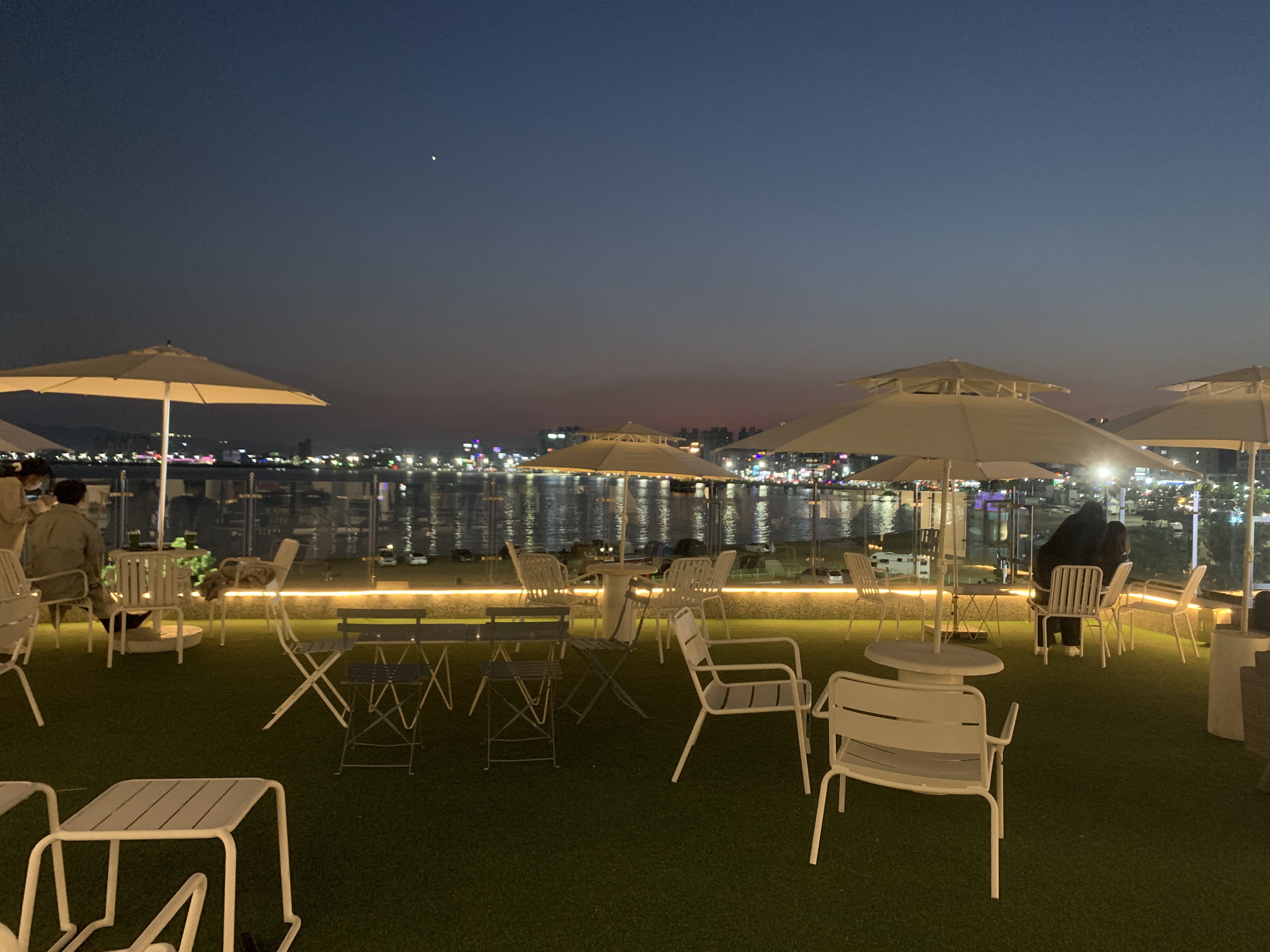 테라스가 그렇게 크지는 않다. 위에 한층 더 있었는데 거기는 운영을 하지 않는지 불이 꺼져 있었다.