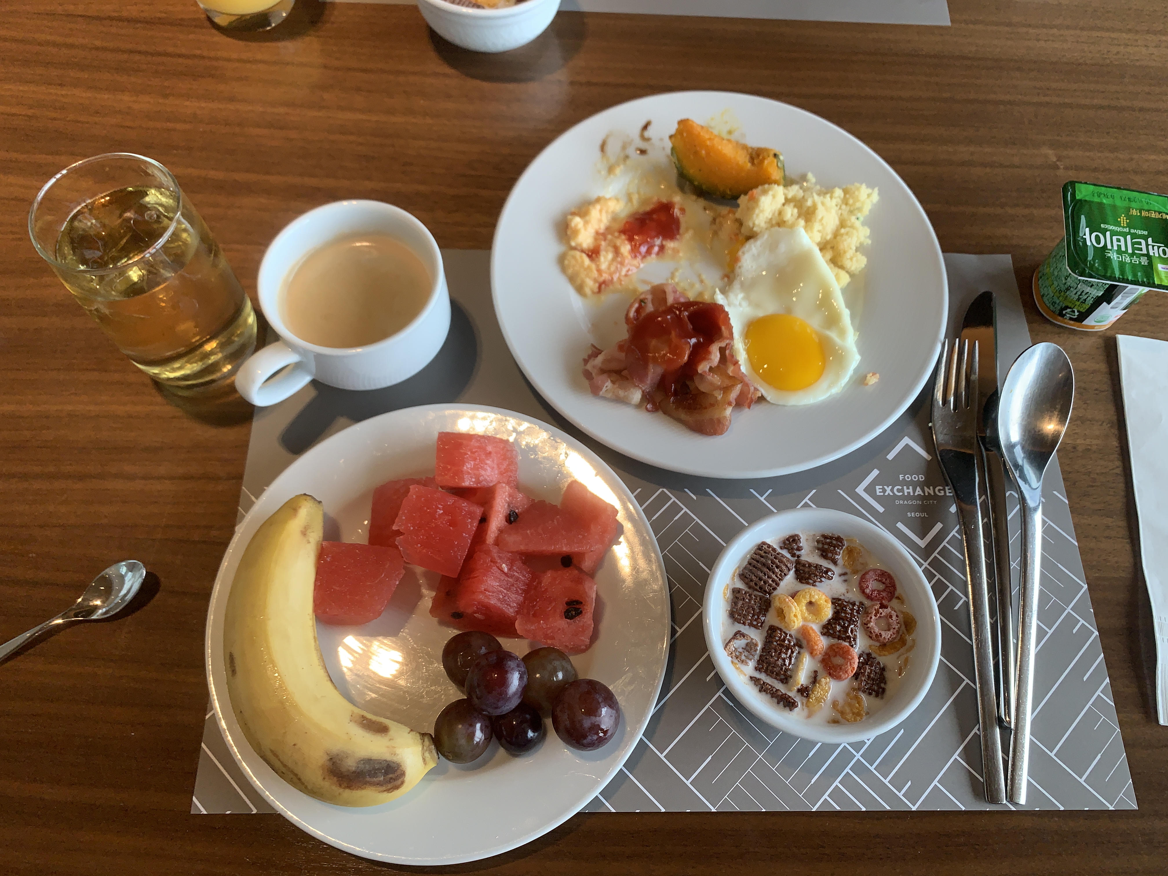 각종 시리얼과 요플레도 준비되어 있어서 기호대로 먹으면 된다.