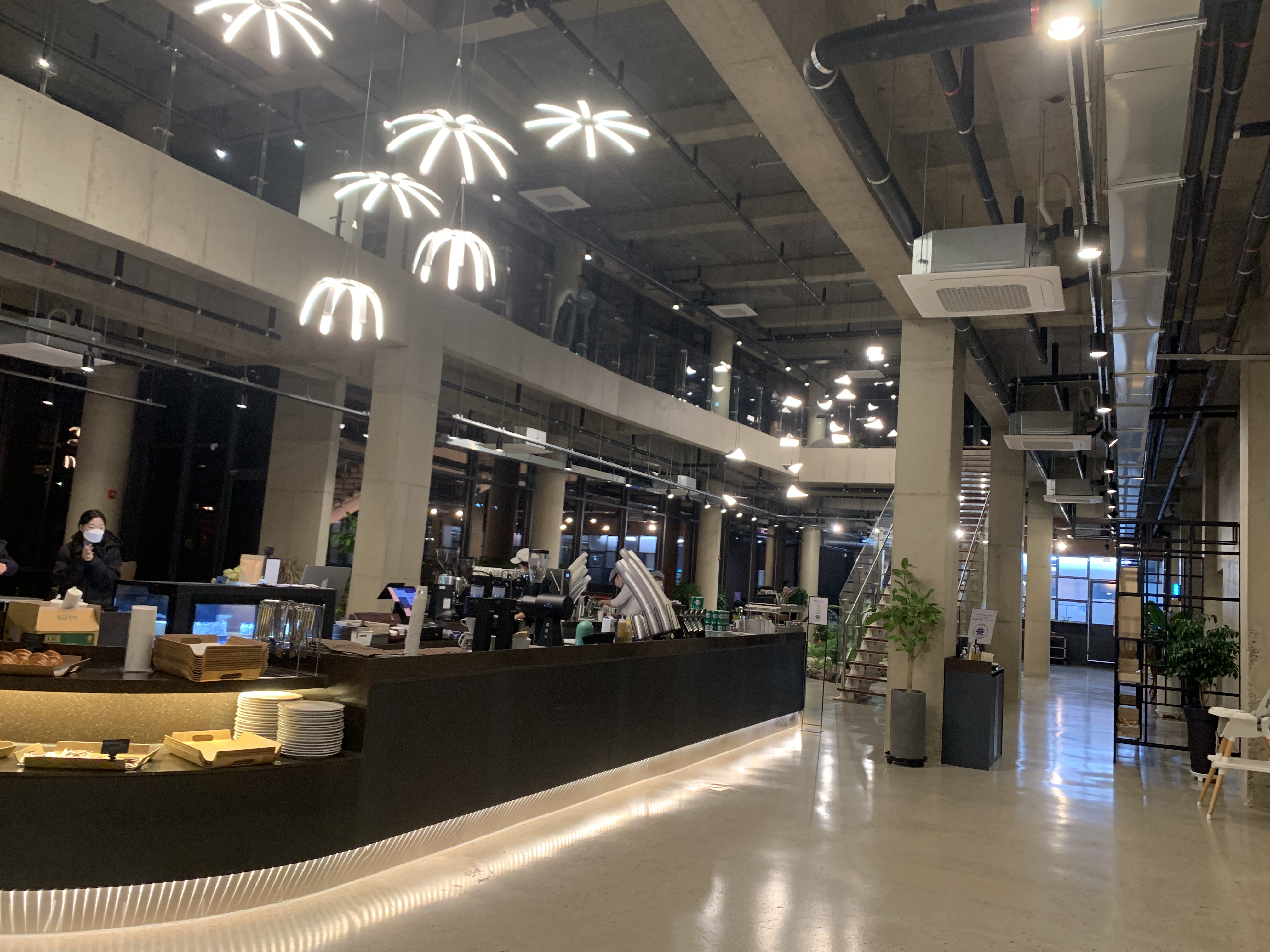 저린 식의 구조가 공간 활용에는 그리 좋지 않겠지만, 이런 대형카페는 역시 저렇게 공간낭비를 할 수 있는 여력이 있다.