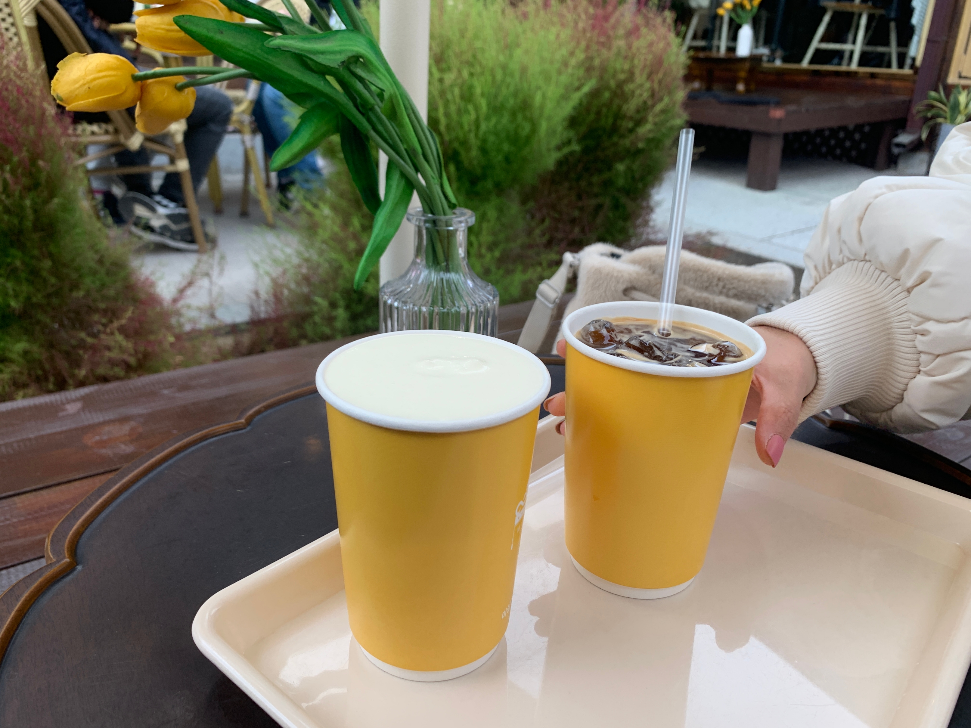 잔을 그냥 일회용 잔에 줘서 조금 아쉽기는 한데 ㅎㅎ ... 그래도 사진을 찍어본다.