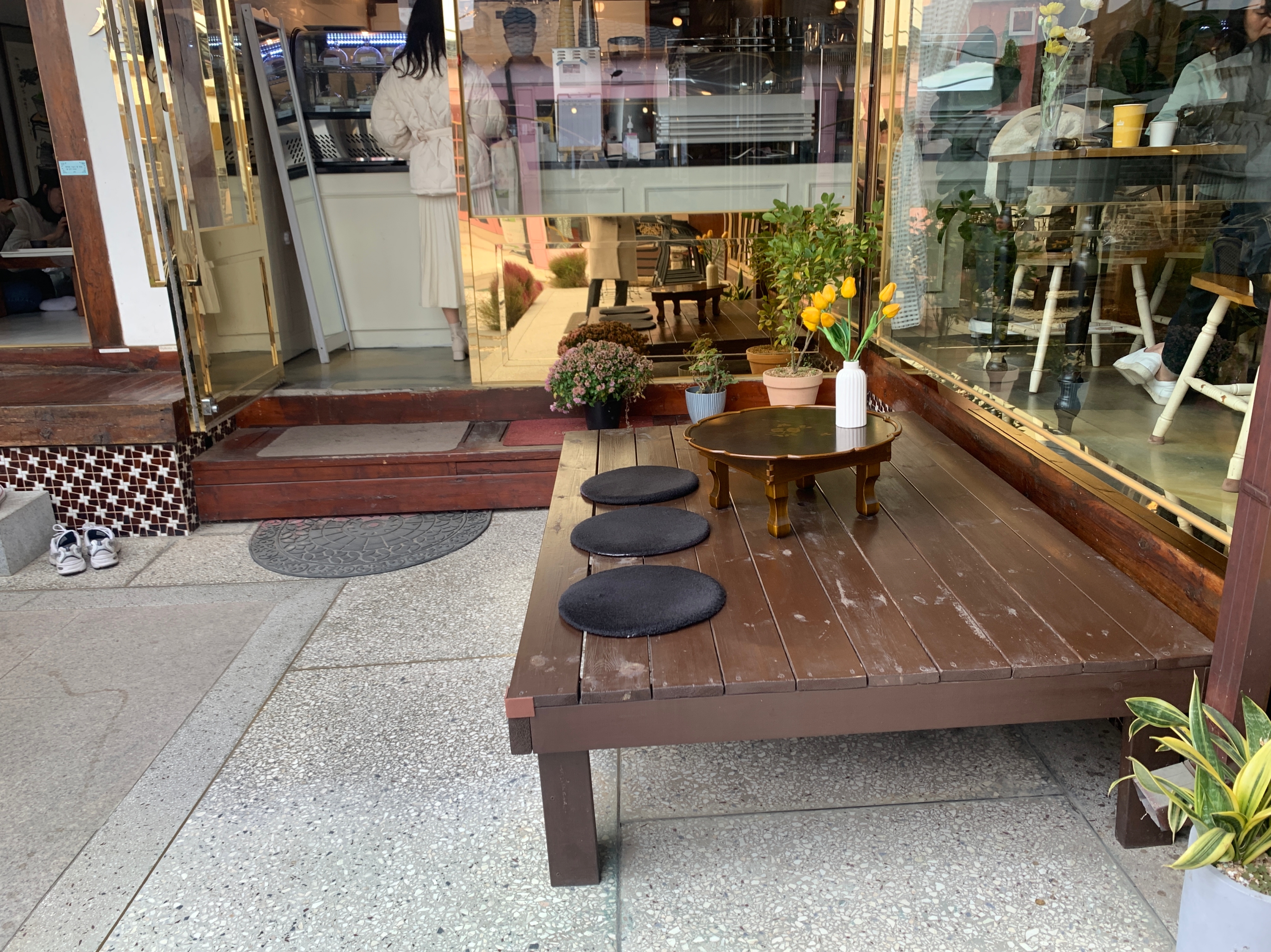 카페 안에 앉는 것보다 그냥 편하게 여기 평상에 앉는 게 훨씬 나은 듯!! 아 물론 날이 좋아야겠지만 ㅎㅎ 나는 가을쯤에 갔는데도 조금 추워서 힘들기는 했다.