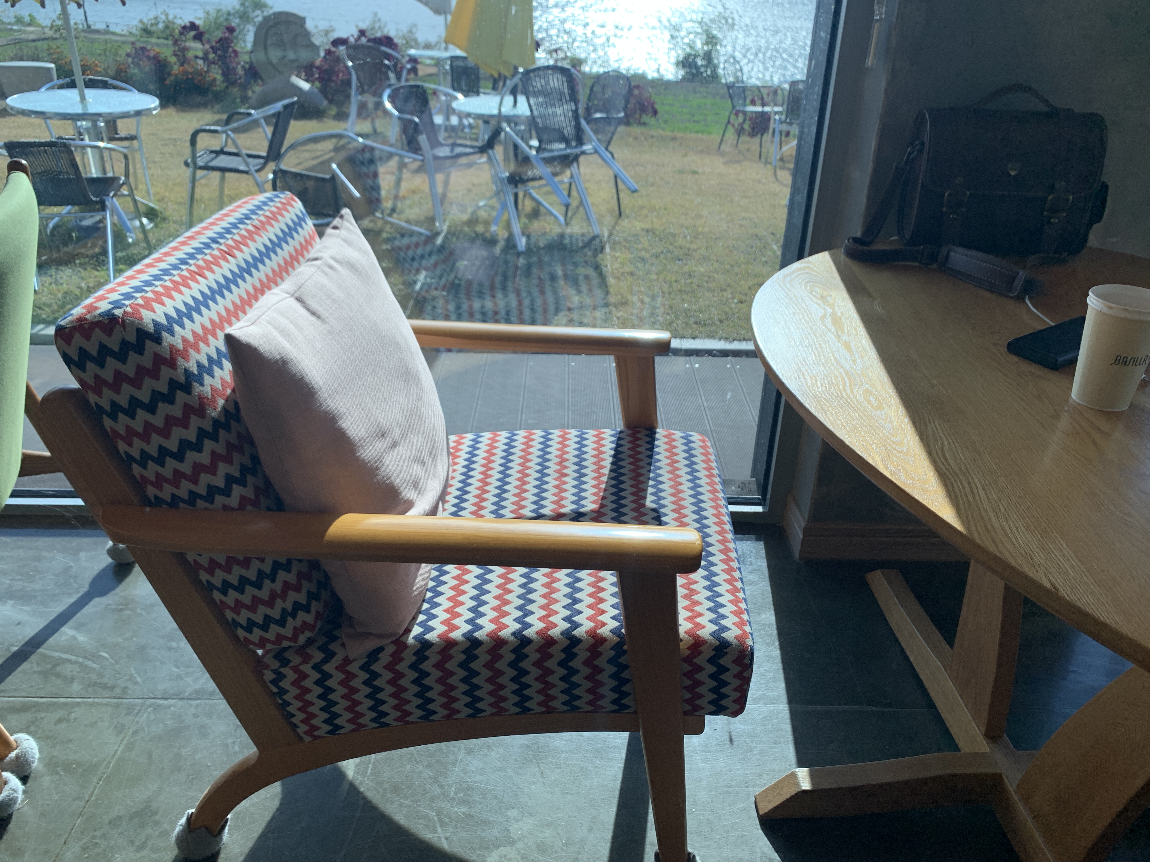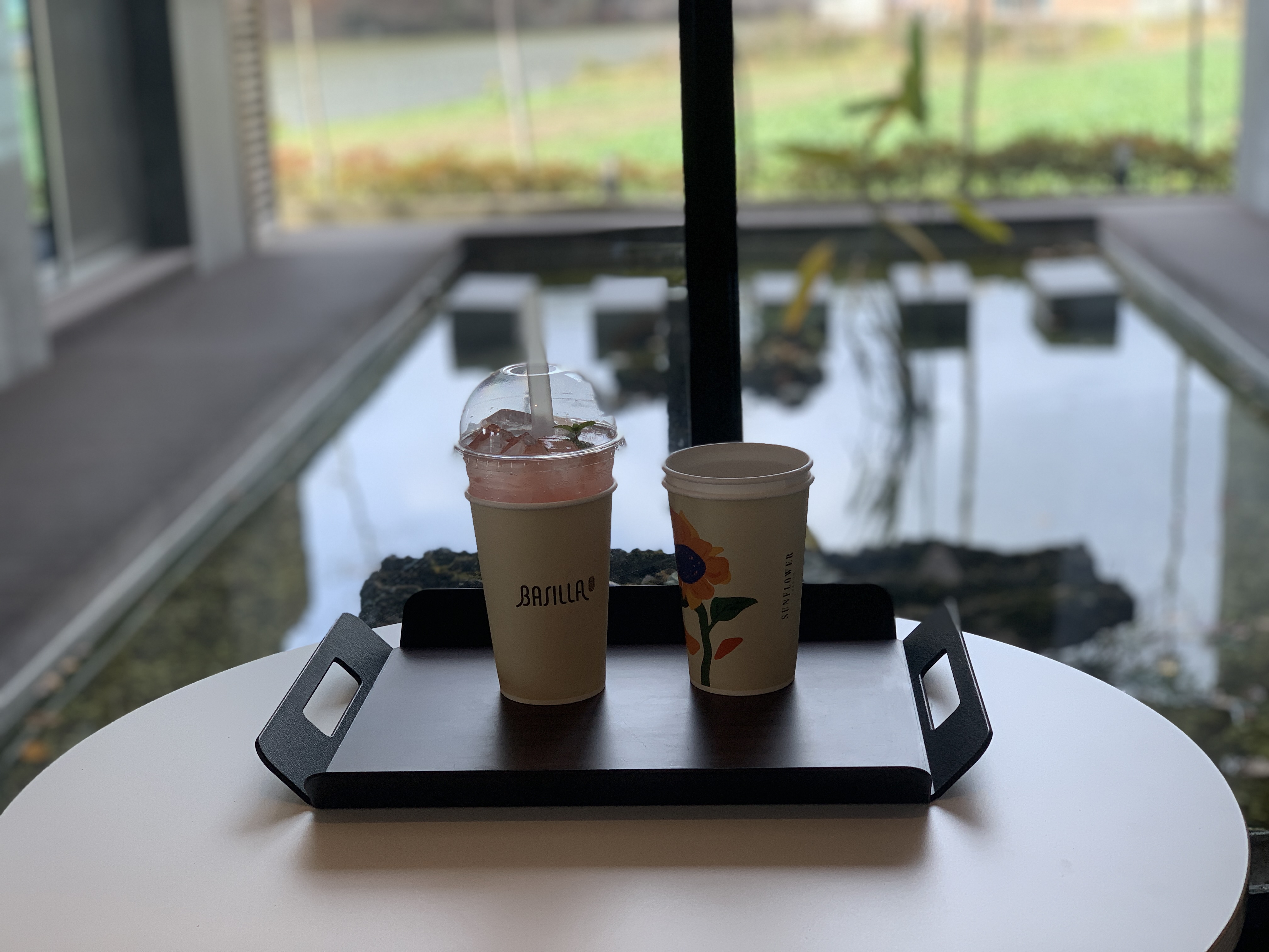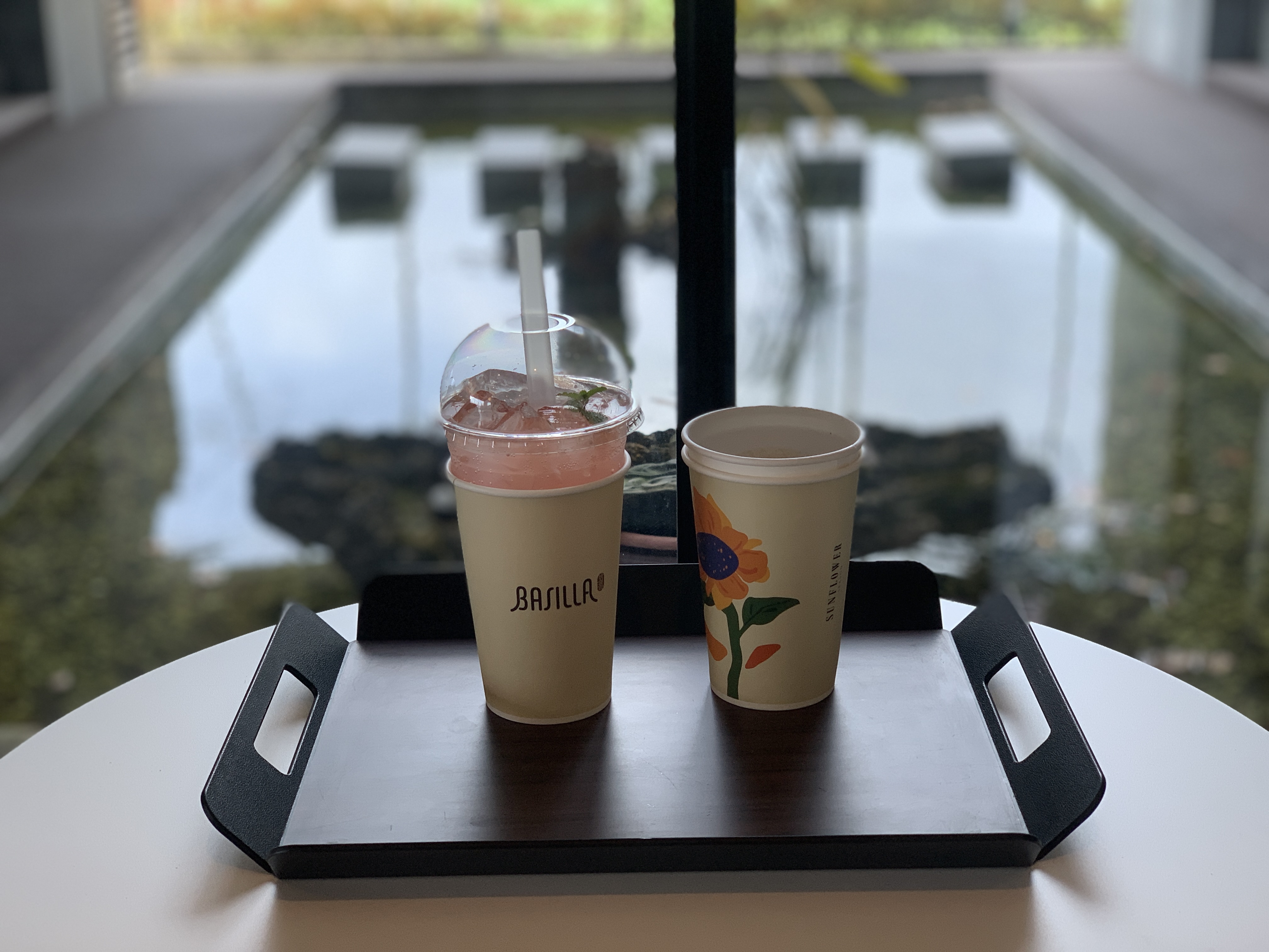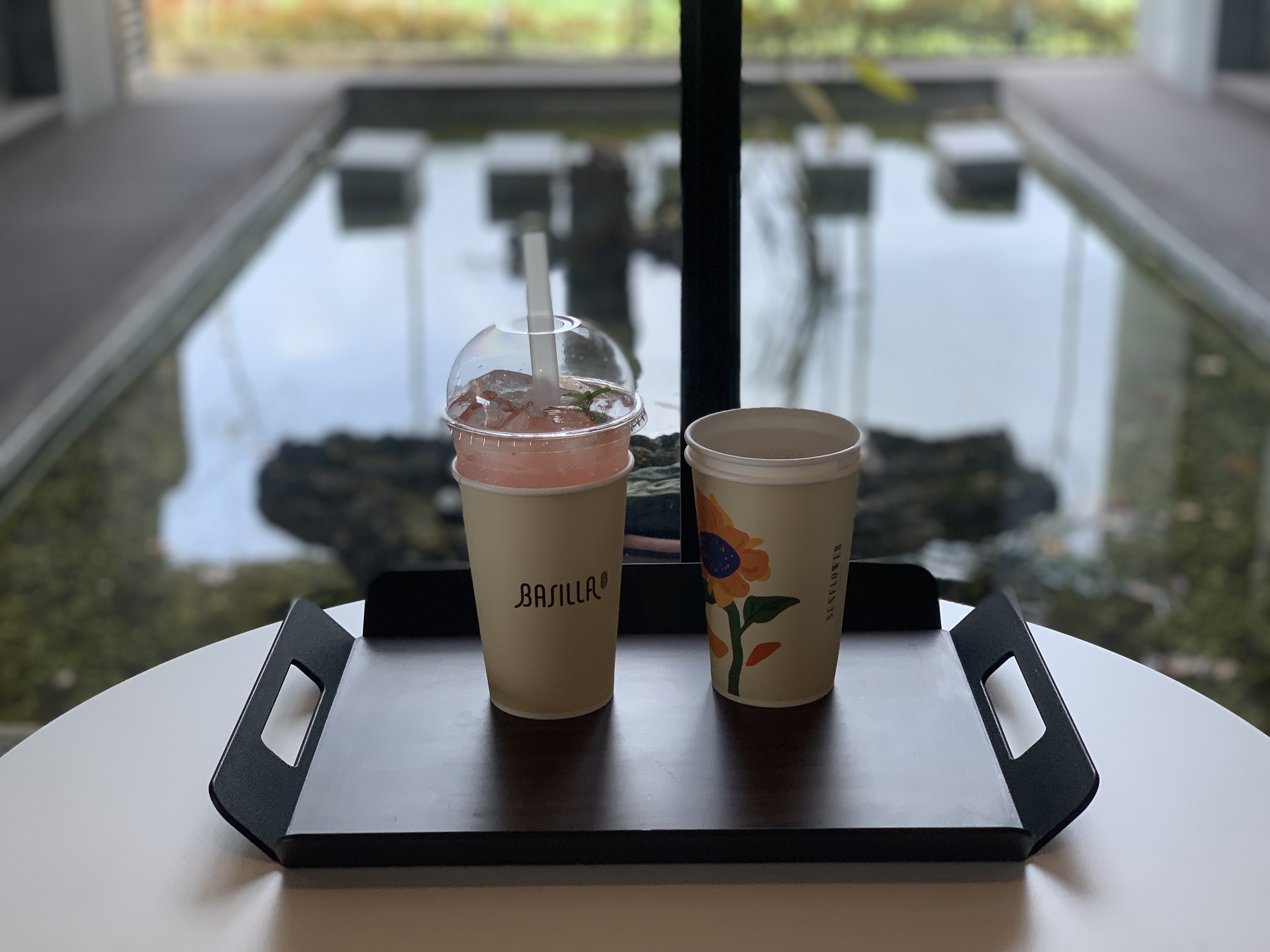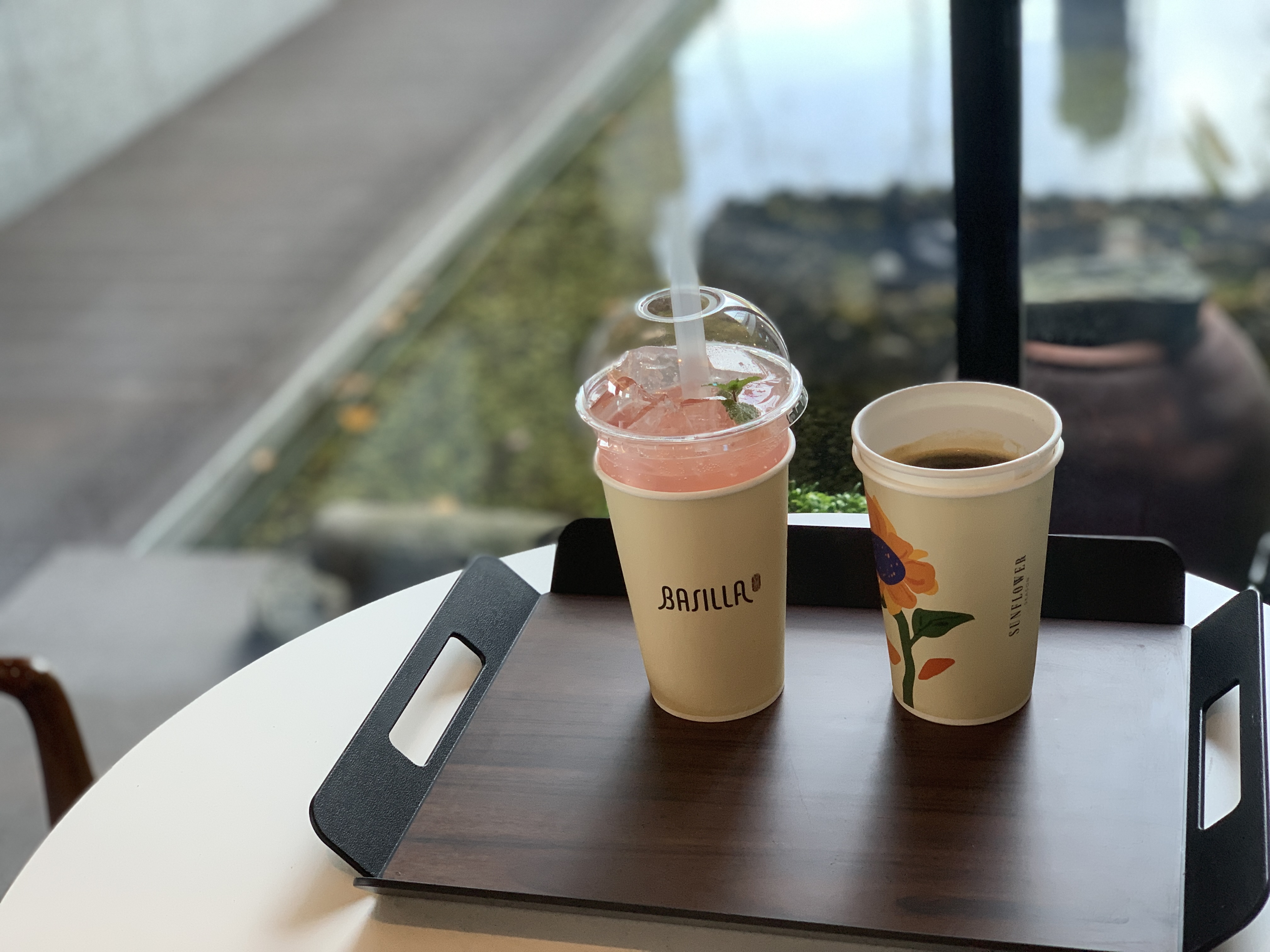 다른 자리에 앉아 있다가 창가 자리가 나서 후다닥 자리를 옮겼다.